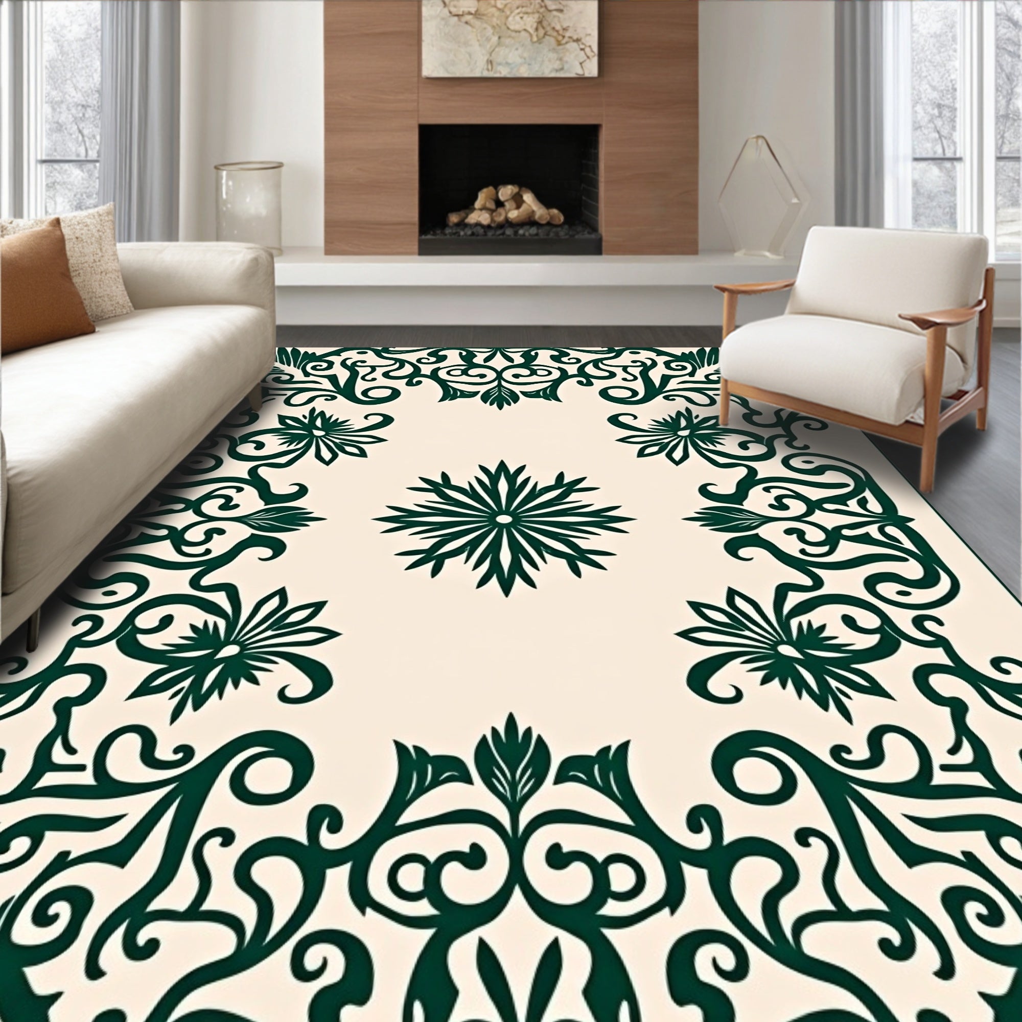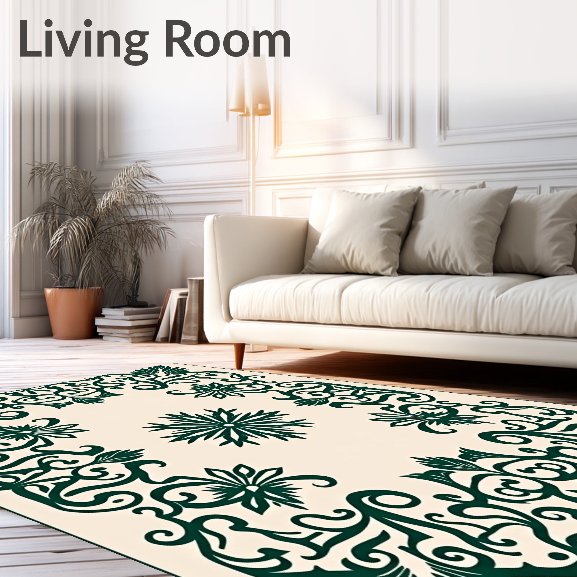 Flatwoven High Traffic Area Rug, Art Nouveau Scrollwork with Stylized Floral Symmetry, Non Slip, Stain Resistant, Washable Area Rugs for Living Room, Bedroom (Beige) Overview: