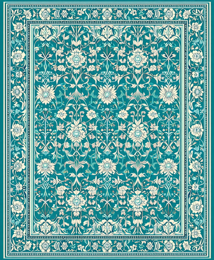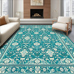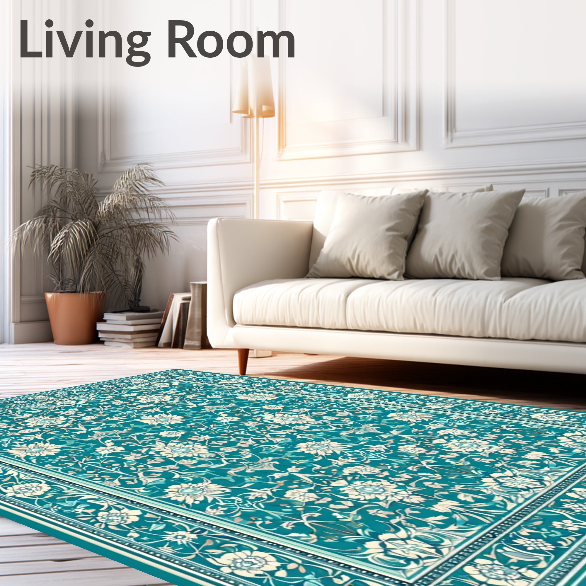 Flatwoven High Traffic Area Rug, Art Nouveau with Turquoise and Silver Highlights, Non Slip, Stain Resistant, Washable Area Rugs for Living Room, Bedroom (Blue) Overview:
