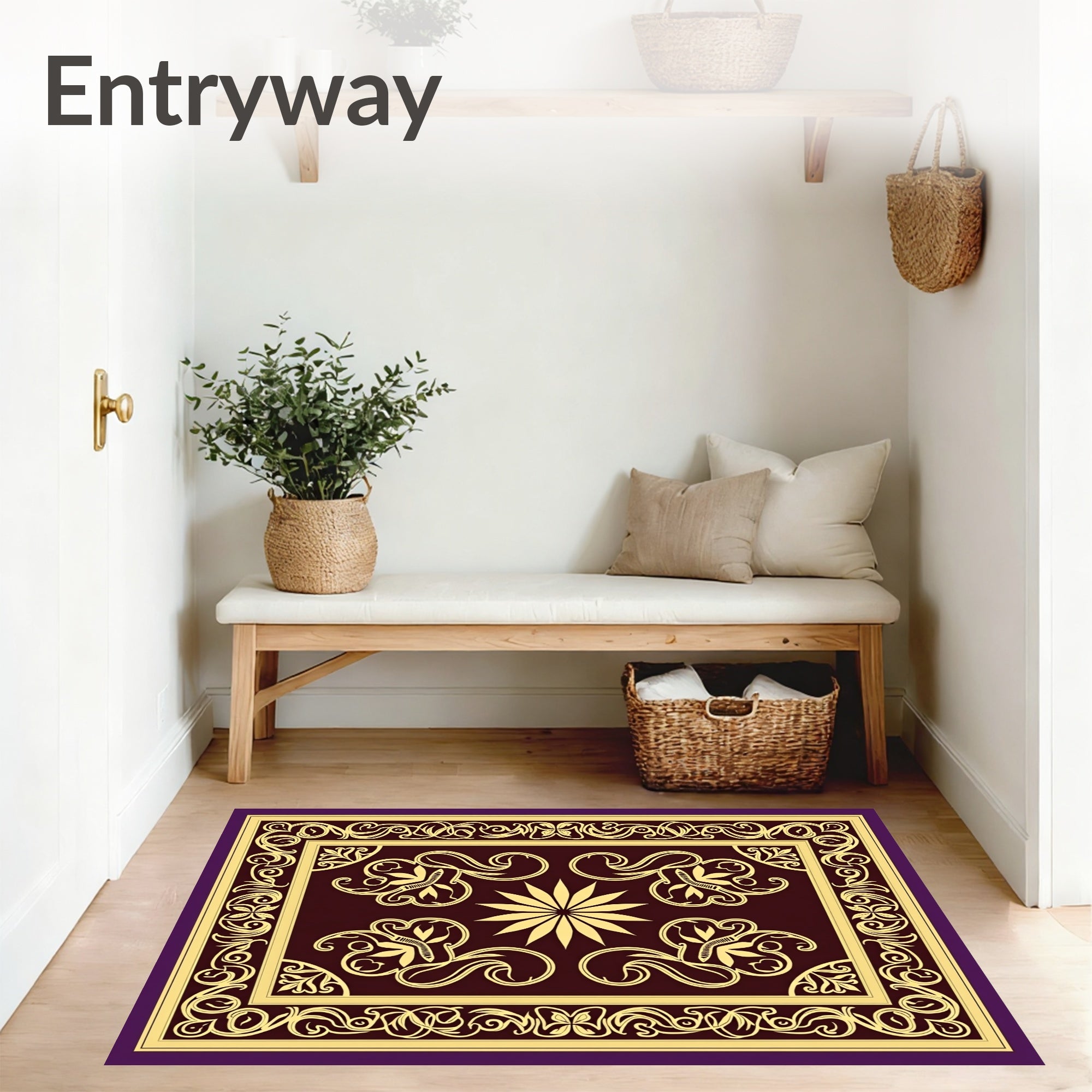 Flatwoven High Traffic Area Rug, Art Sunburst and Scrollwork Mosaic, Non Slip, Stain Resistant, Washable Area Rugs for Living Room, Bedroom (Brown) Overview: