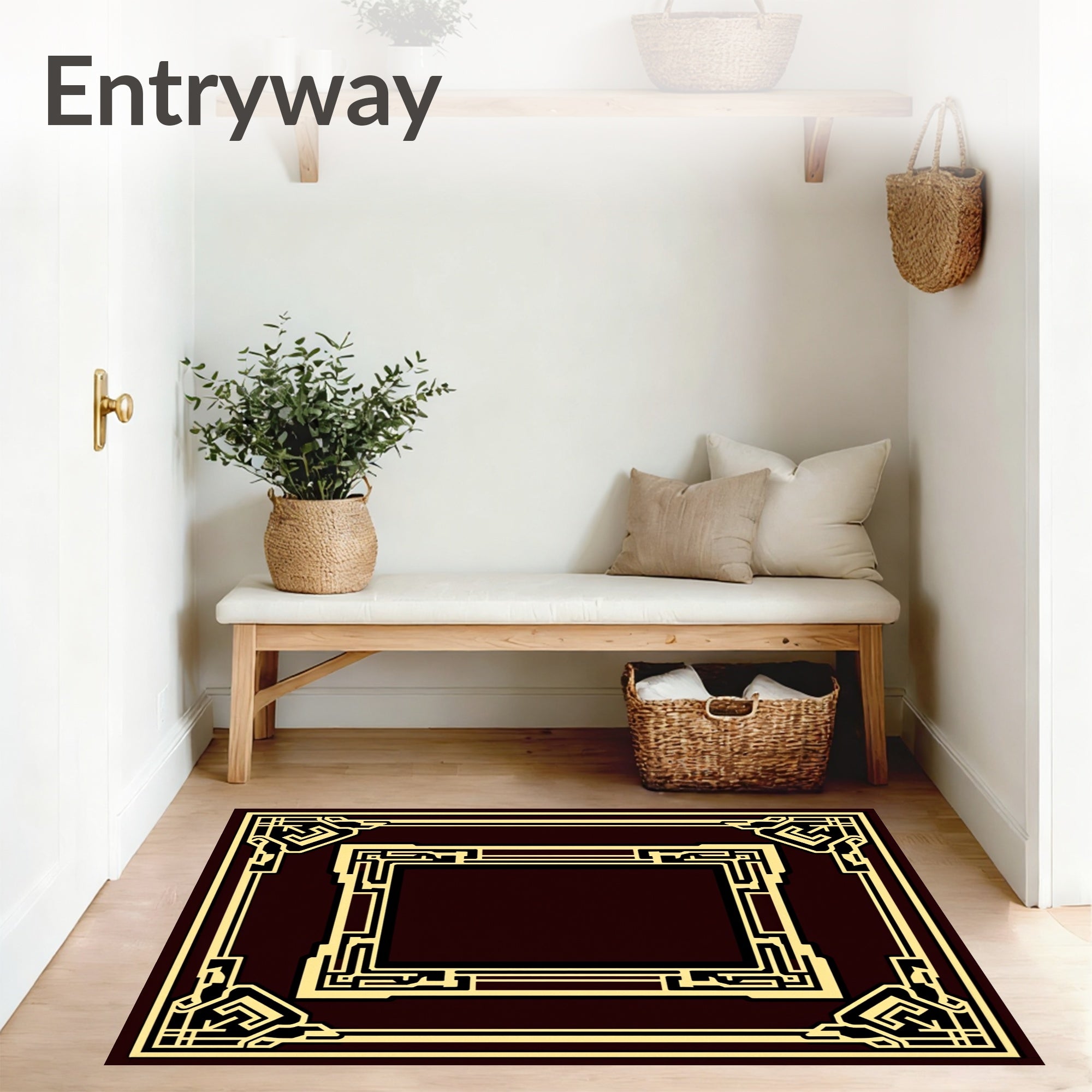 Flatwoven High Traffic Area Rug, Art with Metallic Highlights and Angular Symmetry, Non Slip, Stain Resistant, Washable Area Rugs for Living Room, Bedroom (Brown) Overview: