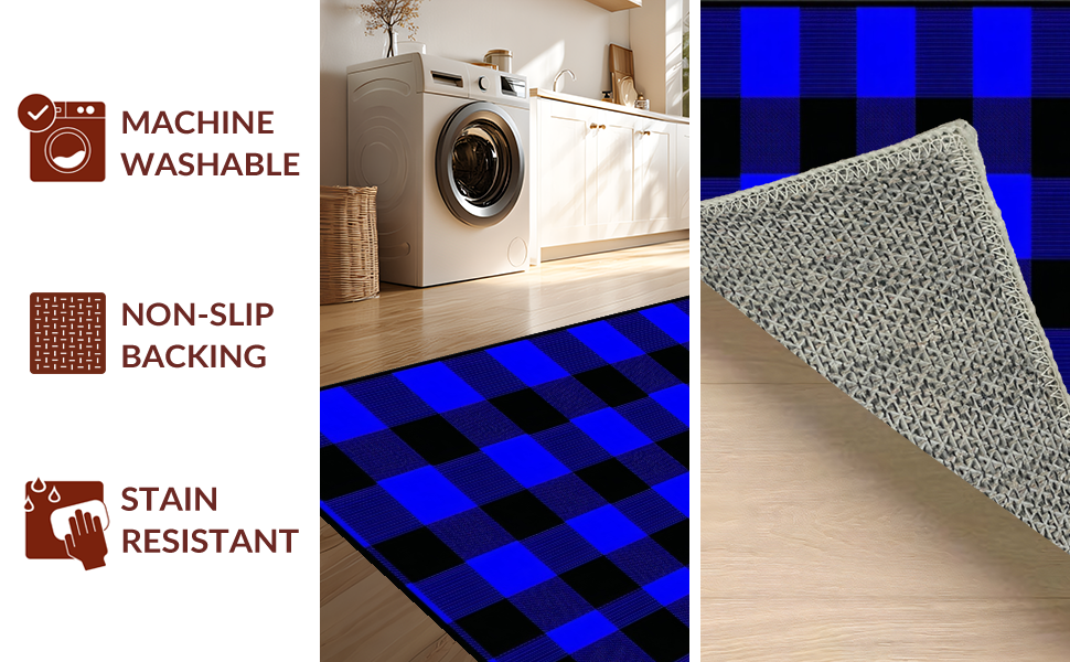 Ultra Soft Area Rug, Non Slip, Stain Resistant, Washable Area Rugs for Living Room, Bedroom, Artful Abstract Blue Tartan Style(Blue) Overview: