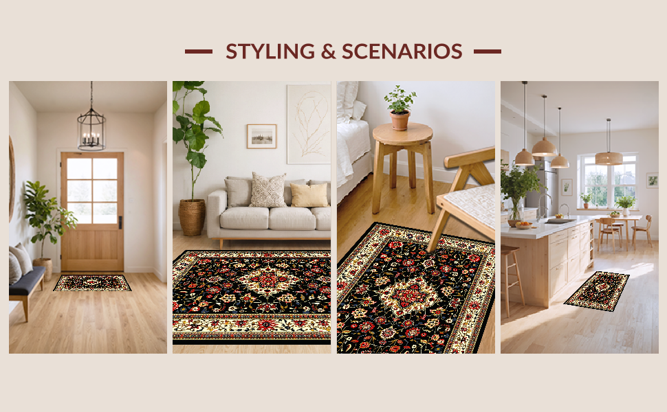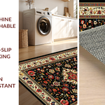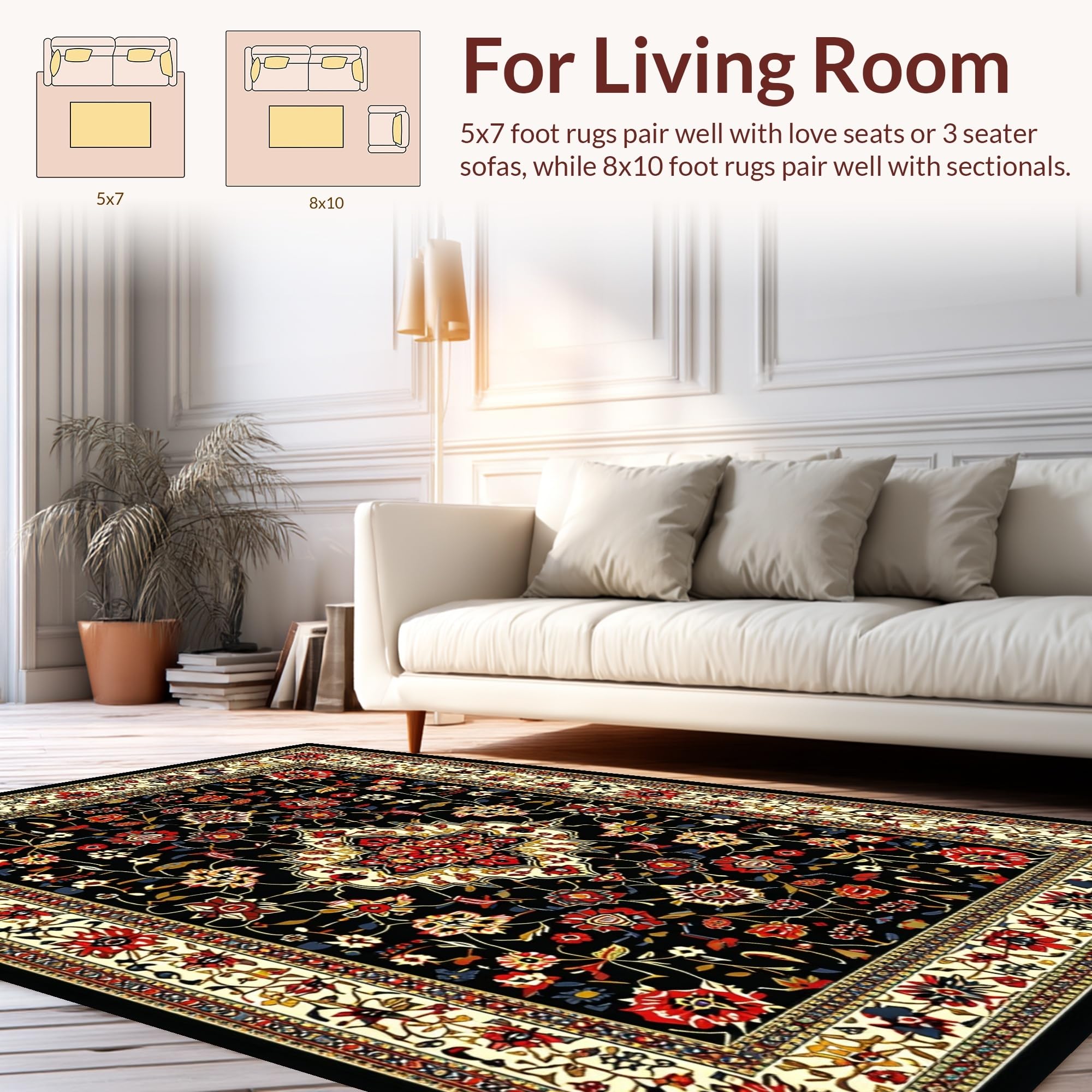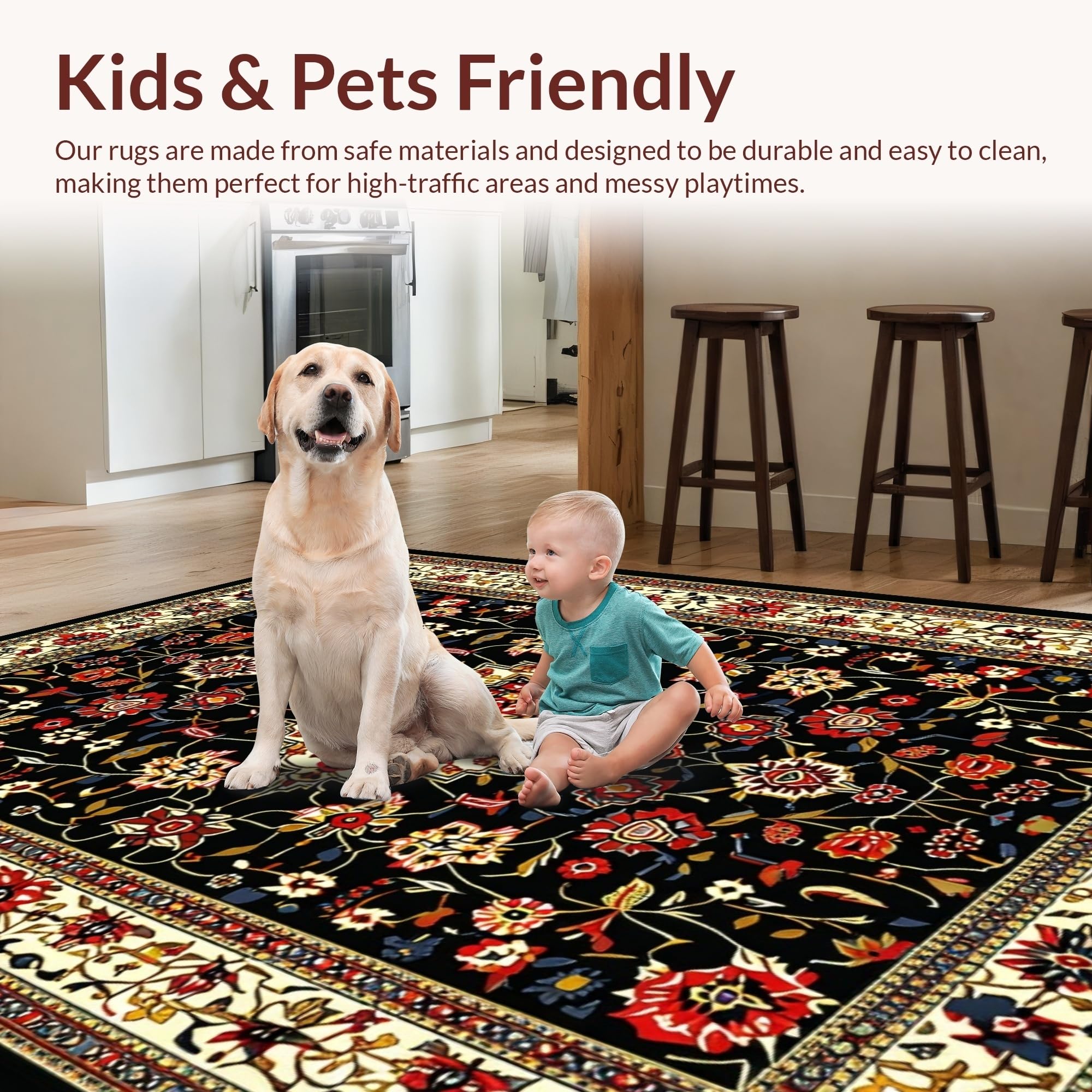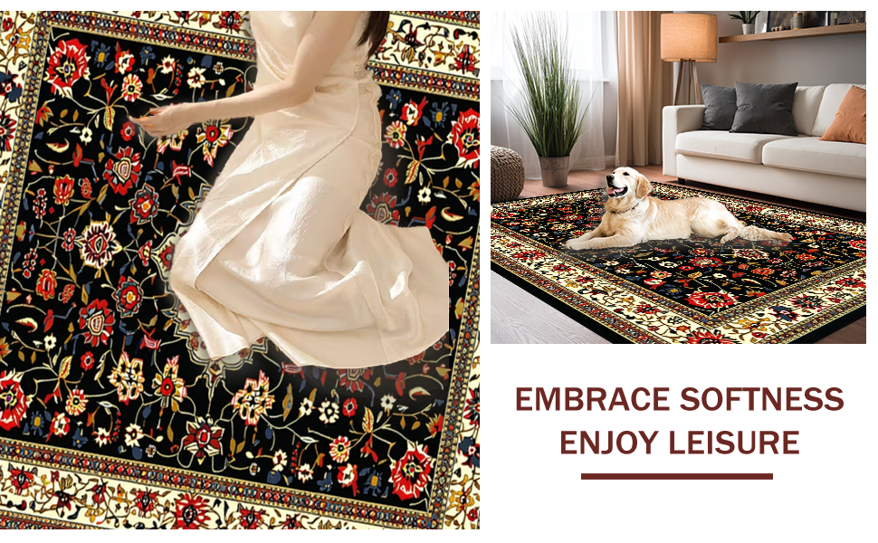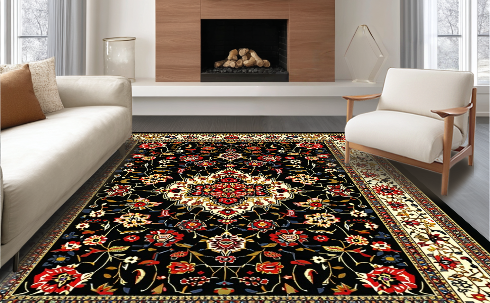 Ultra Soft Area Rug, Non Slip, Stain Resistant, Washable Area Rugs for Living Room, Bedroom, Artful Abstract Floral Composition(Black) Overview: