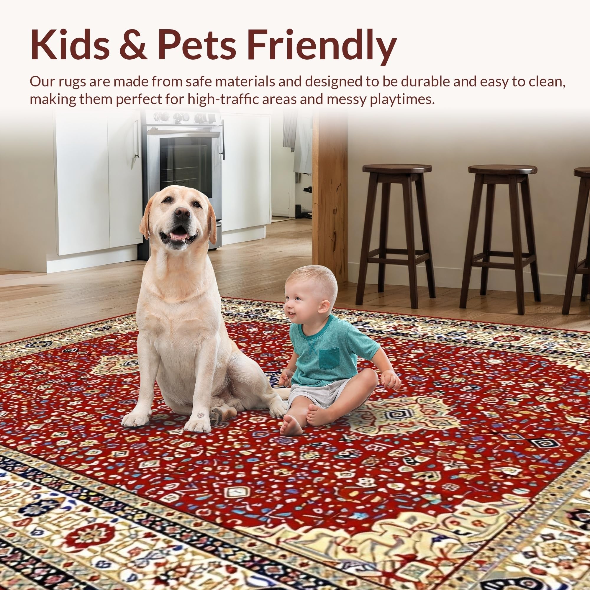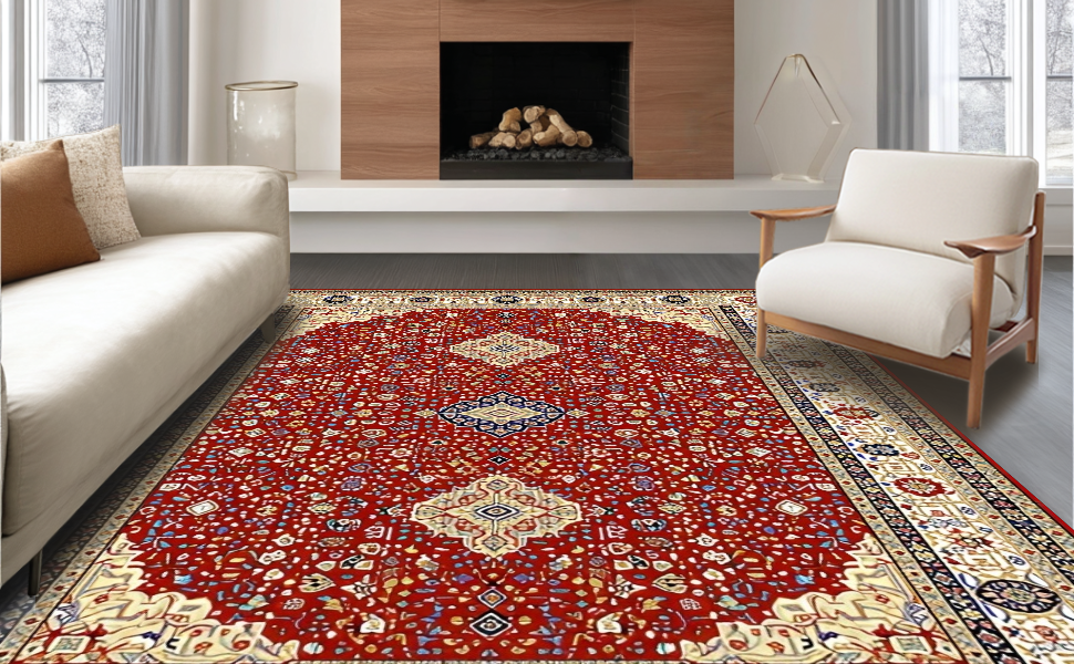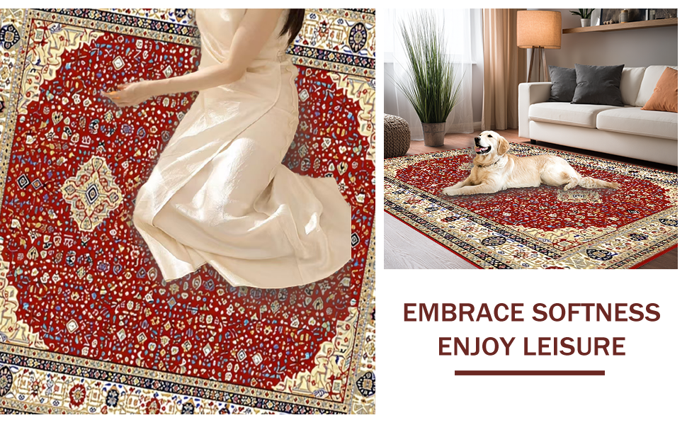 Ultra Soft Area Rug, Non Slip, Stain Resistant, Washable Area Rugs for Living Room, Bedroom, Artful Abstract Neutral Palette(Red) Overview: