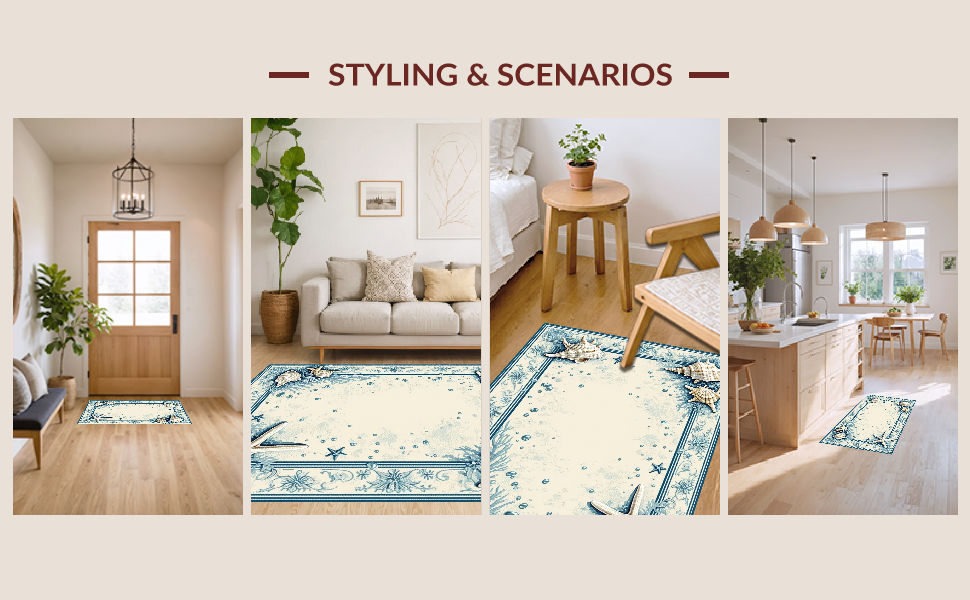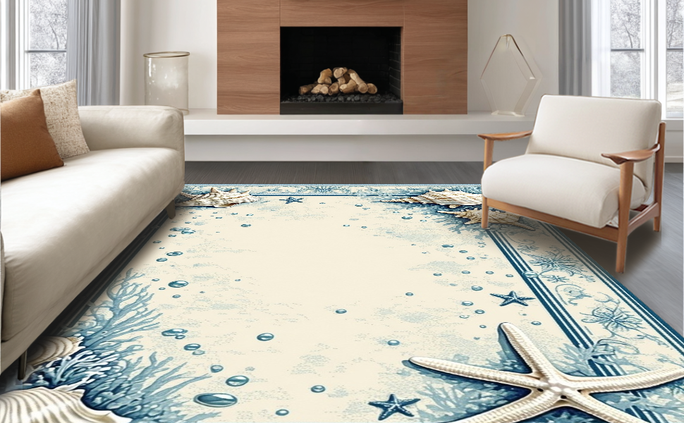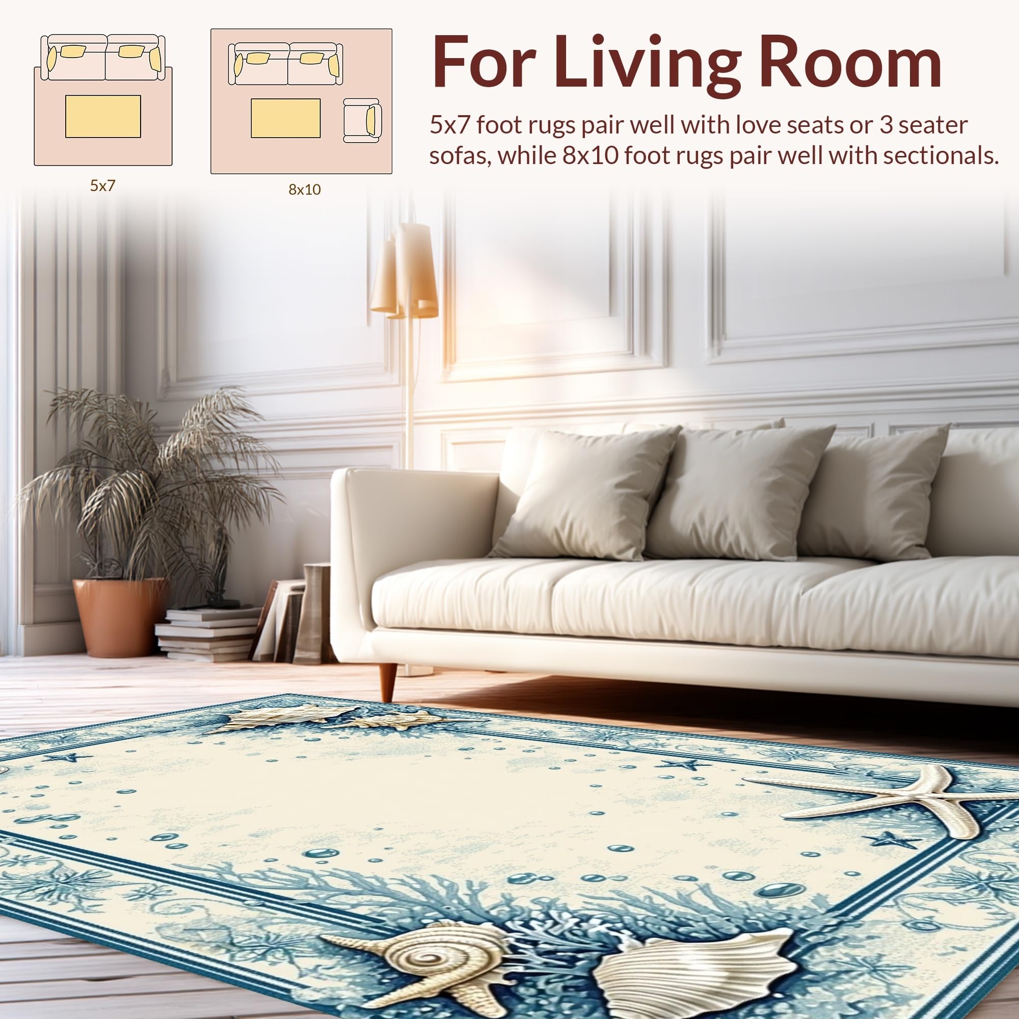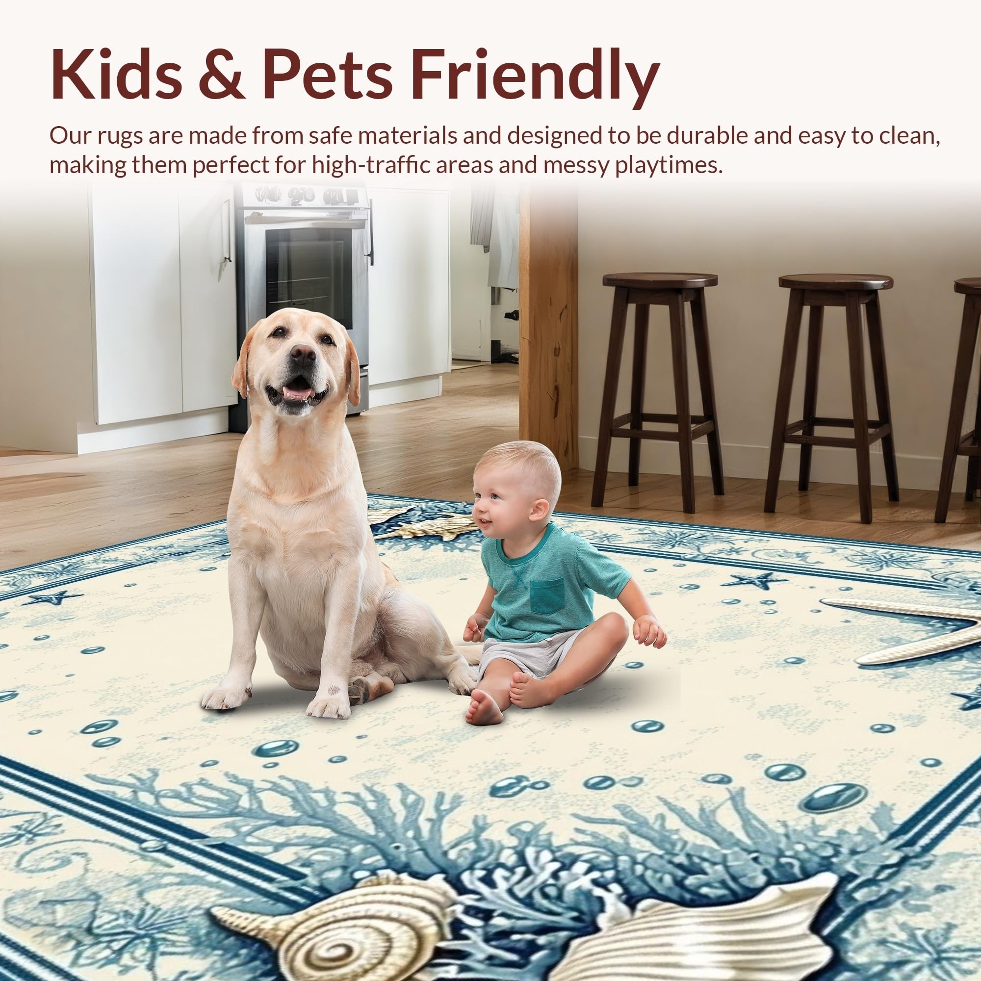 Ultra Soft Area Rug, Non Slip, Stain Resistant, Washable Area Rugs for Living Room, Bedroom, Artful Abstract Seaglass Patterns(Beige) Overview: