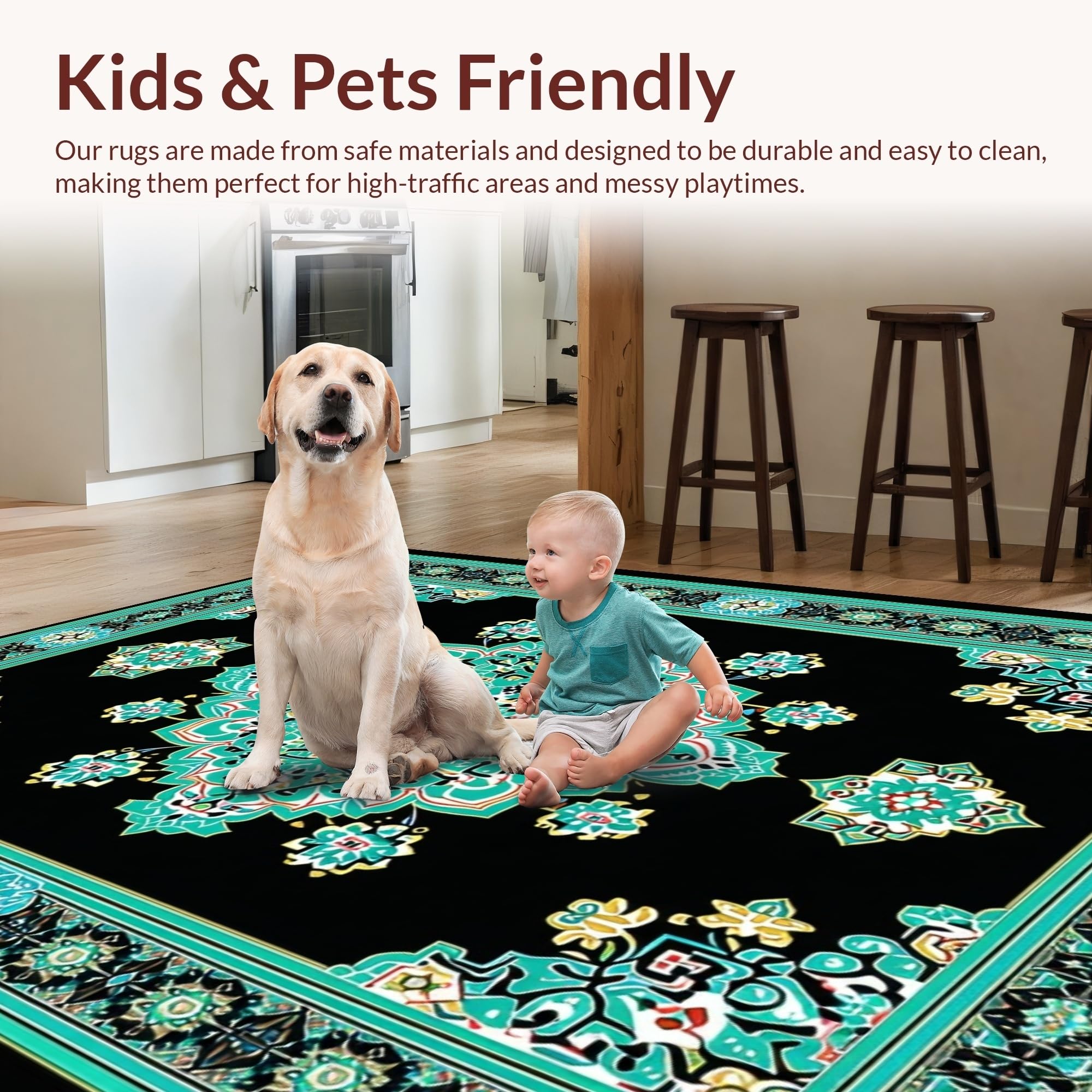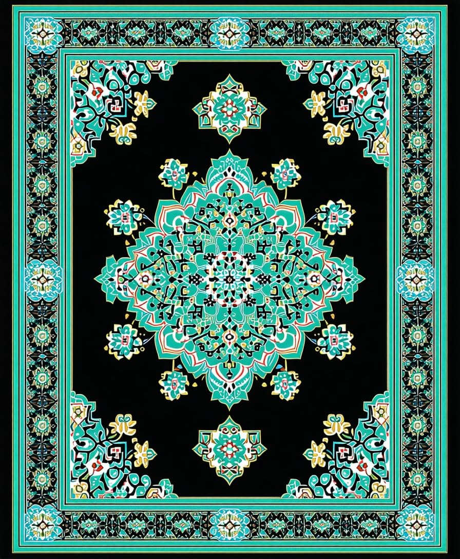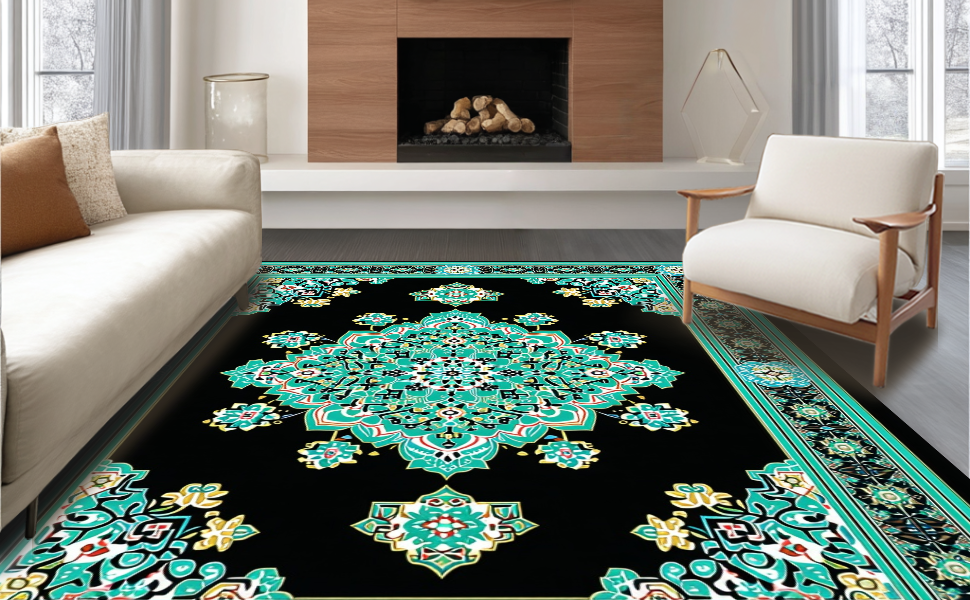 Ultra Soft Area Rug, Non Slip, Stain Resistant, Washable Area Rugs for Living Room, Bedroom, Artful Black and Teal Design Fusion(Black) Overview: