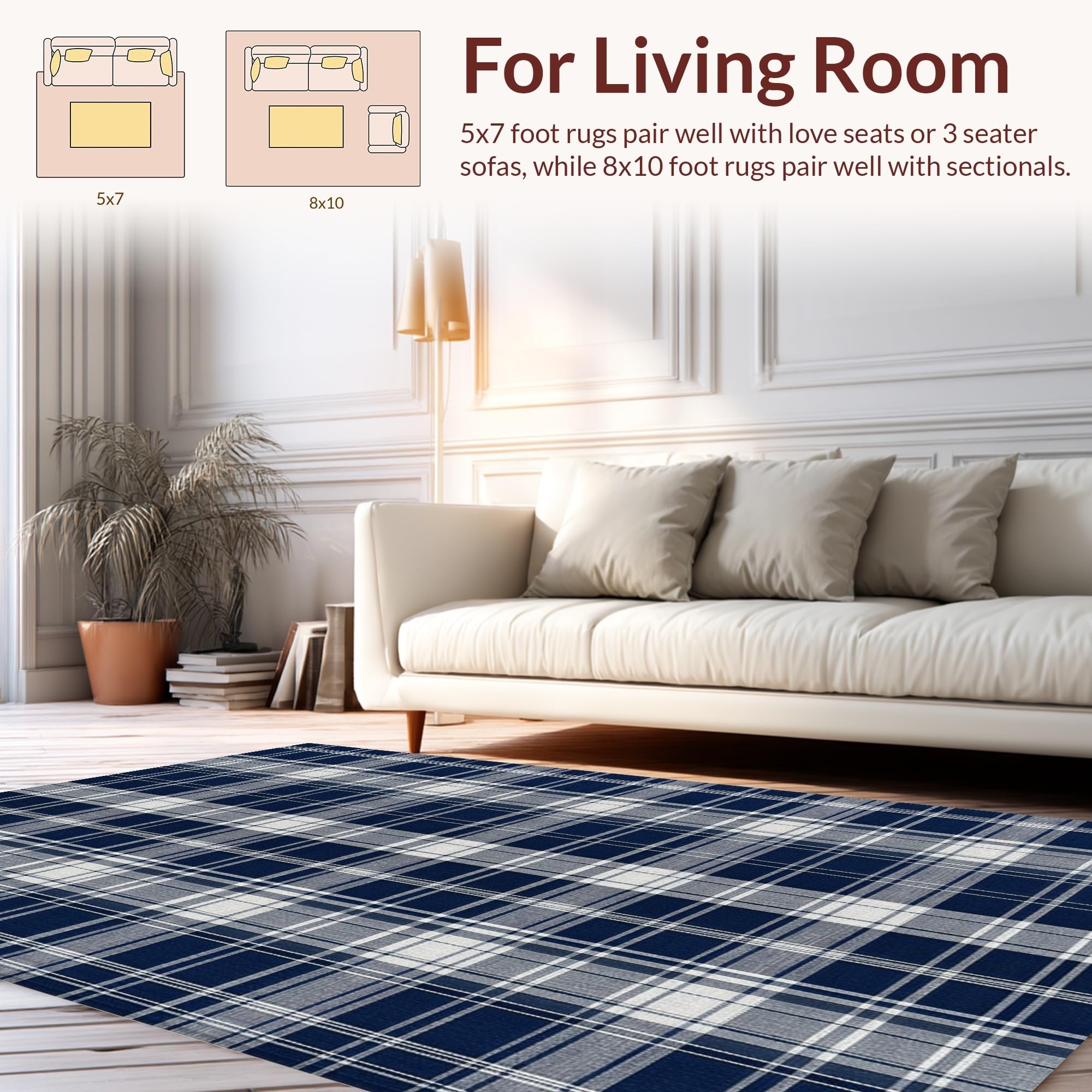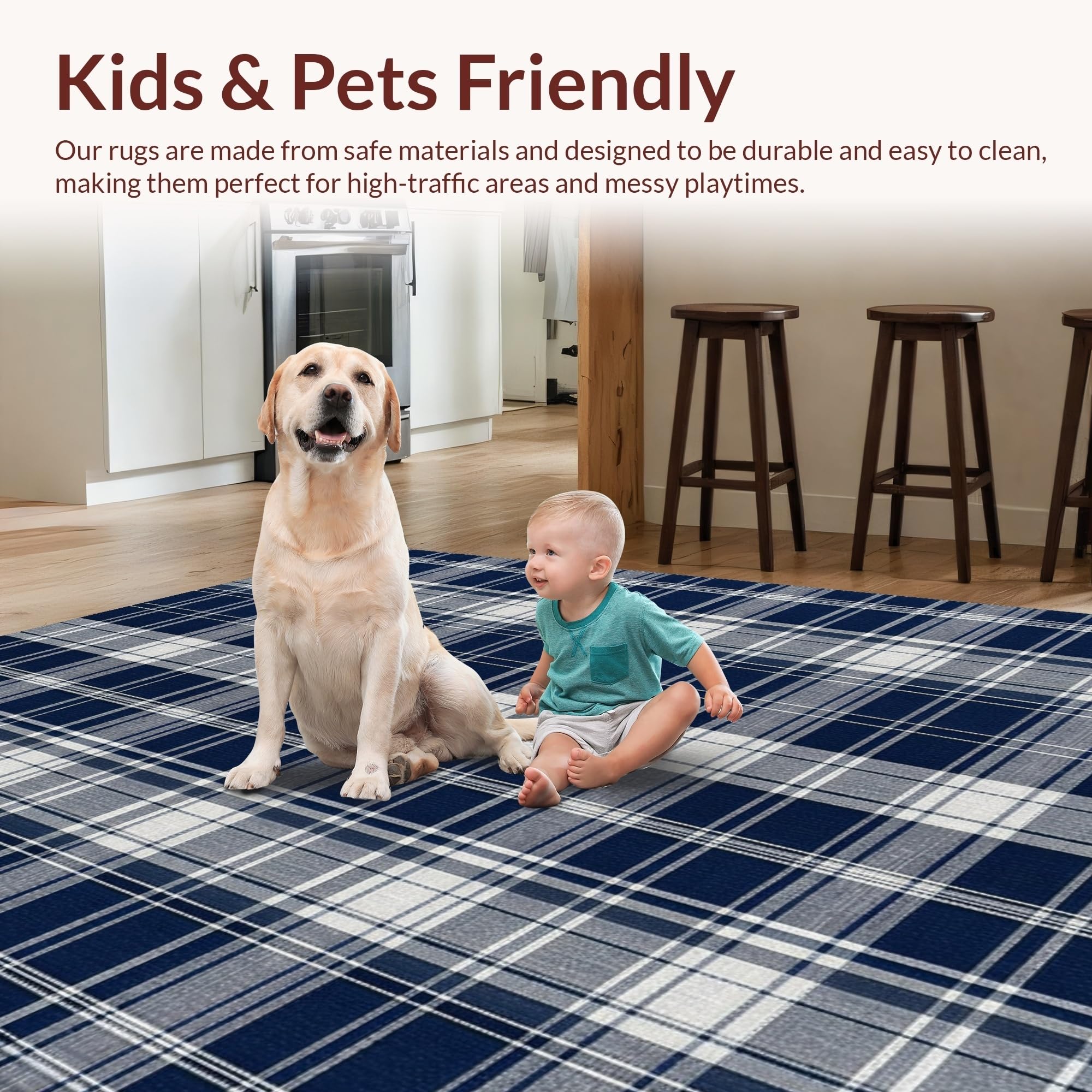 Ultra Soft Area Rug, Non Slip, Stain Resistant, Washable Area Rugs for Living Room, Bedroom, Artful Blue and Beige Fusion(Blue) Overview:
