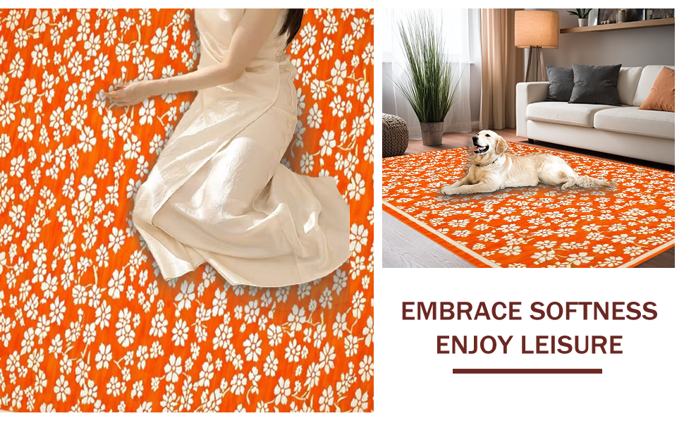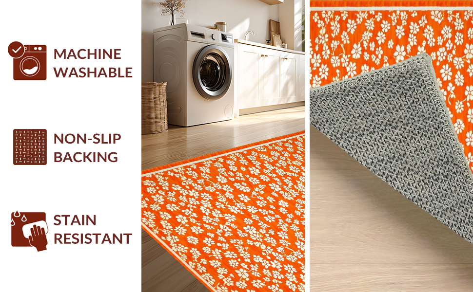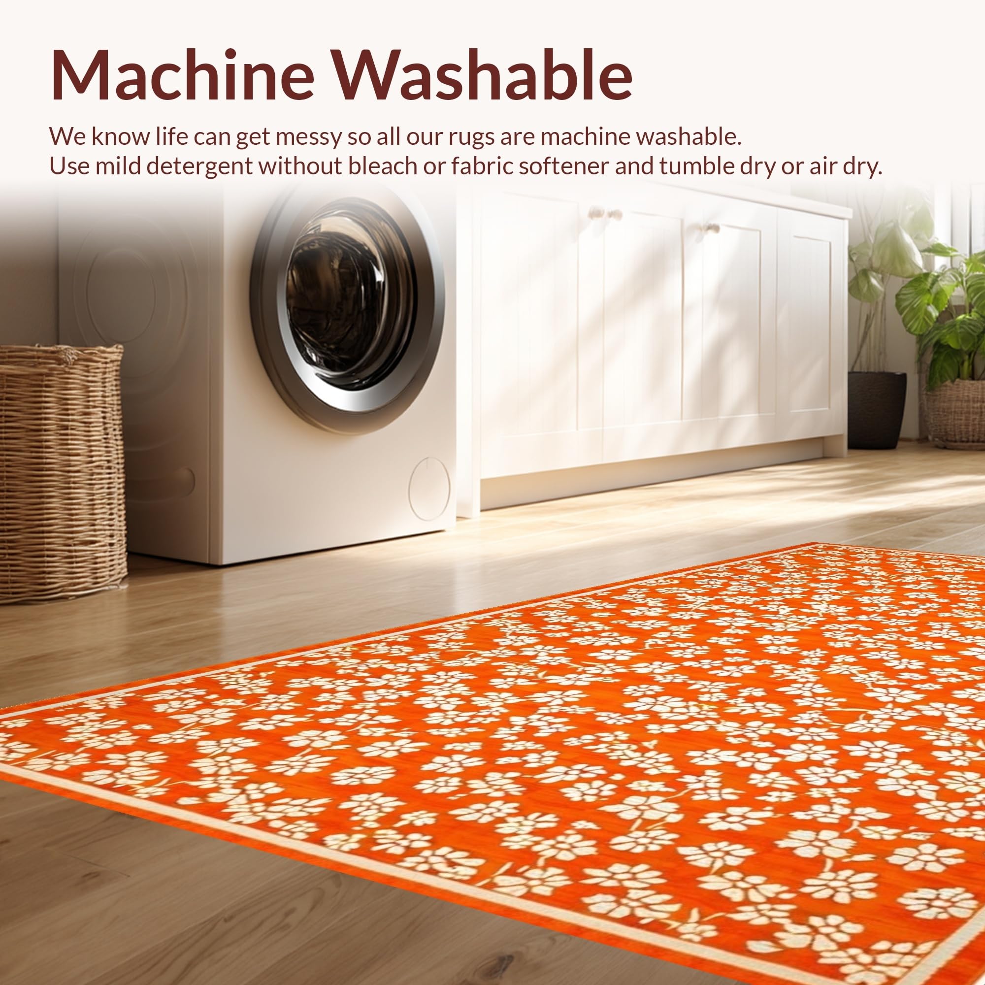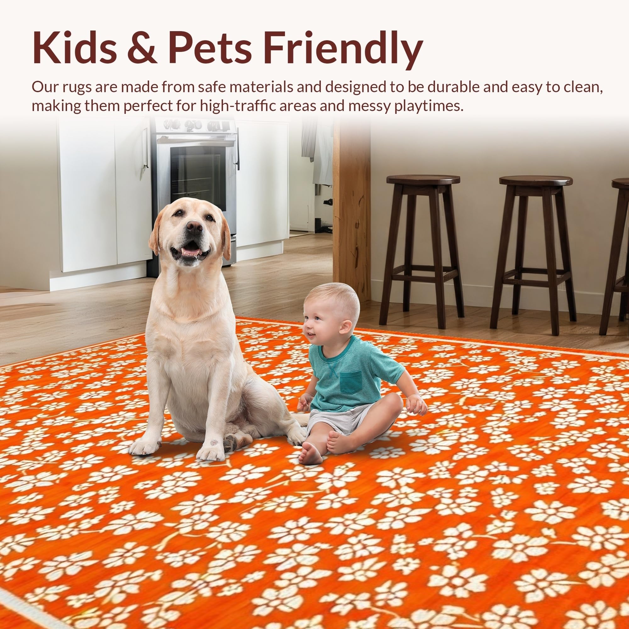 Ultra Soft Area Rug, Non Slip, Stain Resistant, Washable Area Rugs for Living Room, Bedroom, Artful Cheerful Botanical Print(Orange) Overview: