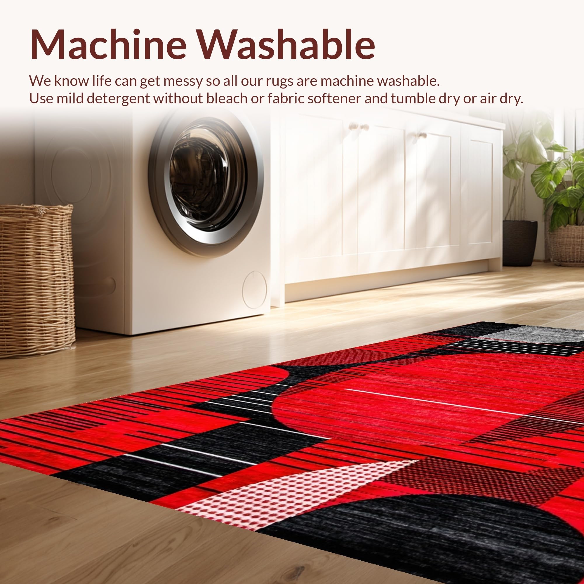 - Machine Washable: Our rugs can be easily thrown in the wash machine.