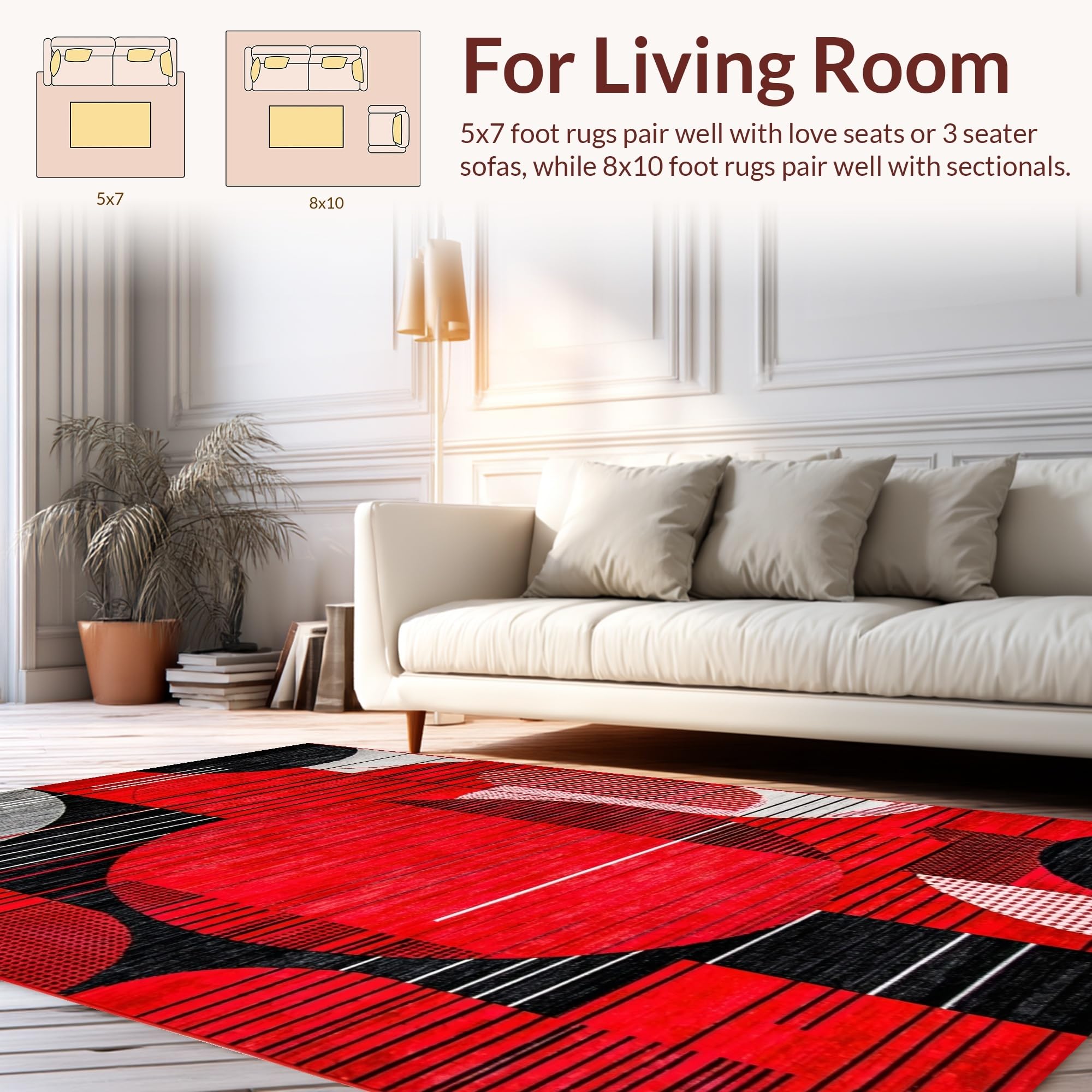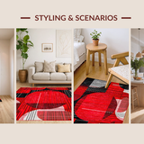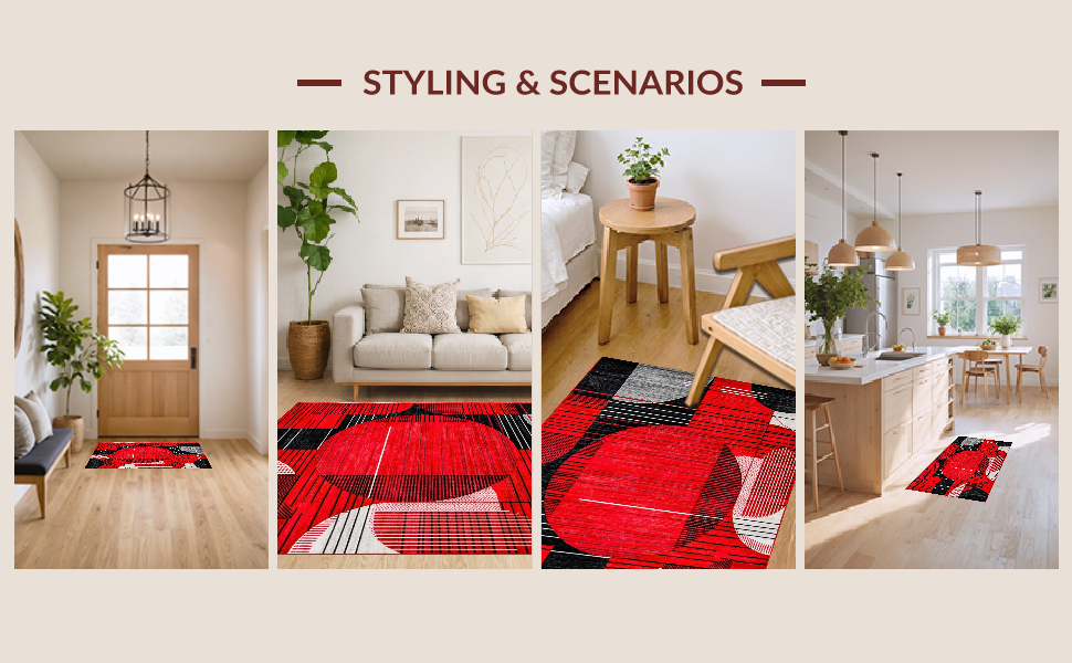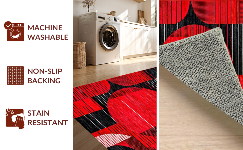 Ultra Soft Area Rug, Non Slip, Stain Resistant, Washable Area Rugs for Living Room, Bedroom, Artful Circular Design Aesthetic(Red) Overview: