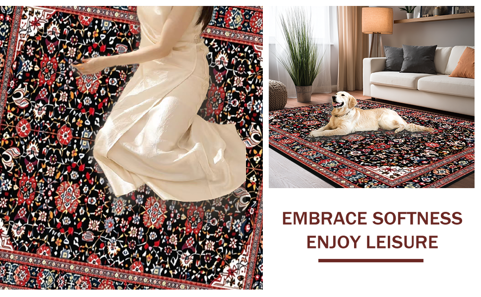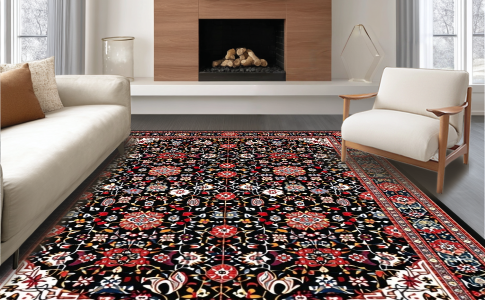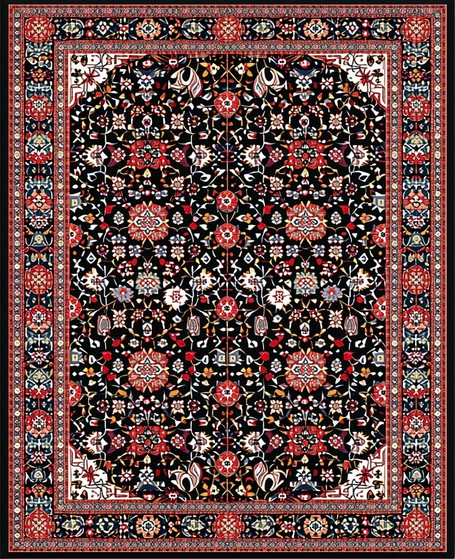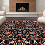 Ultra Soft Area Rug, Non Slip, Stain Resistant, Washable Area Rugs for Living Room, Bedroom, Artful Colorful Medallion Composition(Black) Overview: