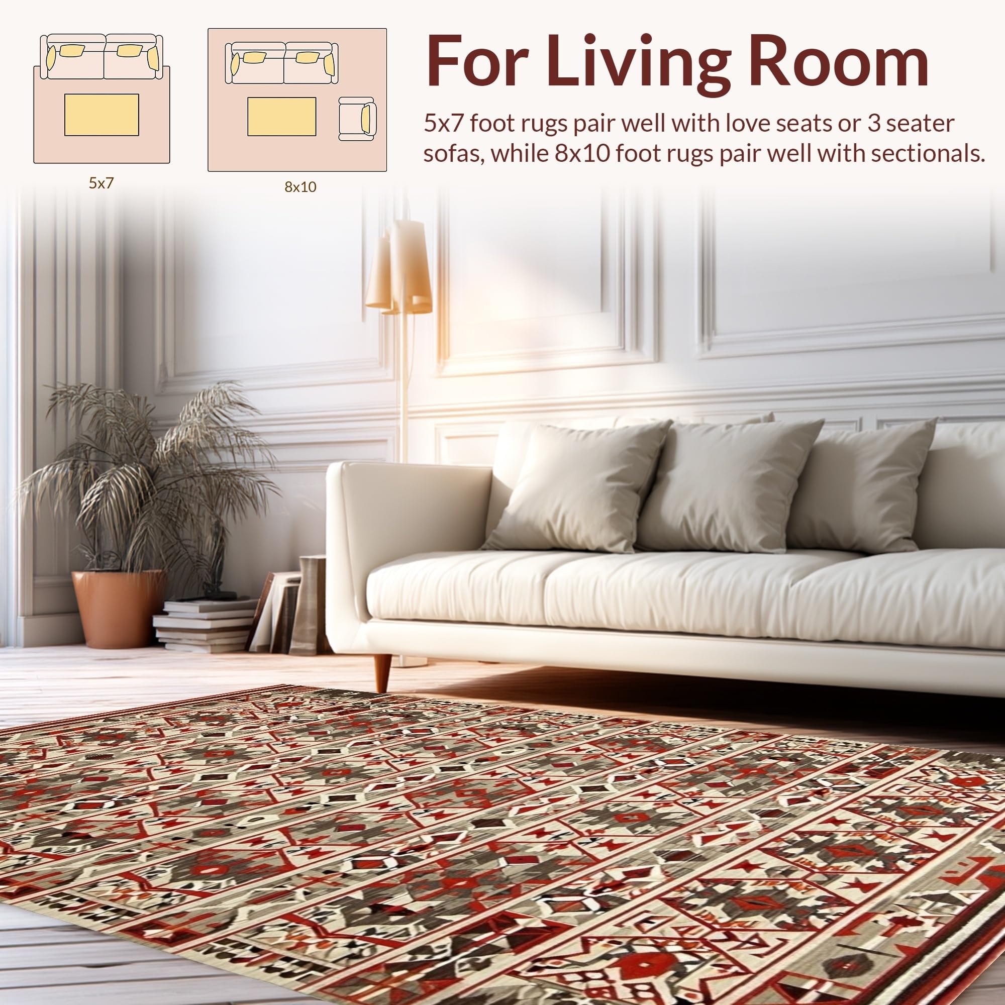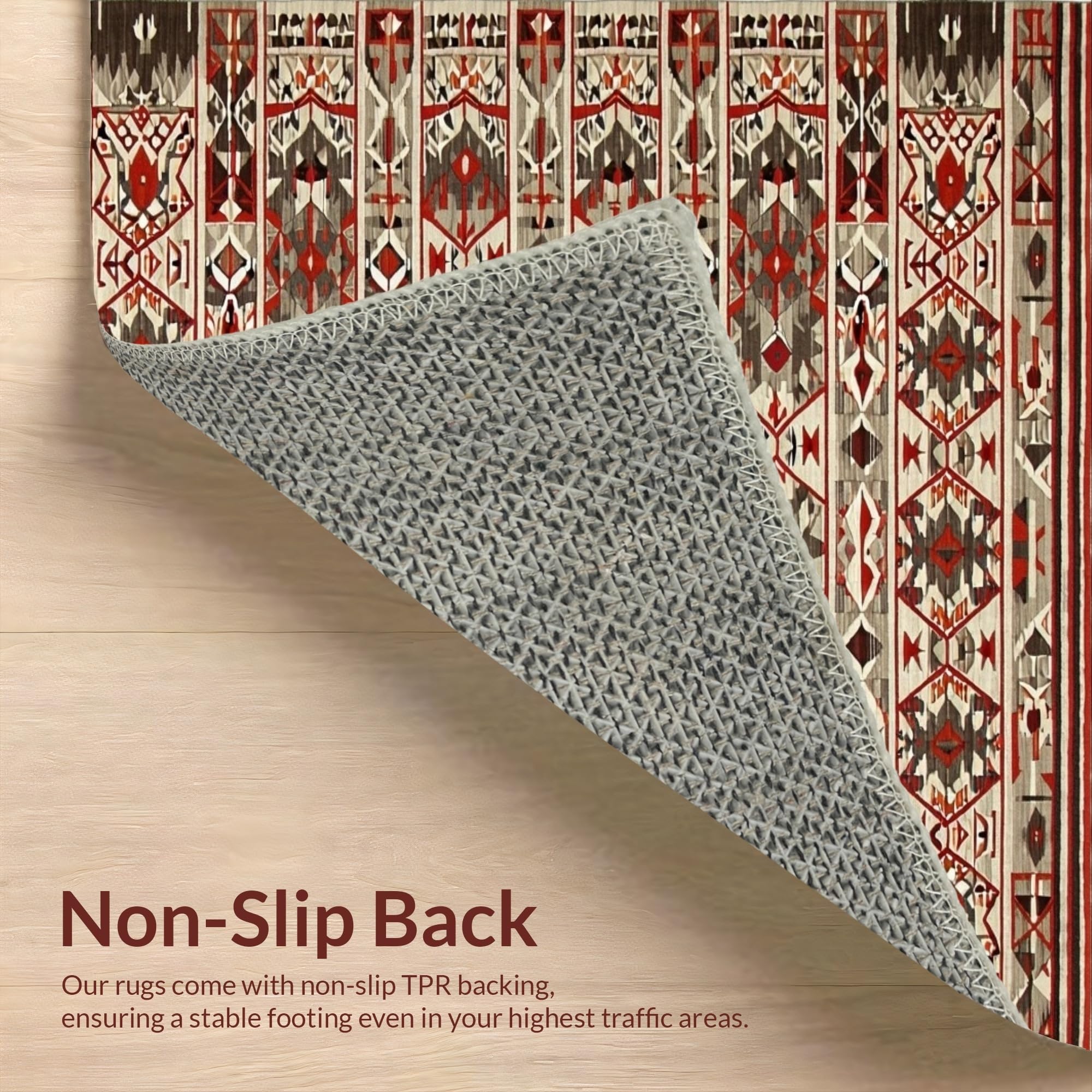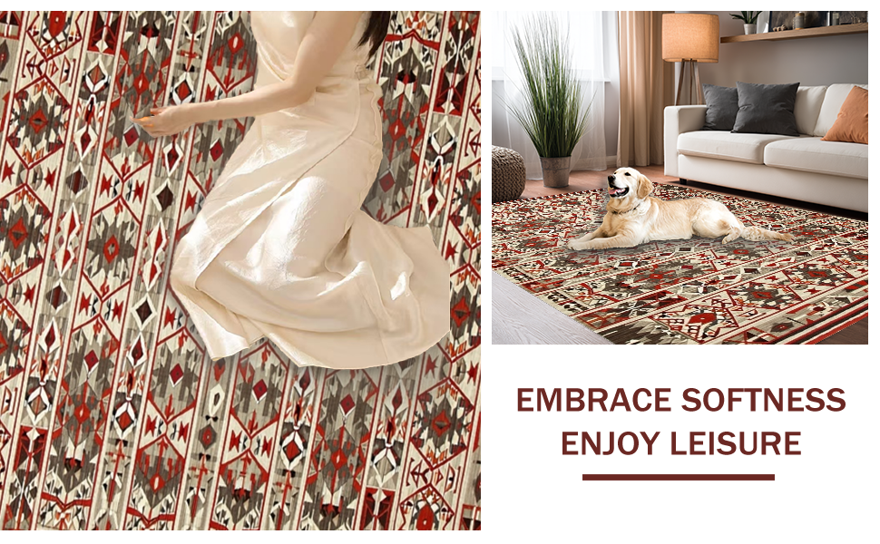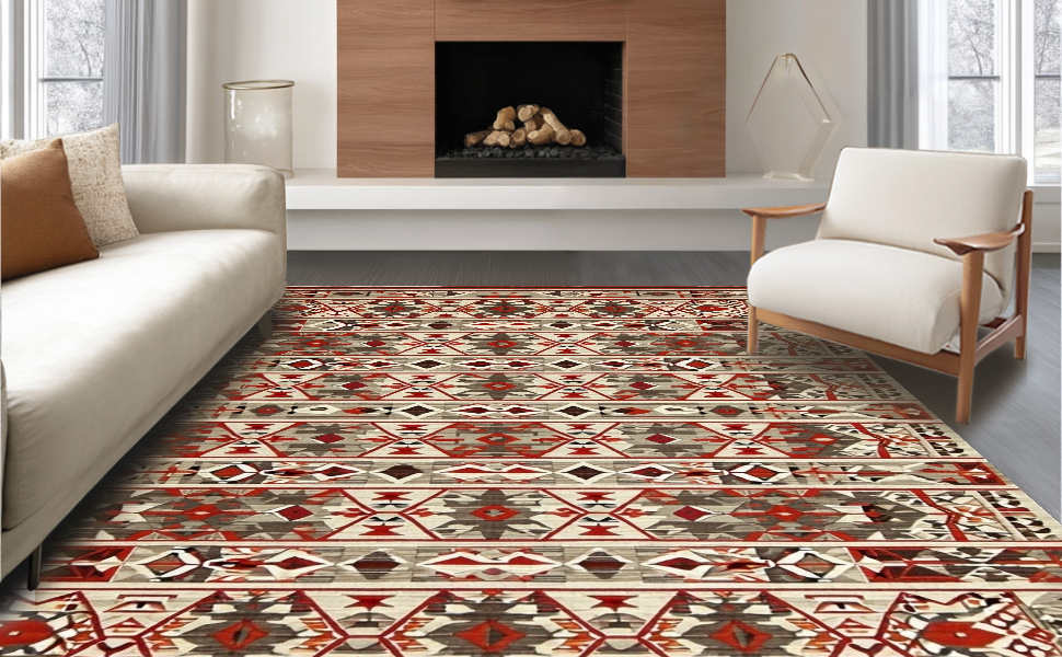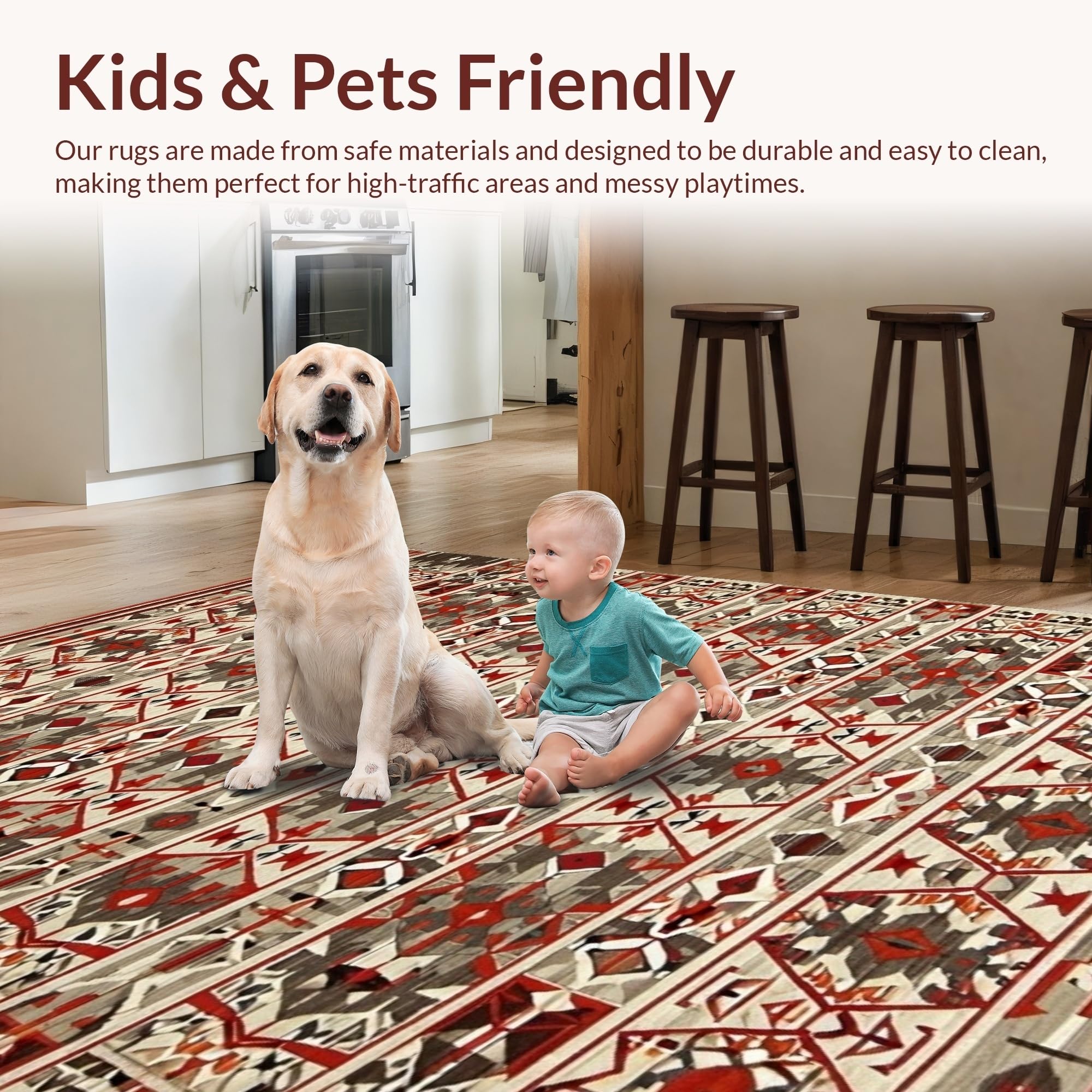 Ultra Soft Area Rug, Non Slip, Stain Resistant, Washable Area Rugs for Living Room, Bedroom, Artful Colorful Tiled Design(Red) Overview: