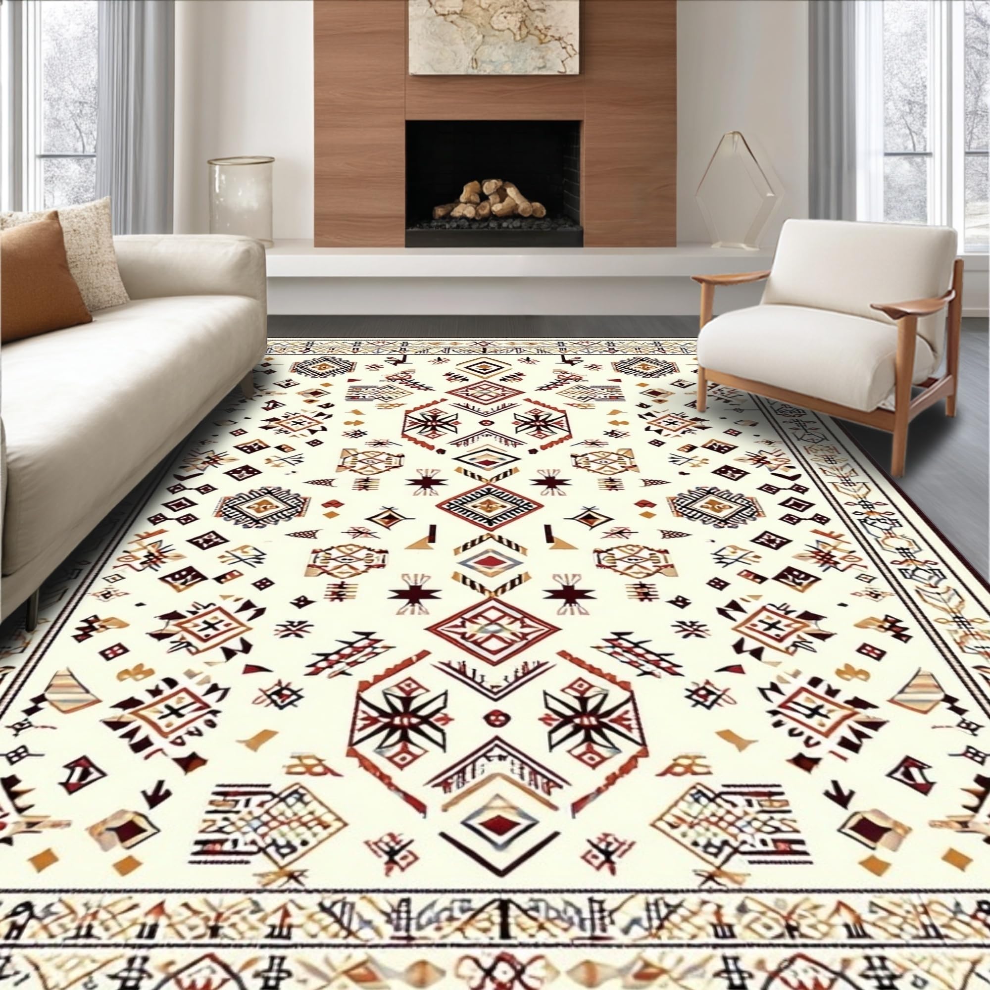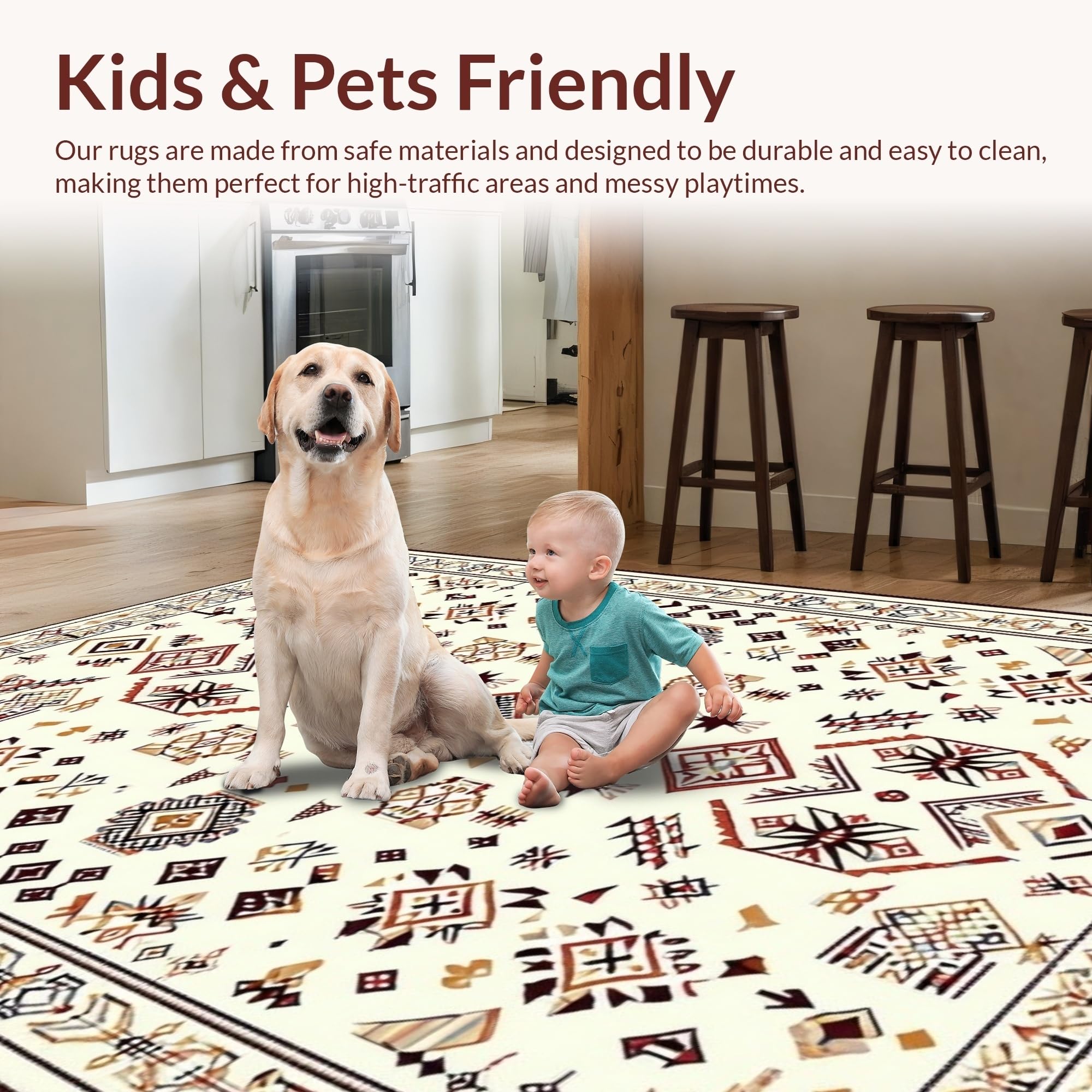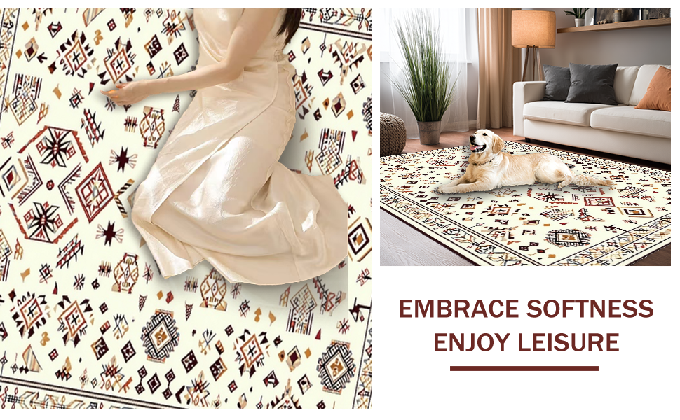 Ultra Soft Area Rug, Non Slip, Stain Resistant, Washable Area Rugs for Living Room, Bedroom, Artful Contemporary Layered Look(Ivory) Overview: