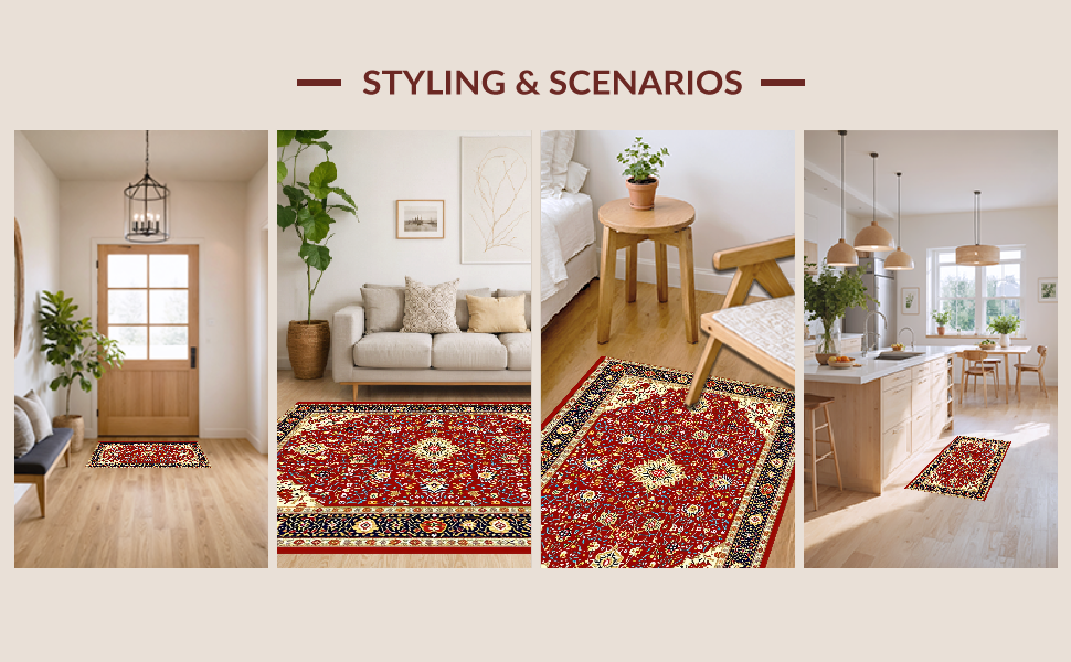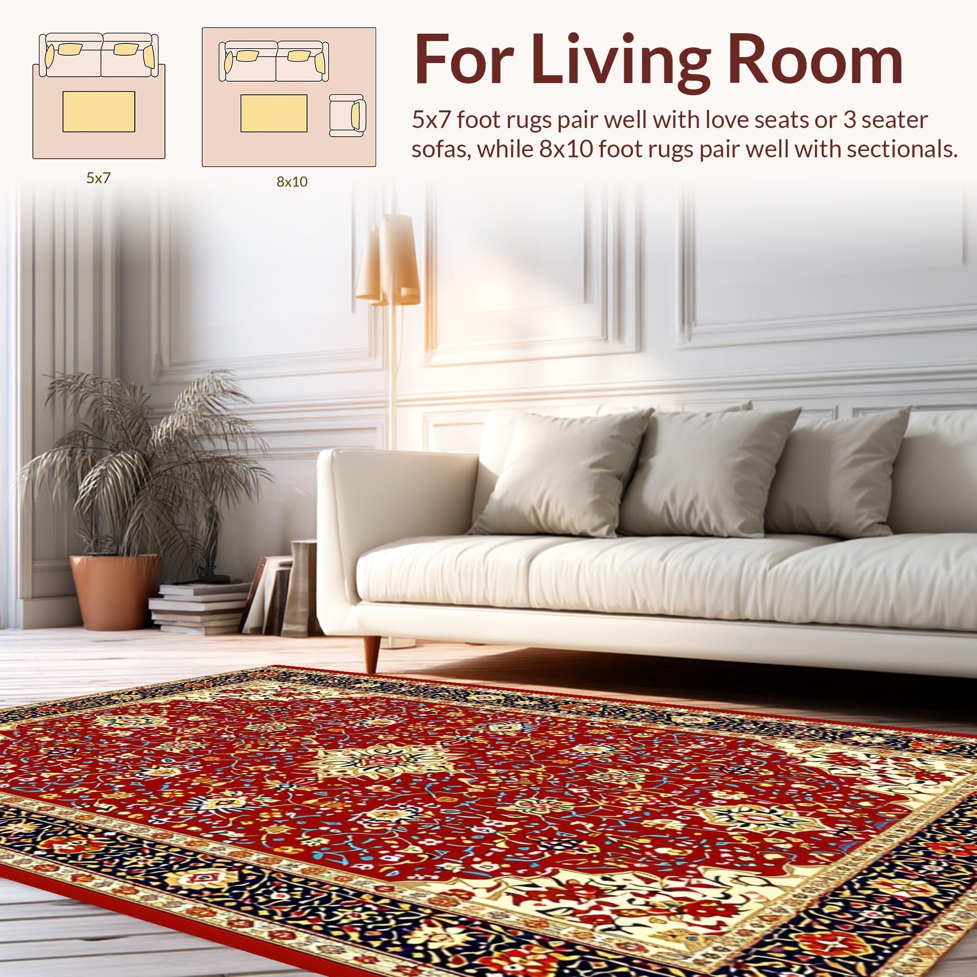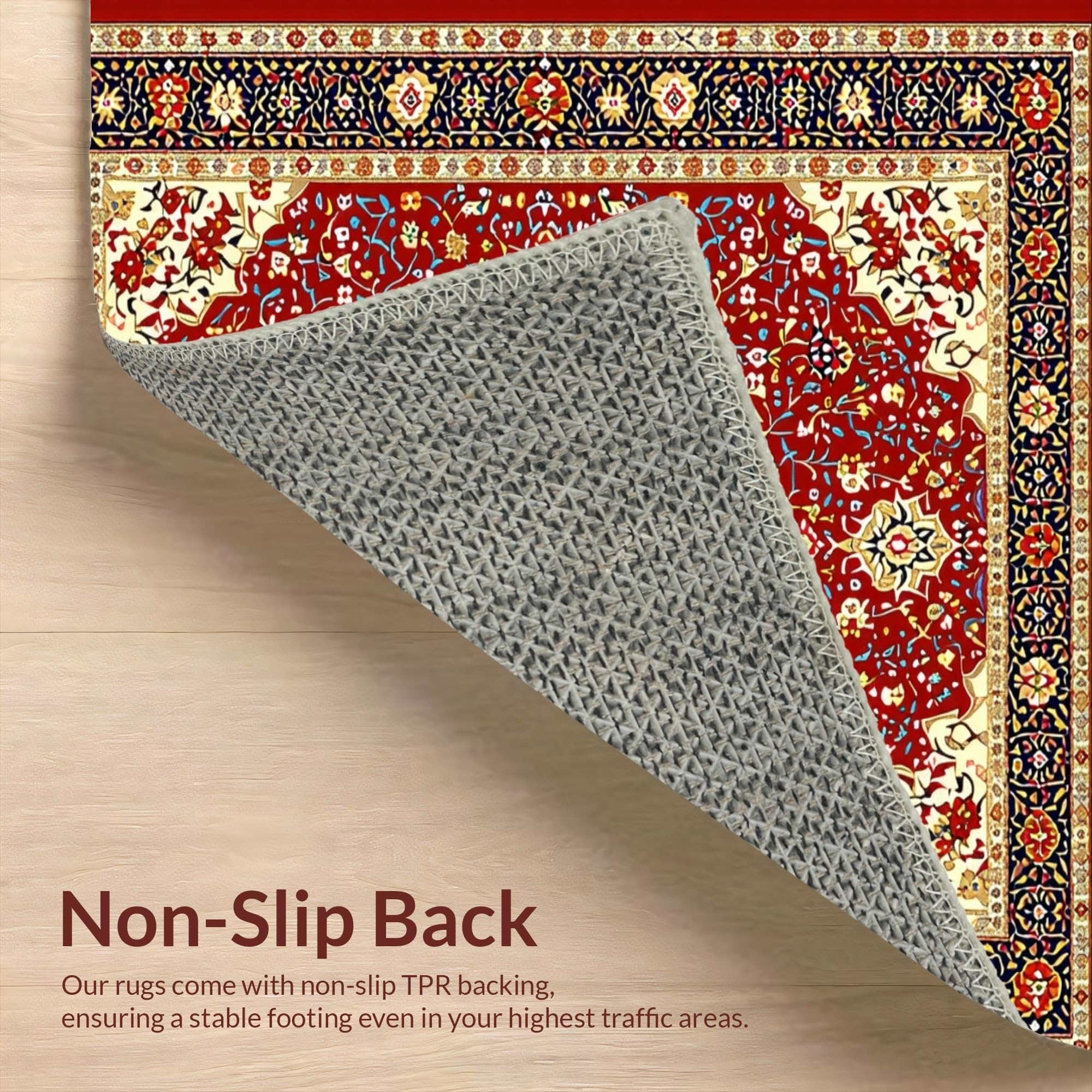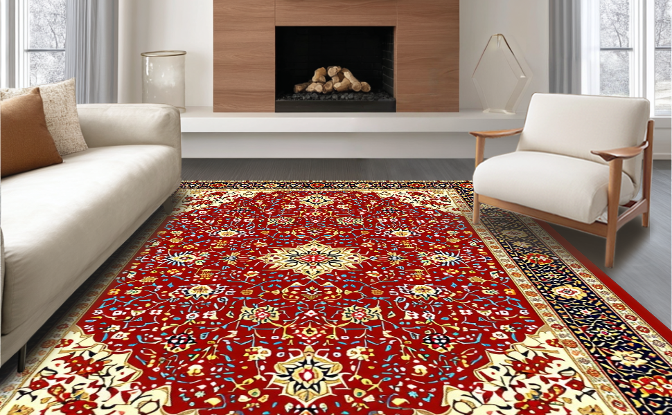 Ultra Soft Area Rug, Non Slip, Stain Resistant, Washable Area Rugs for Living Room, Bedroom, Artful Cozy Diamond Motif(Red) Overview:
