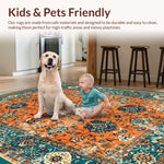 Ultra Soft Area Rug, Non Slip, Stain Resistant, Washable Area Rugs for Living Room, Bedroom, Artful Distressed Lattice Style(Orange) Overview: