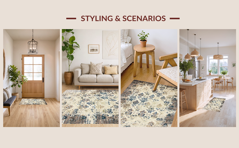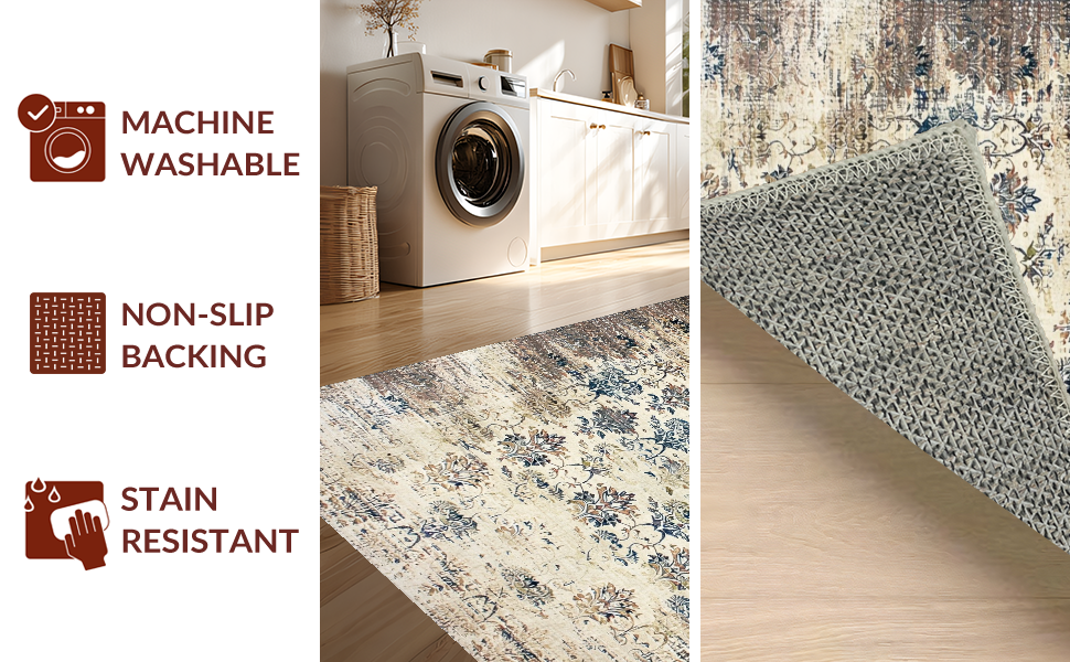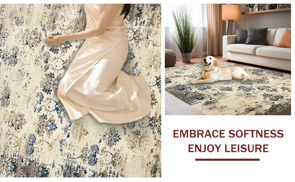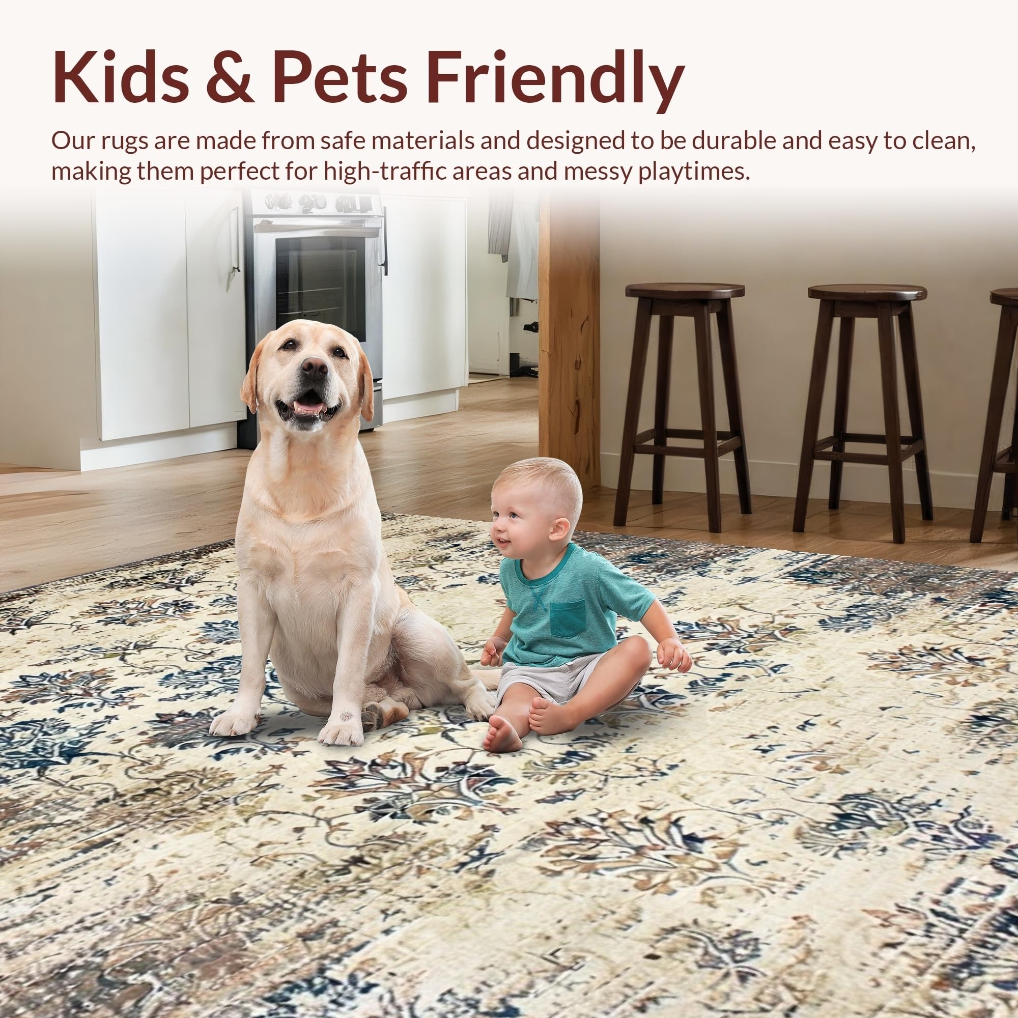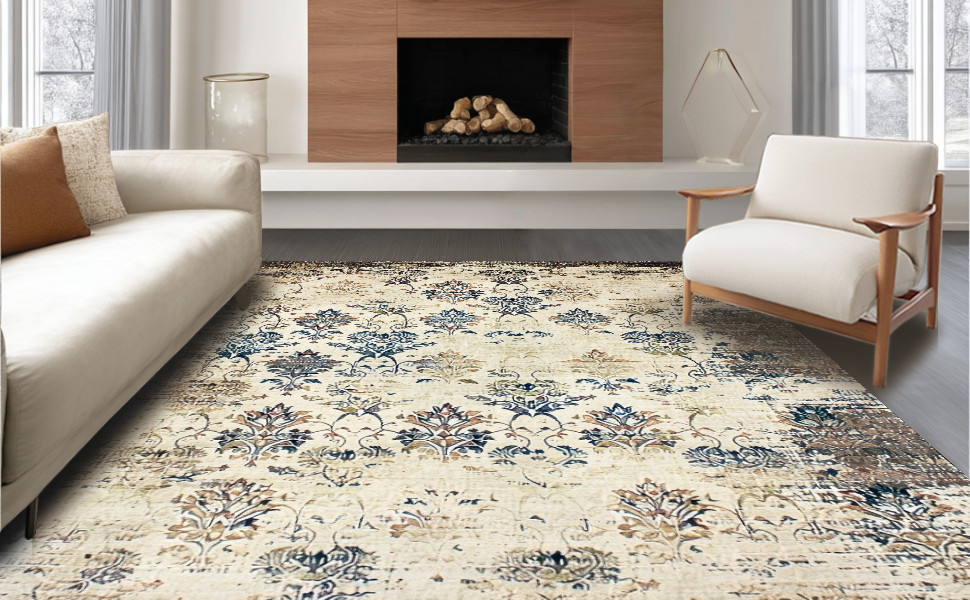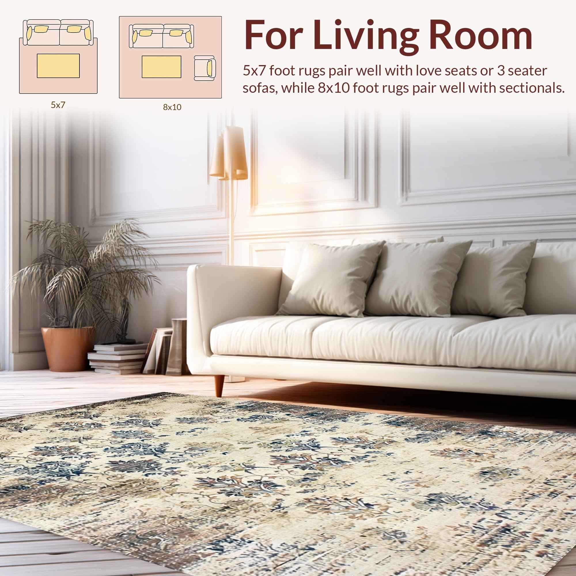 Ultra Soft Area Rug, Non Slip, Stain Resistant, Washable Area Rugs for Living Room, Bedroom, Artful Distressed Nature Palette(Beige) Overview:
