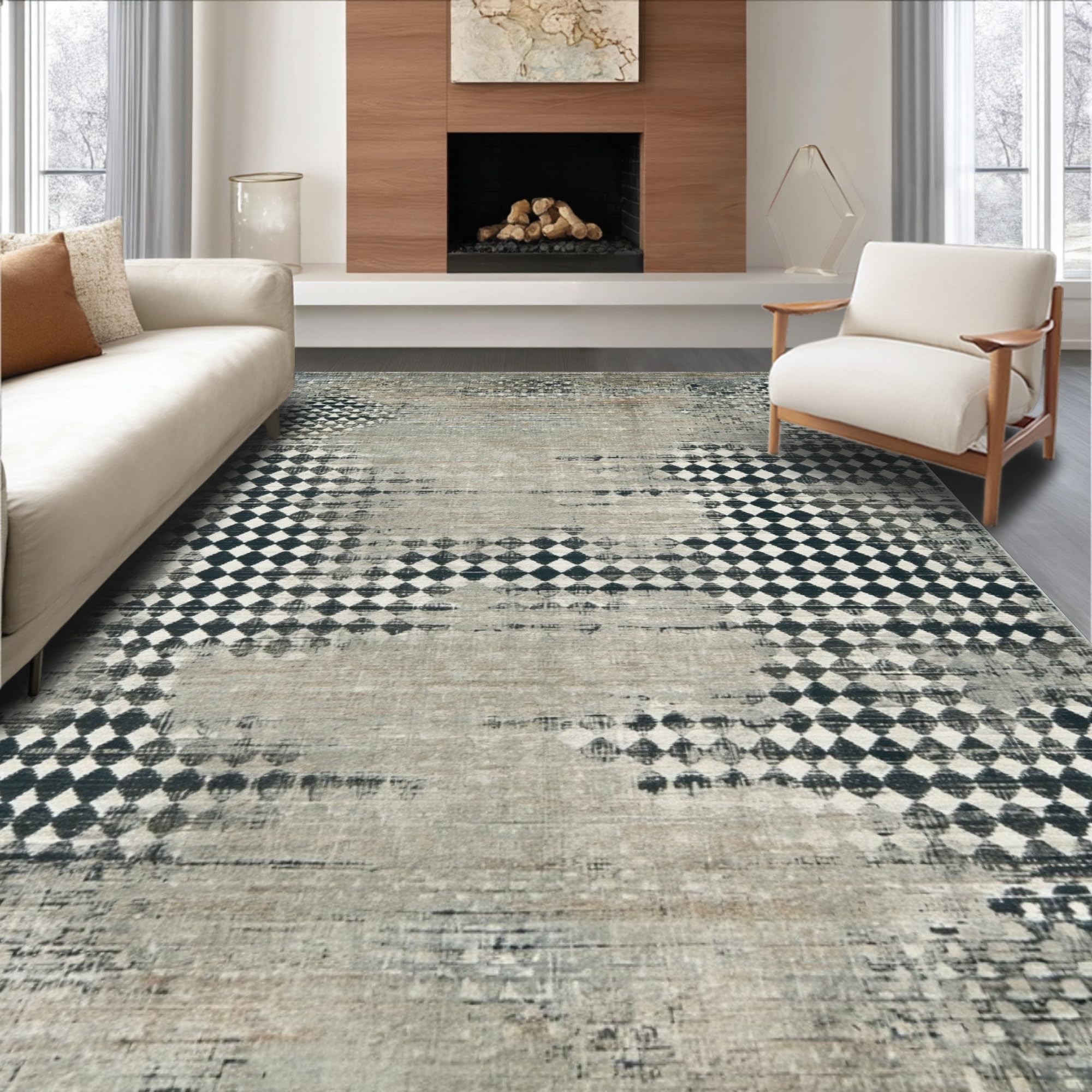 Ultra Soft Area Rug, Non Slip, Stain Resistant, Washable Area Rugs for Living Room, Bedroom, Artful Distressed Ogee Composition(Gray) Overview: