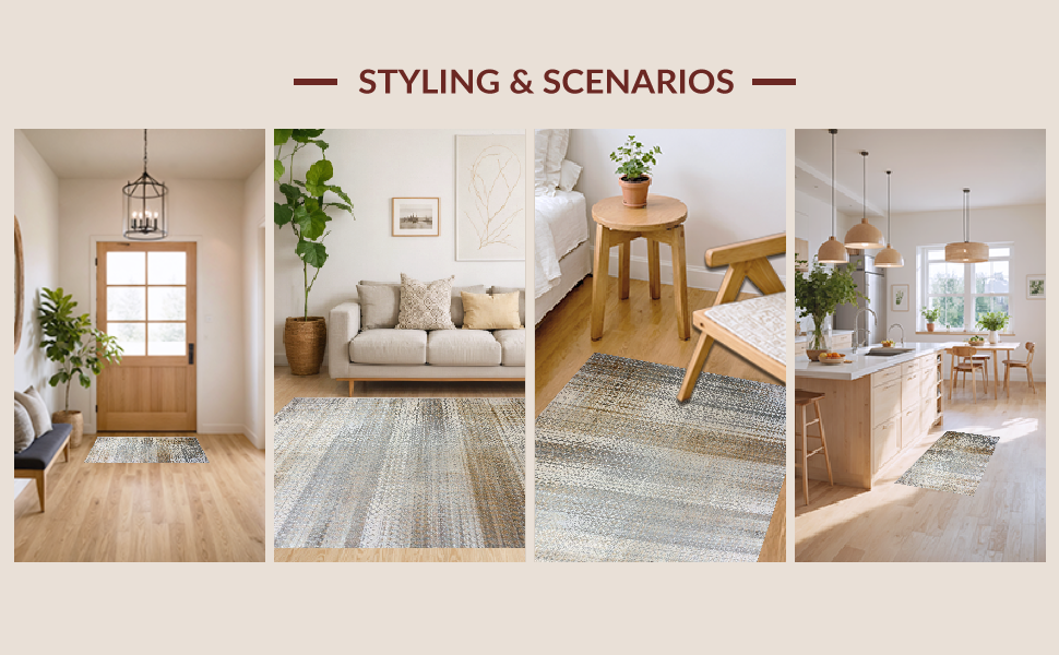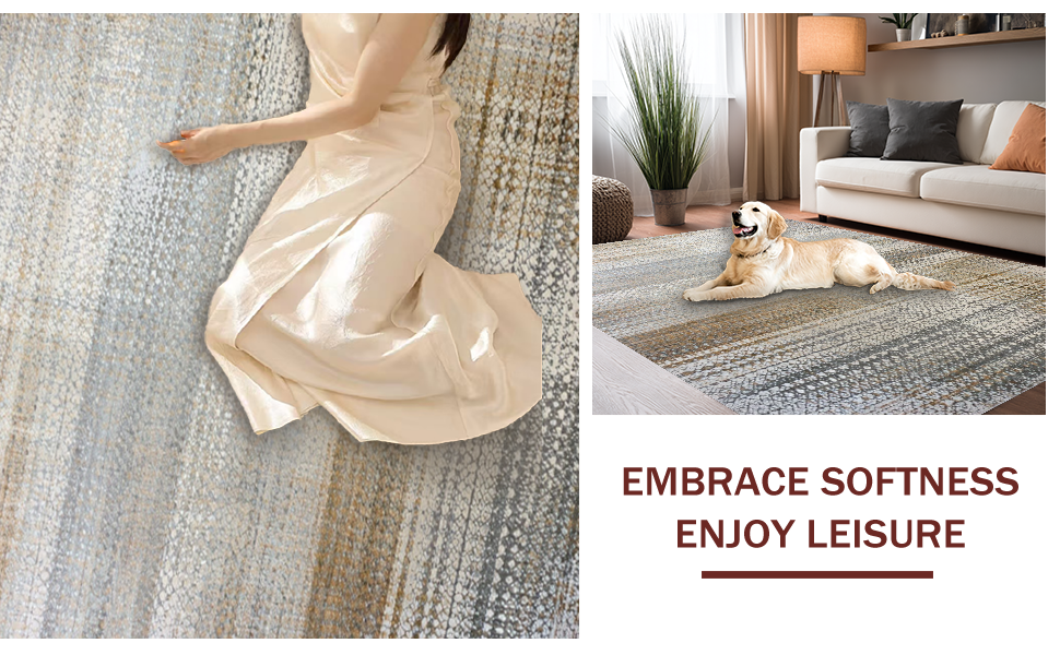 Ultra Soft Area Rug, Non Slip, Stain Resistant, Washable Area Rugs for Living Room, Bedroom, Artful Distressed Organic Shapes(Gray) Overview: