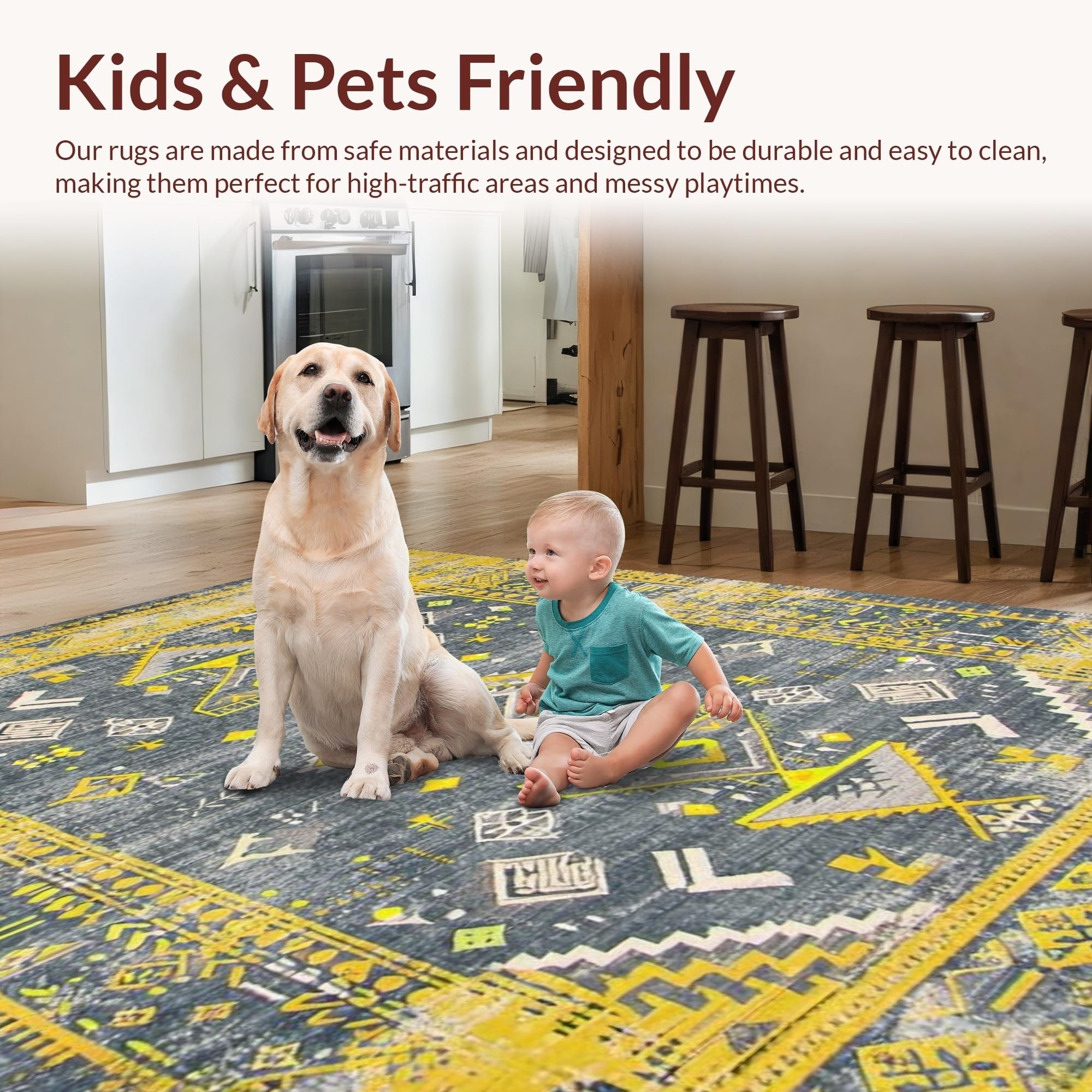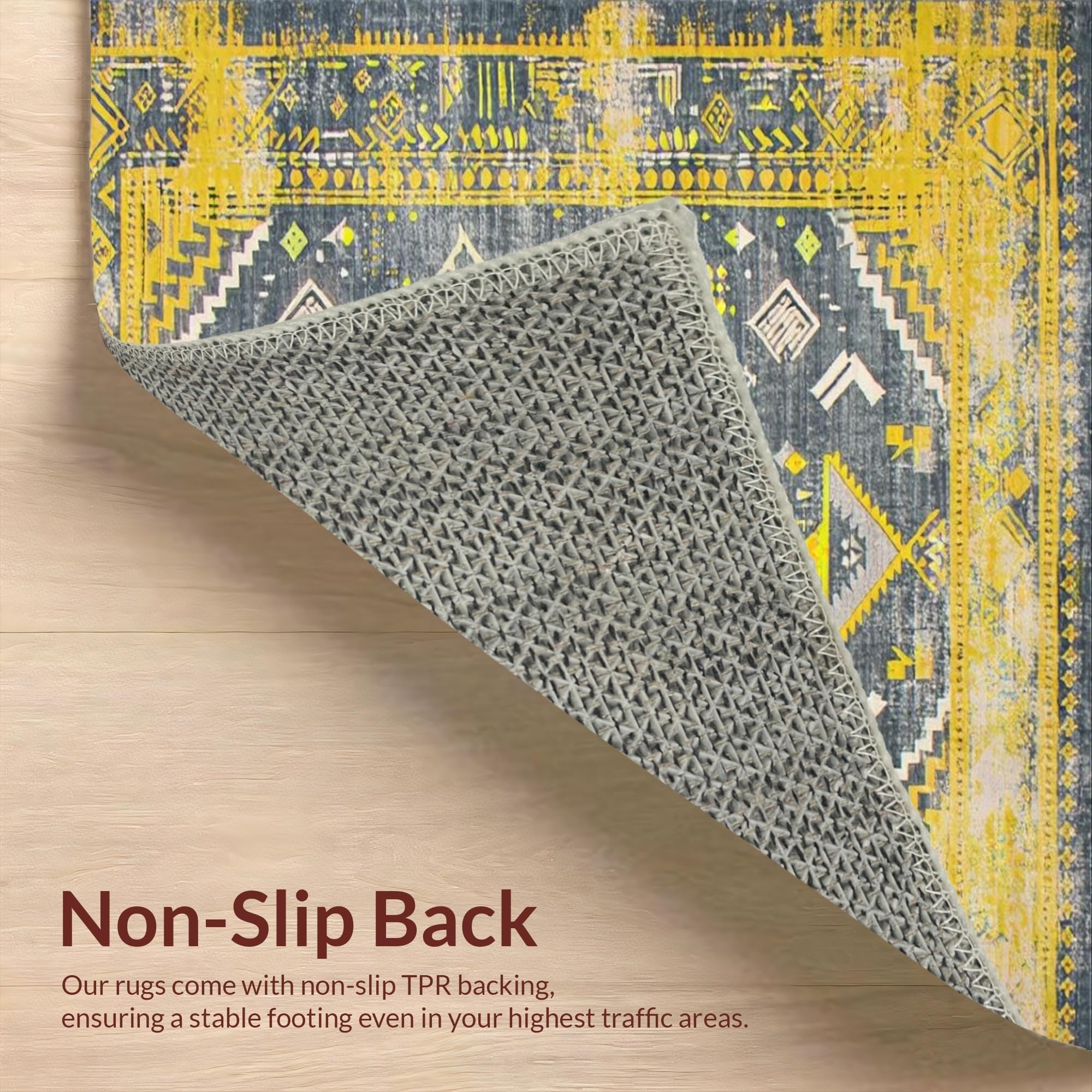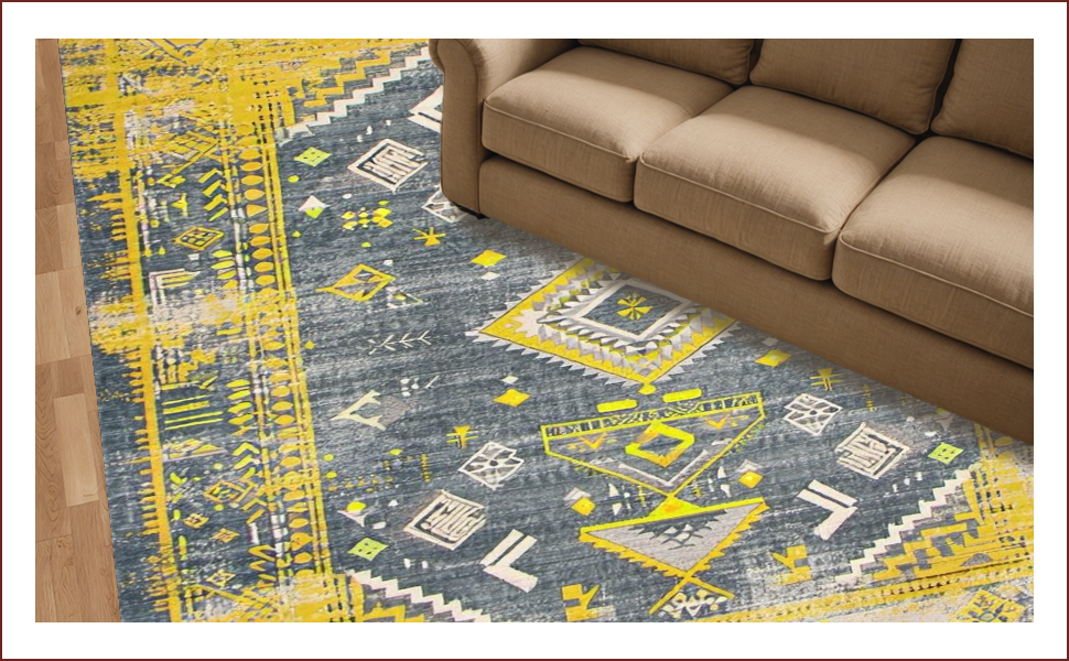 Ultra Soft Area Rug, Non Slip, Stain Resistant, Washable Area Rugs for Living Room, Bedroom, Artful Distressed Tiled Design(Yellow) Overview: