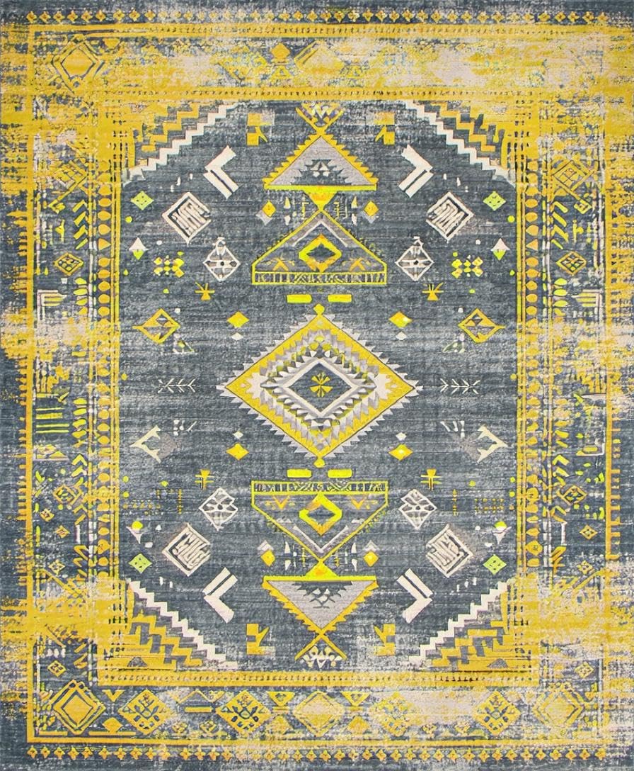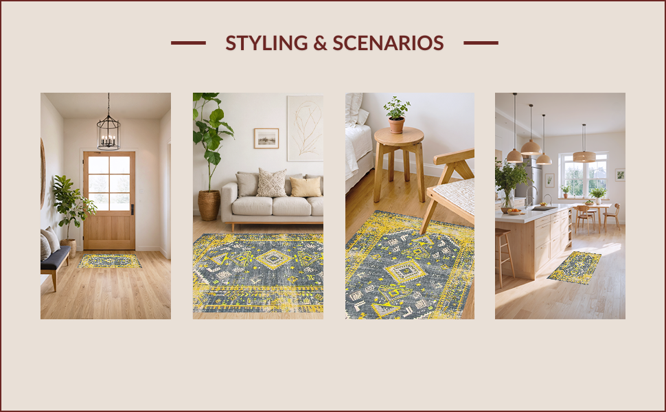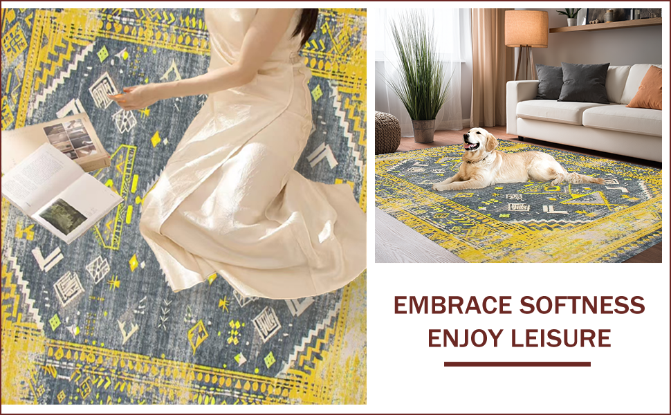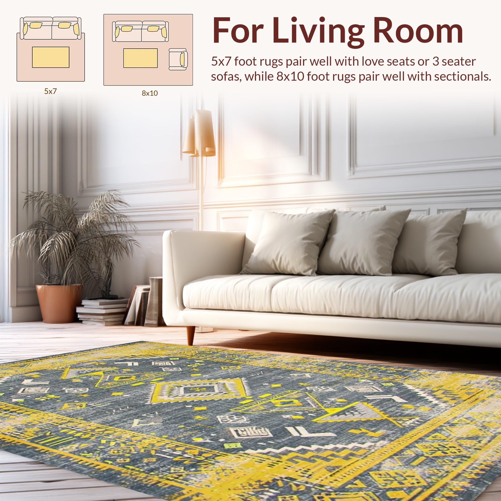 Ultra Soft Area Rug, Non Slip, Stain Resistant, Washable Area Rugs for Living Room, Bedroom, Artful Distressed Tiled Design(Yellow) Overview:
