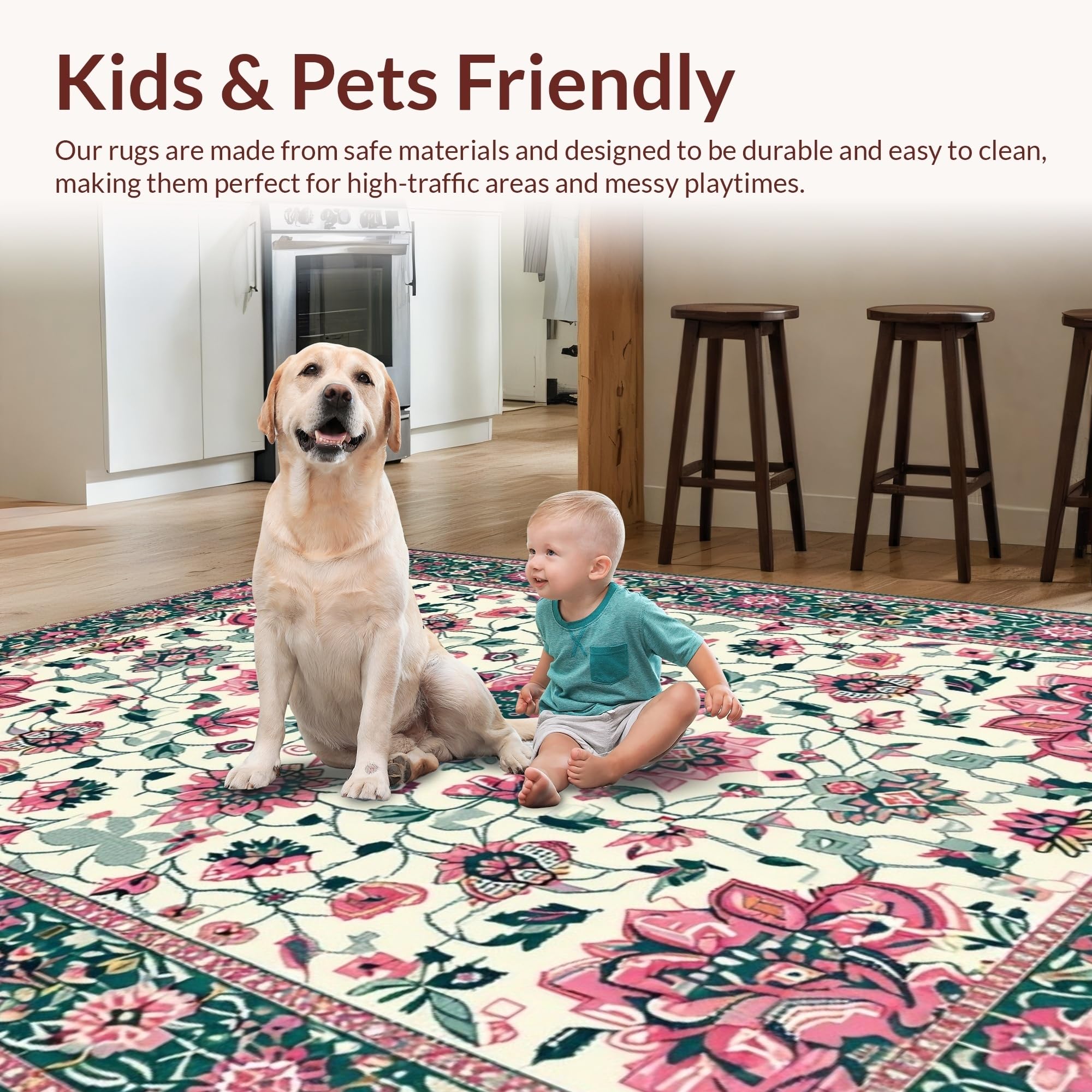 Ultra Soft Area Rug, Non Slip, Stain Resistant, Washable Area Rugs for Living Room, Bedroom, Artful Distressed Trellis Concept(White) Overview: