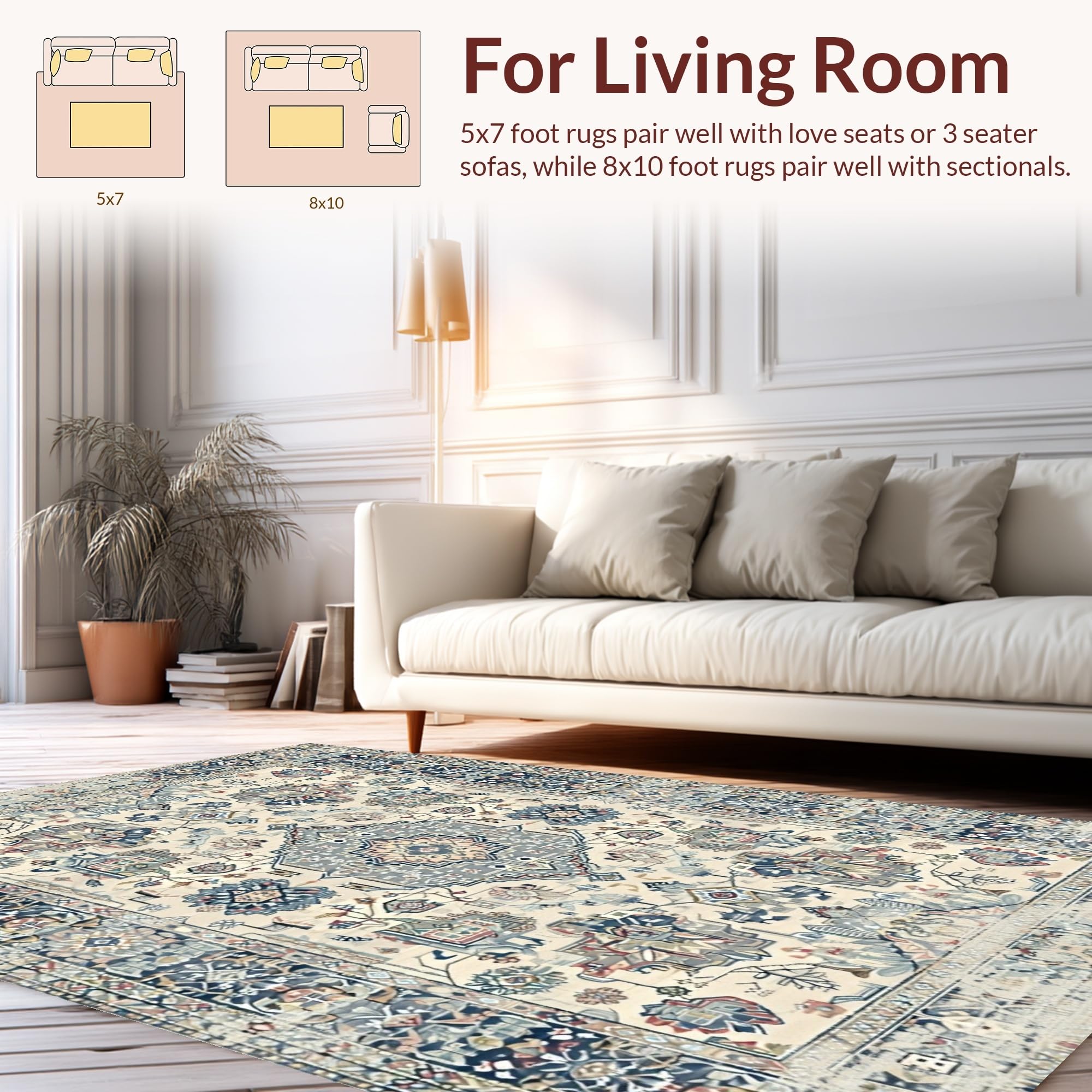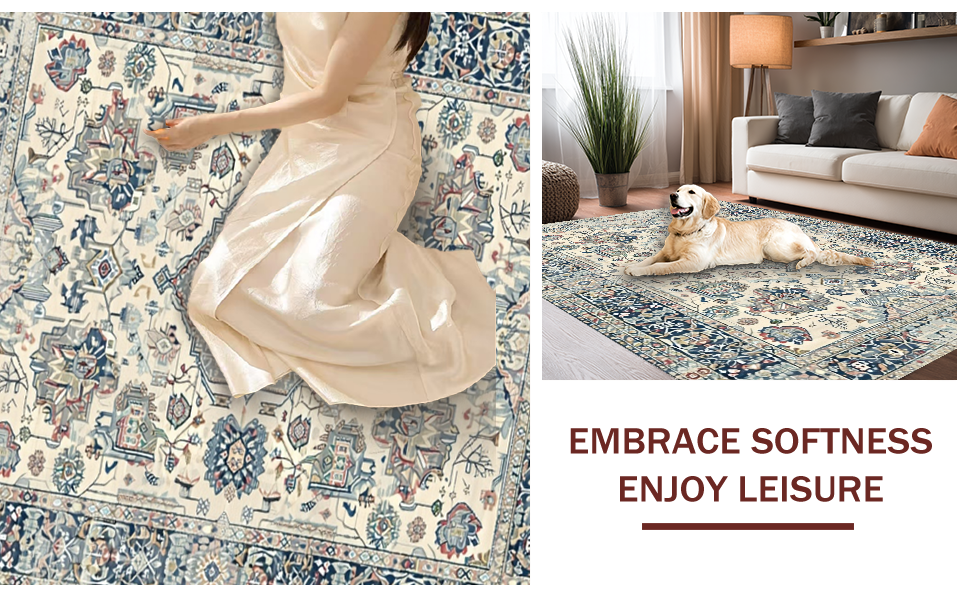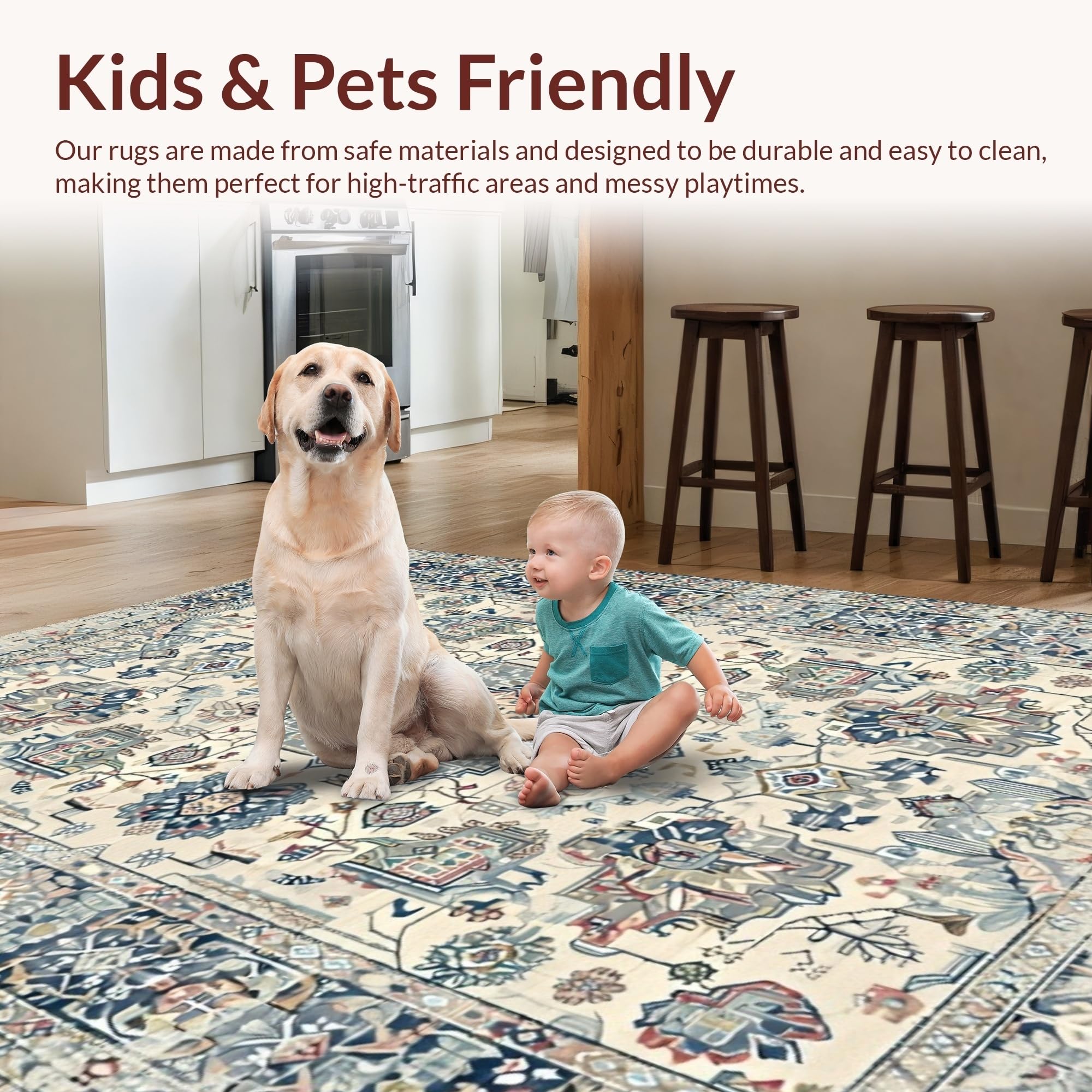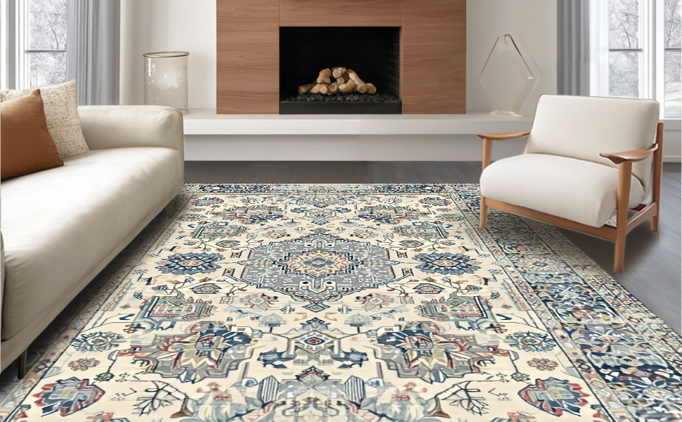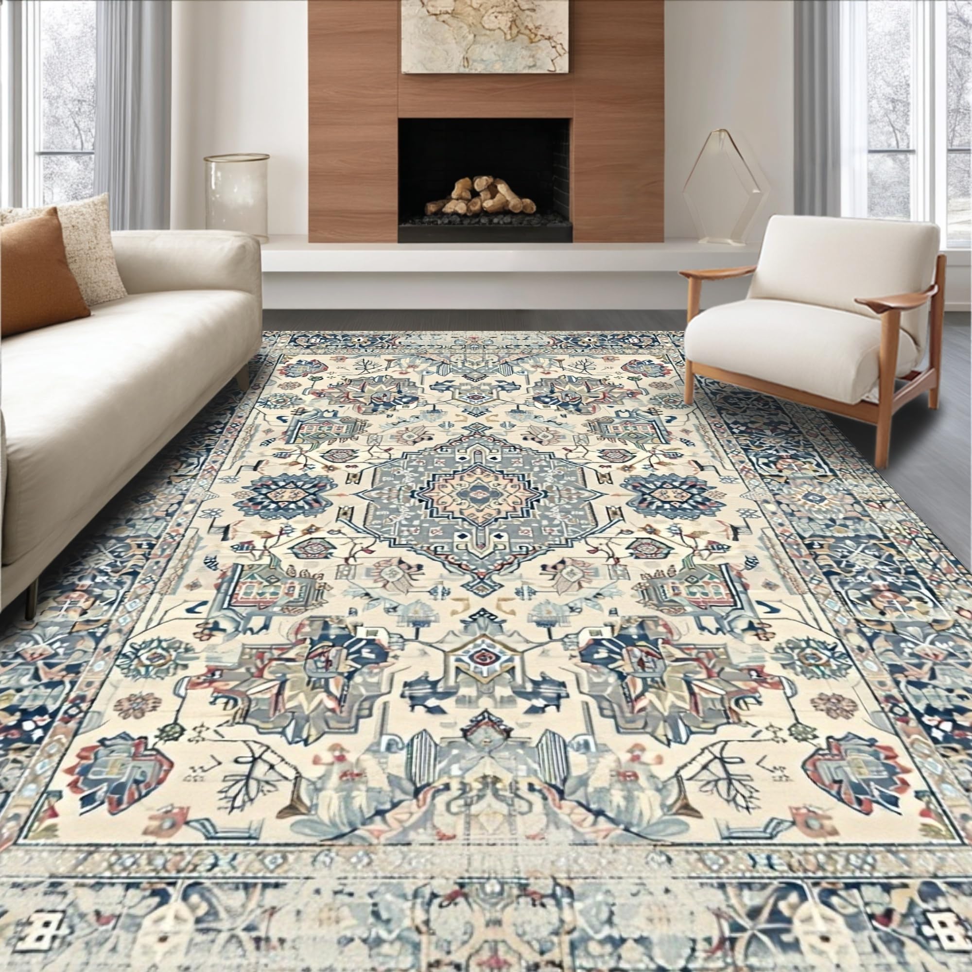 Ultra Soft Area Rug, Non Slip, Stain Resistant, Washable Area Rugs for Living Room, Bedroom, Artful Dove Tiled Composition(Beige) Overview: