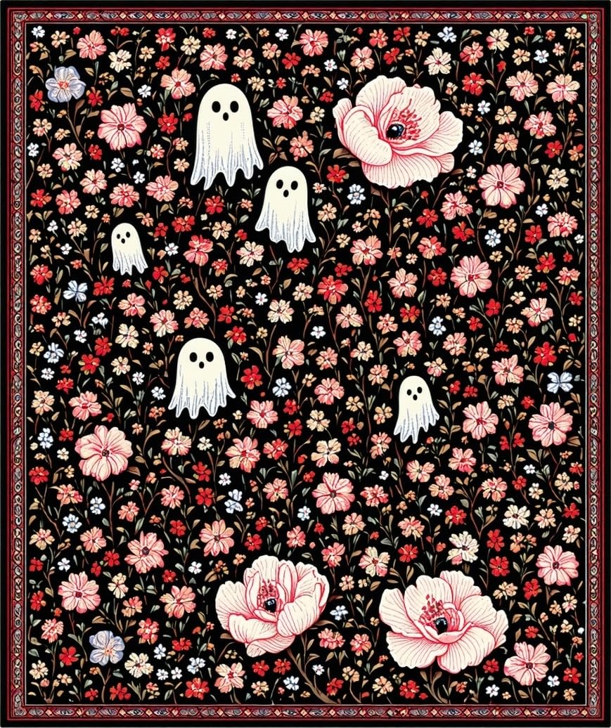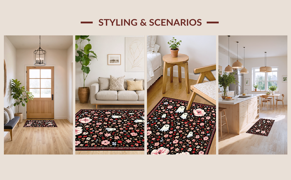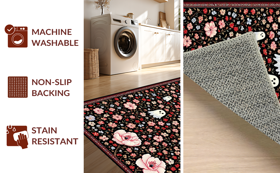 Ultra Soft Area Rug, Non Slip, Stain Resistant, Washable Area Rugs for Living Room, Bedroom, Artful Eccentric Flower Pattern(Black) Overview: