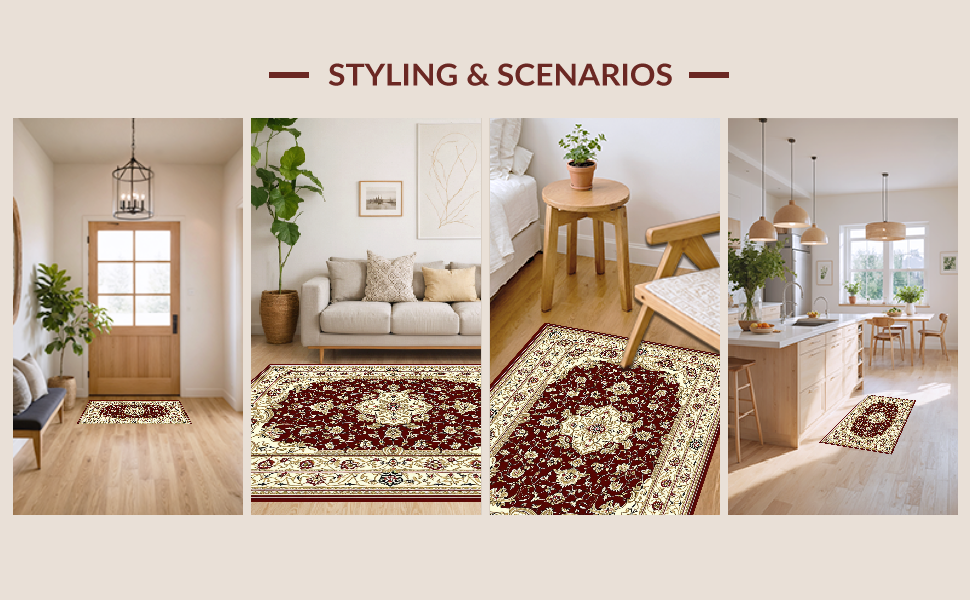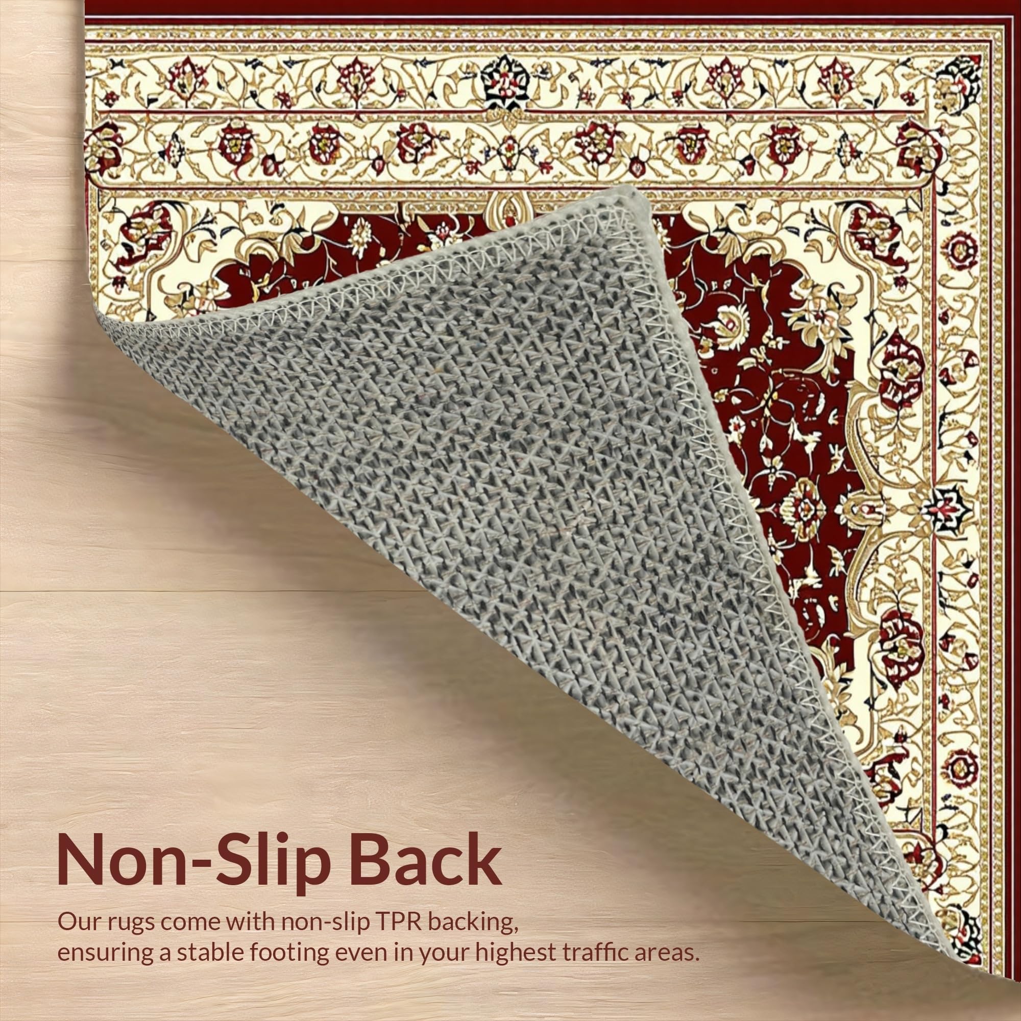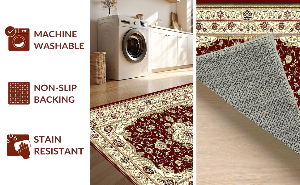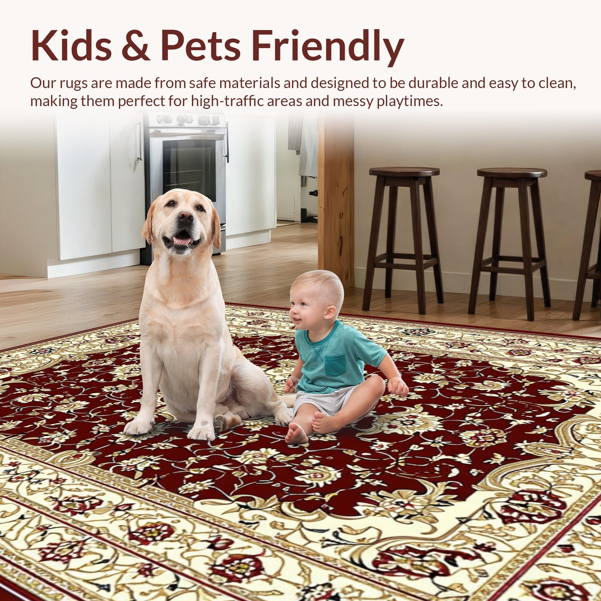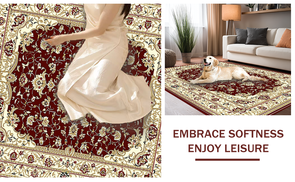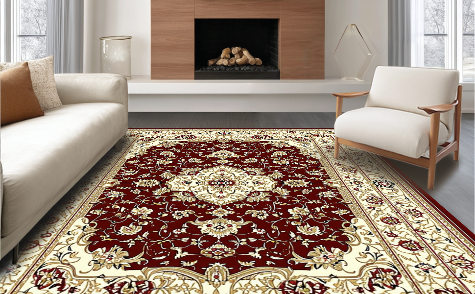 Ultra Soft Area Rug, Non Slip, Stain Resistant, Washable Area Rugs for Living Room, Bedroom, Artful European Inspired Decorative Piece(Red) Overview: