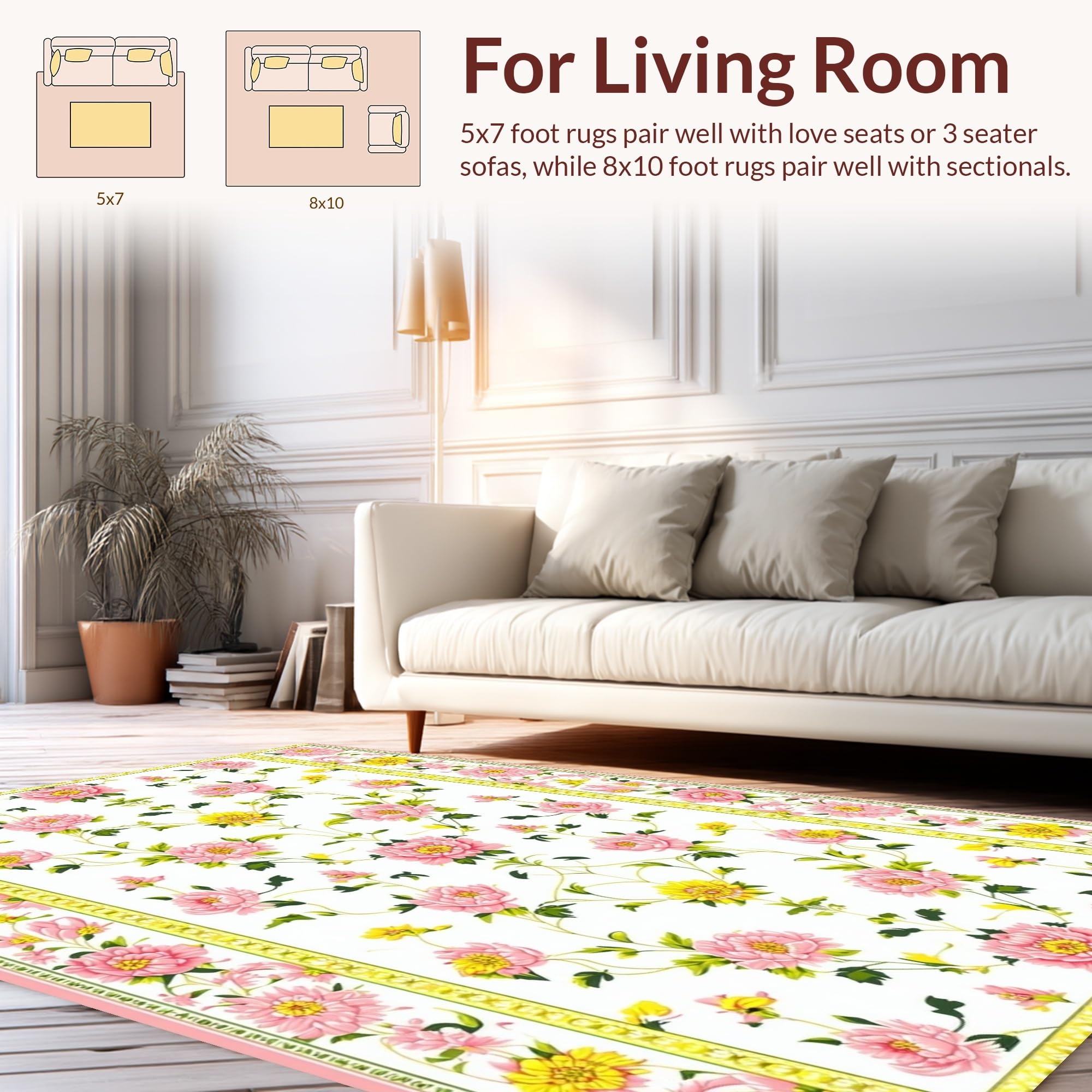Ultra Soft Area Rug, Non Slip, Stain Resistant, Washable Area Rugs for Living Room, Bedroom, Artful Flower and Vase Ensemble(White) Overview: