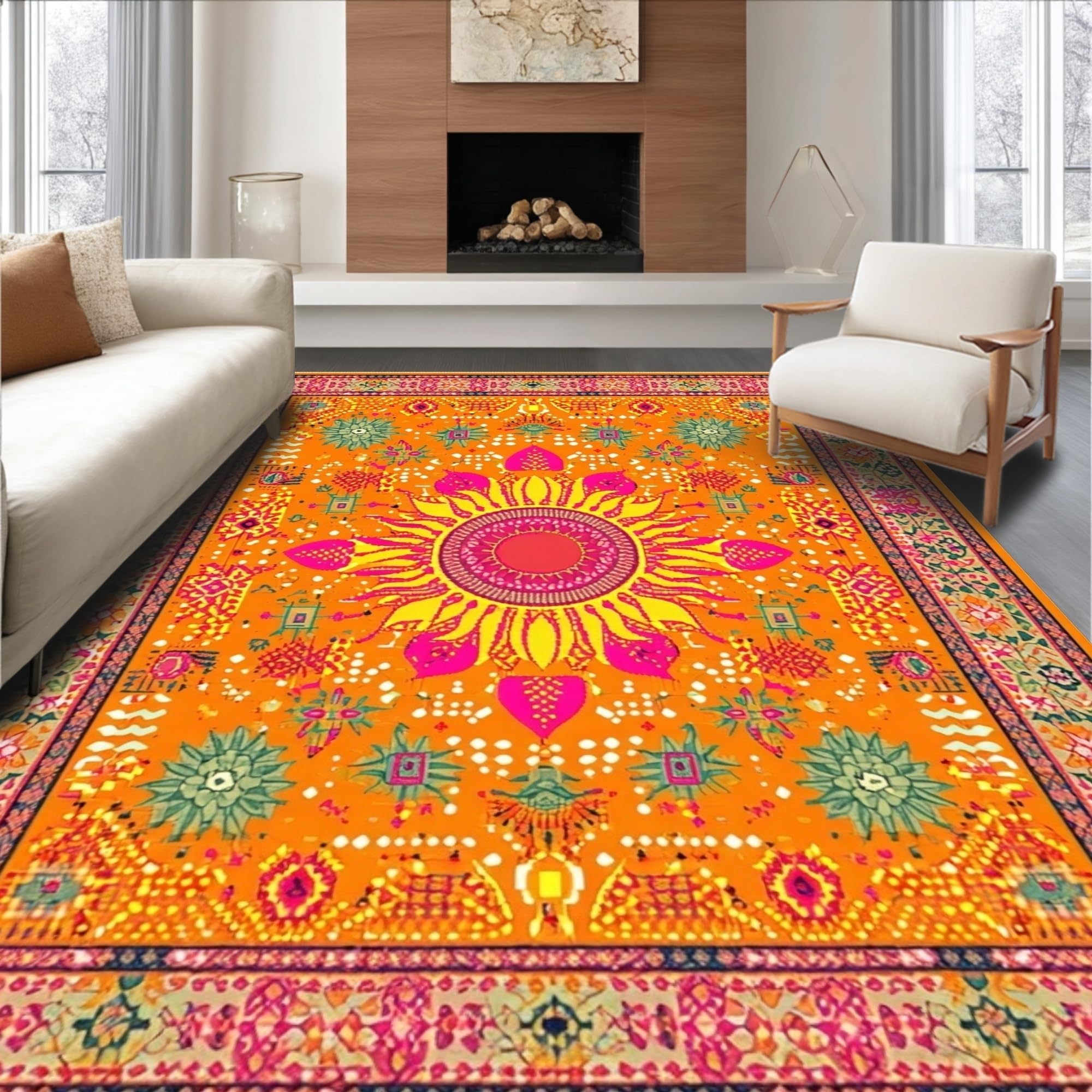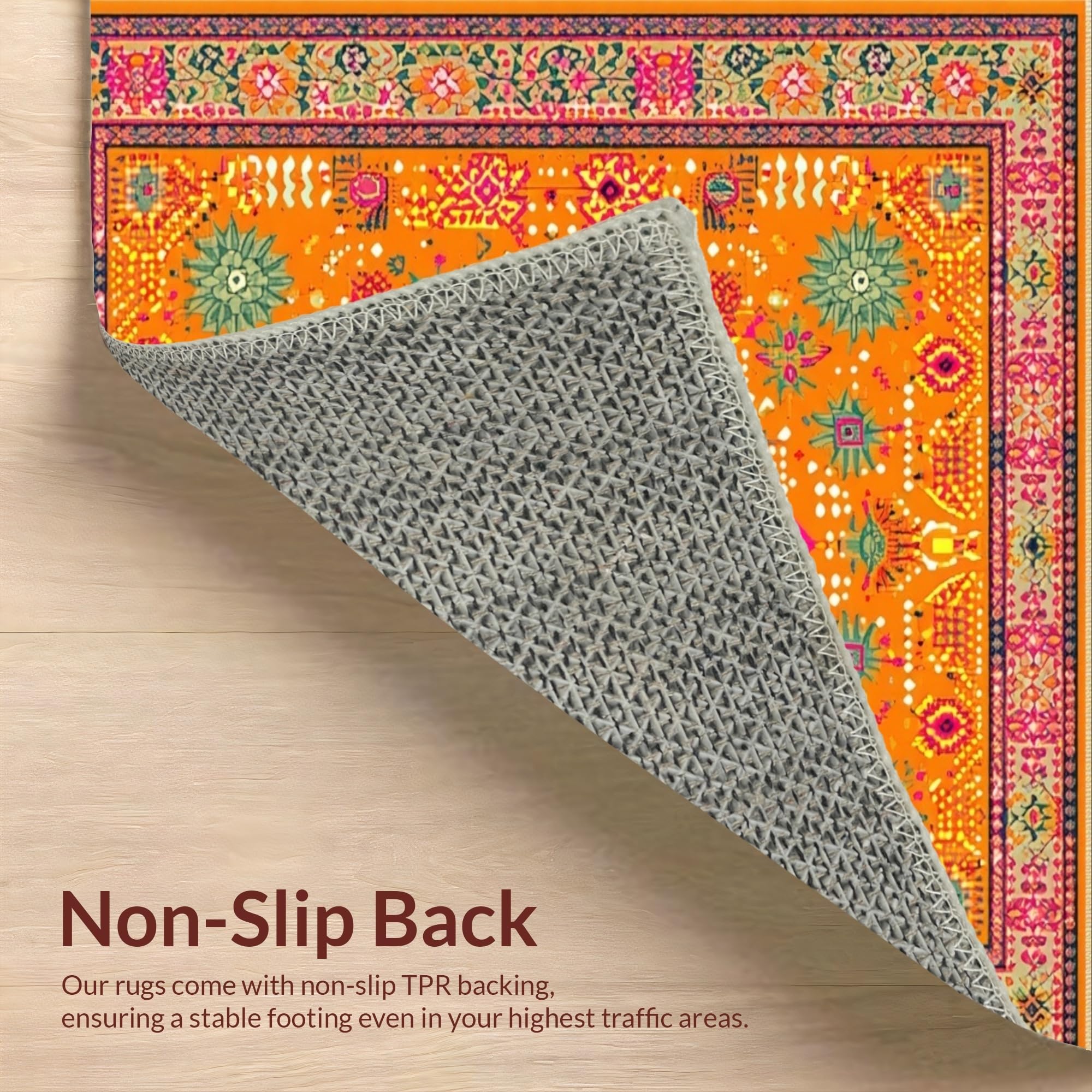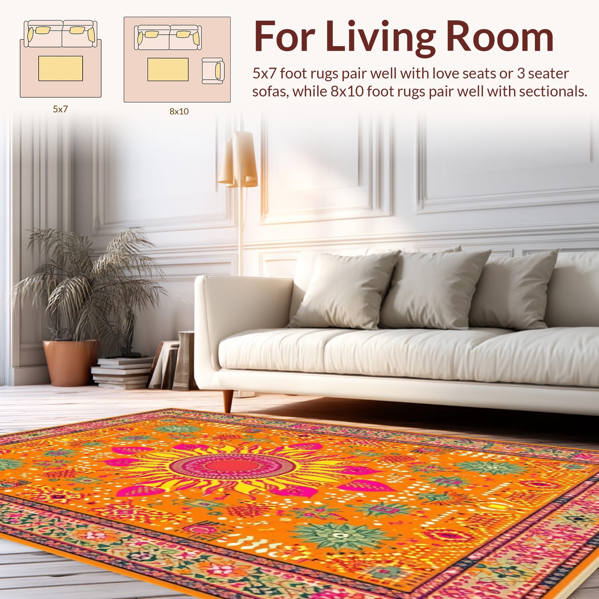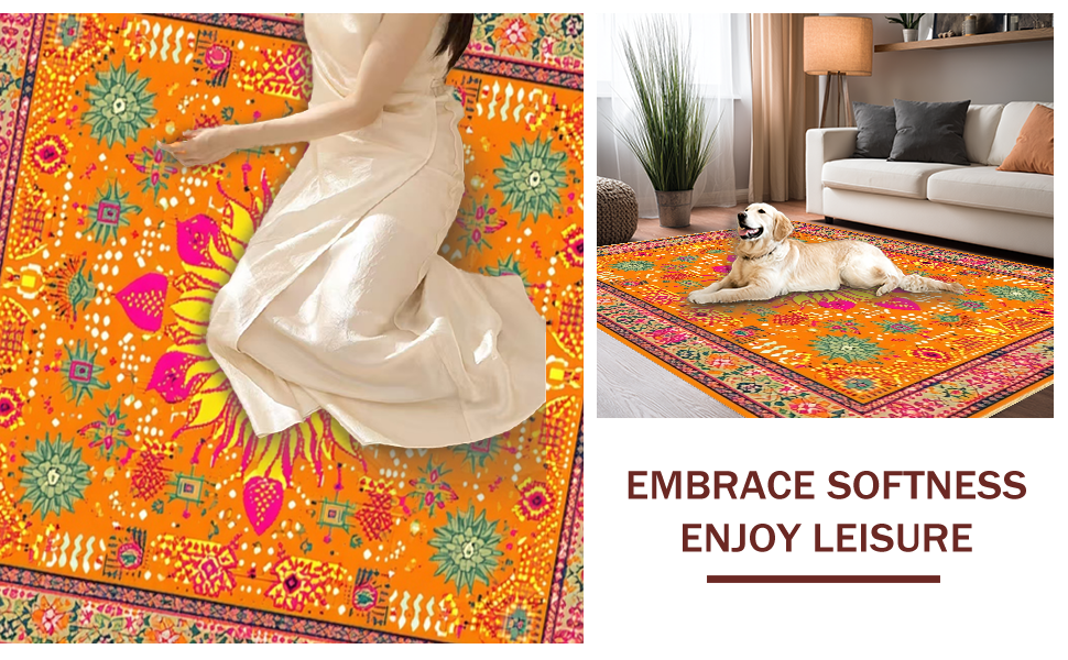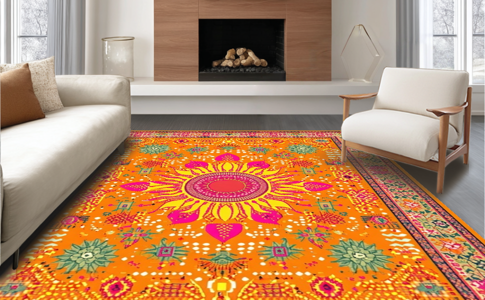 Ultra Soft Area Rug, Non Slip, Stain Resistant, Washable Area Rugs for Living Room, Bedroom, Artful Fluffy Geometric Accents(Orange) Overview: