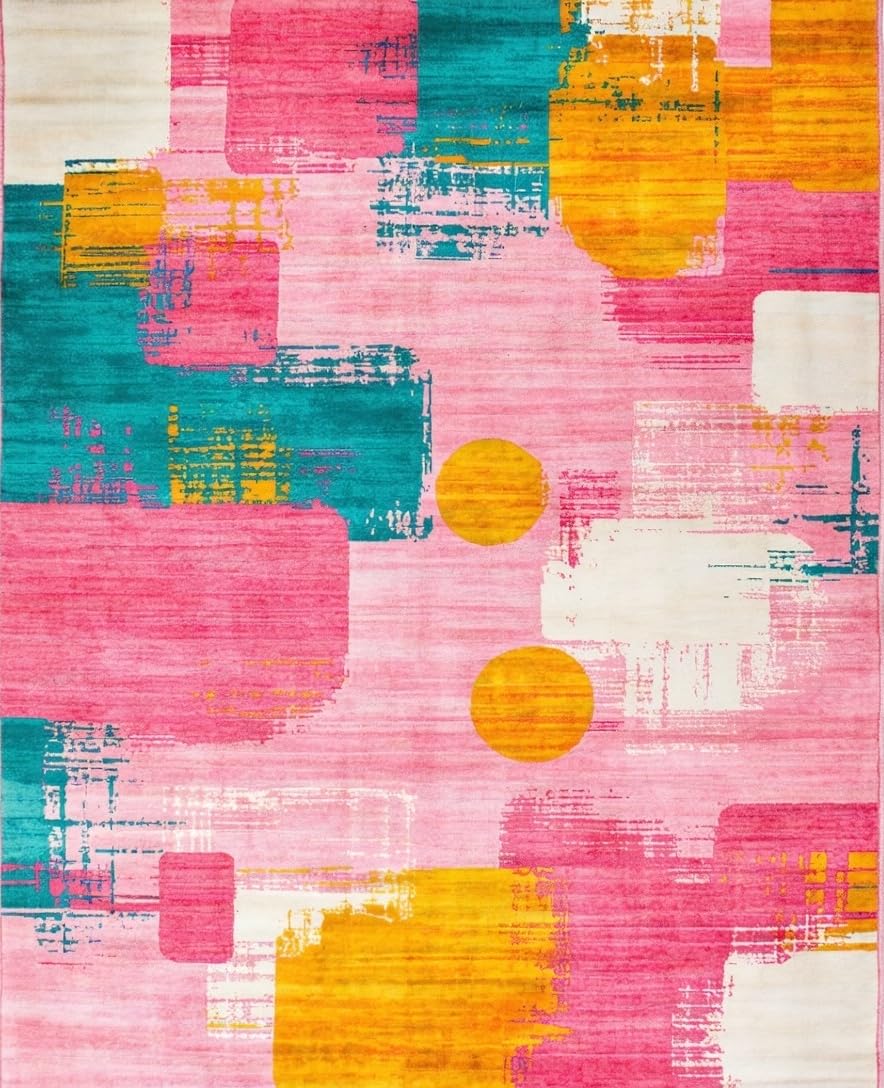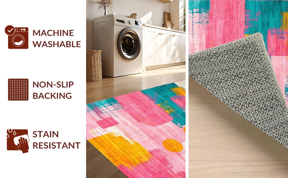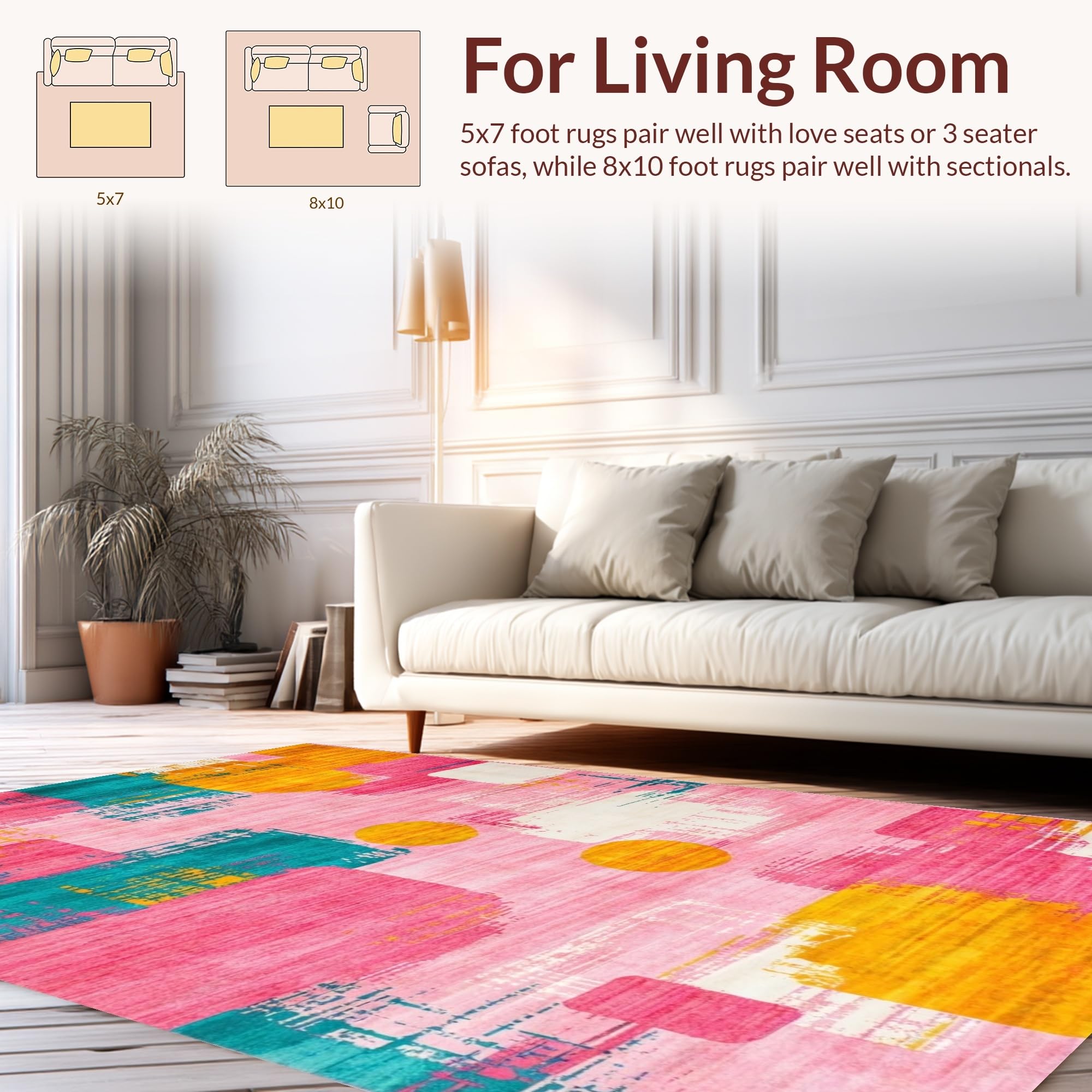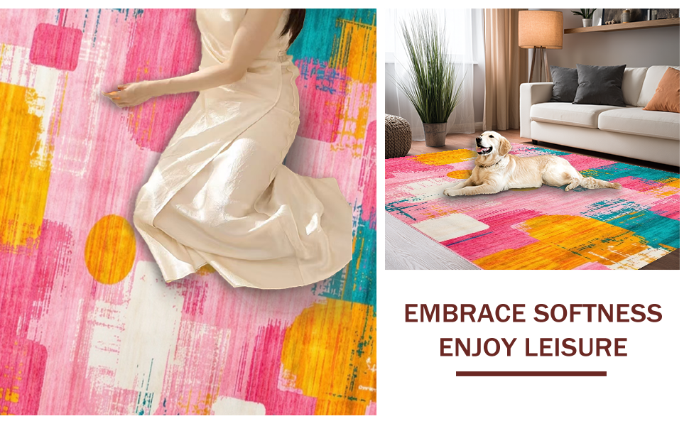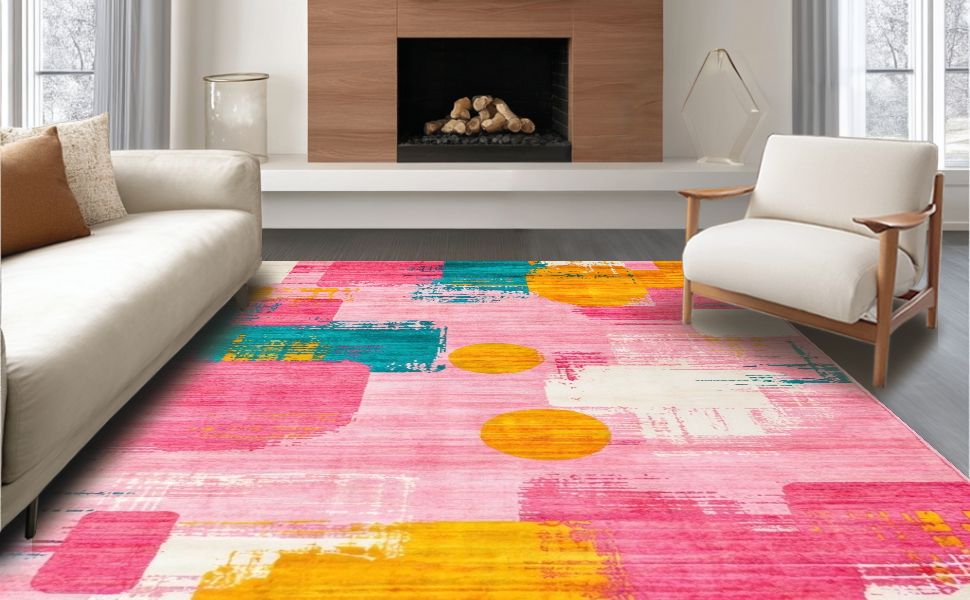Ultra Soft Area Rug, Non Slip, Stain Resistant, Washable Area Rugs for Living Room, Bedroom, Artful Fluid Color Composition(Pink) Overview:
