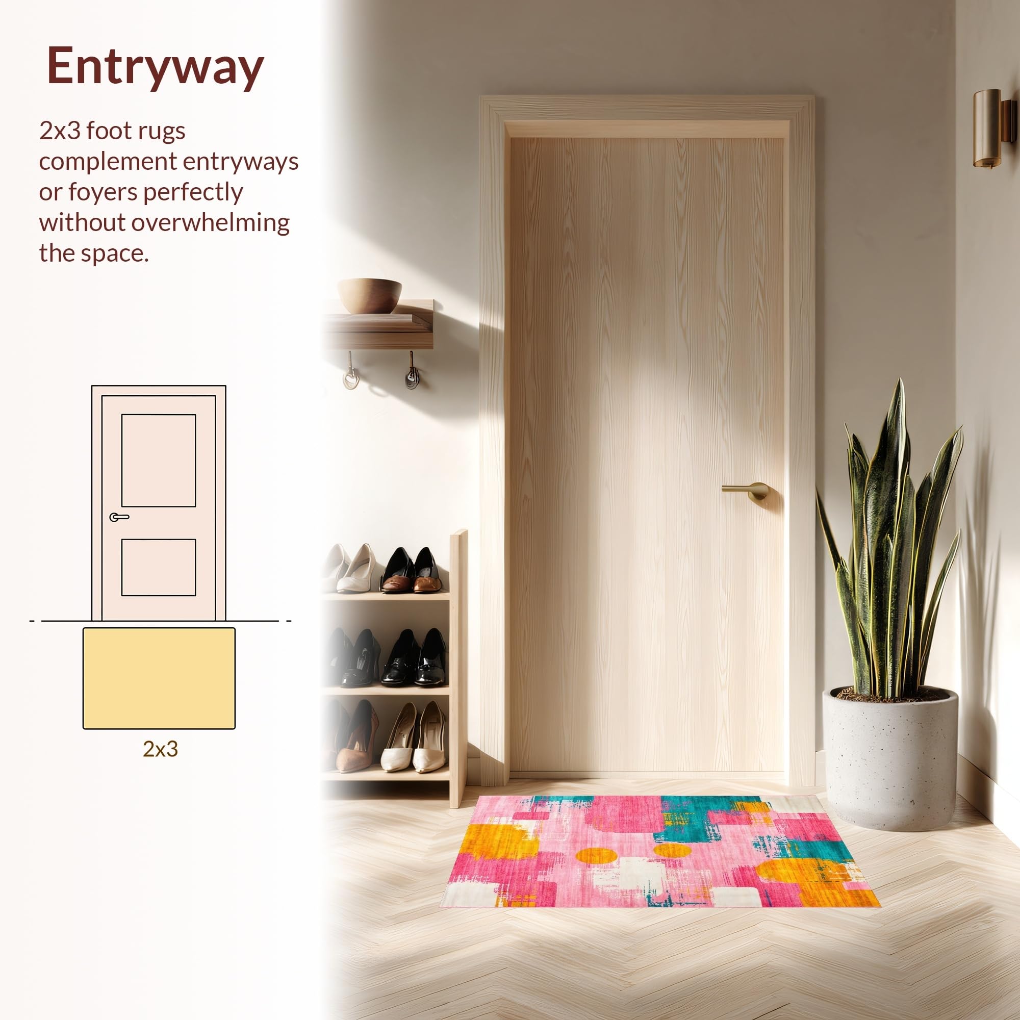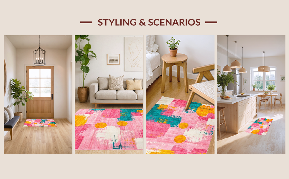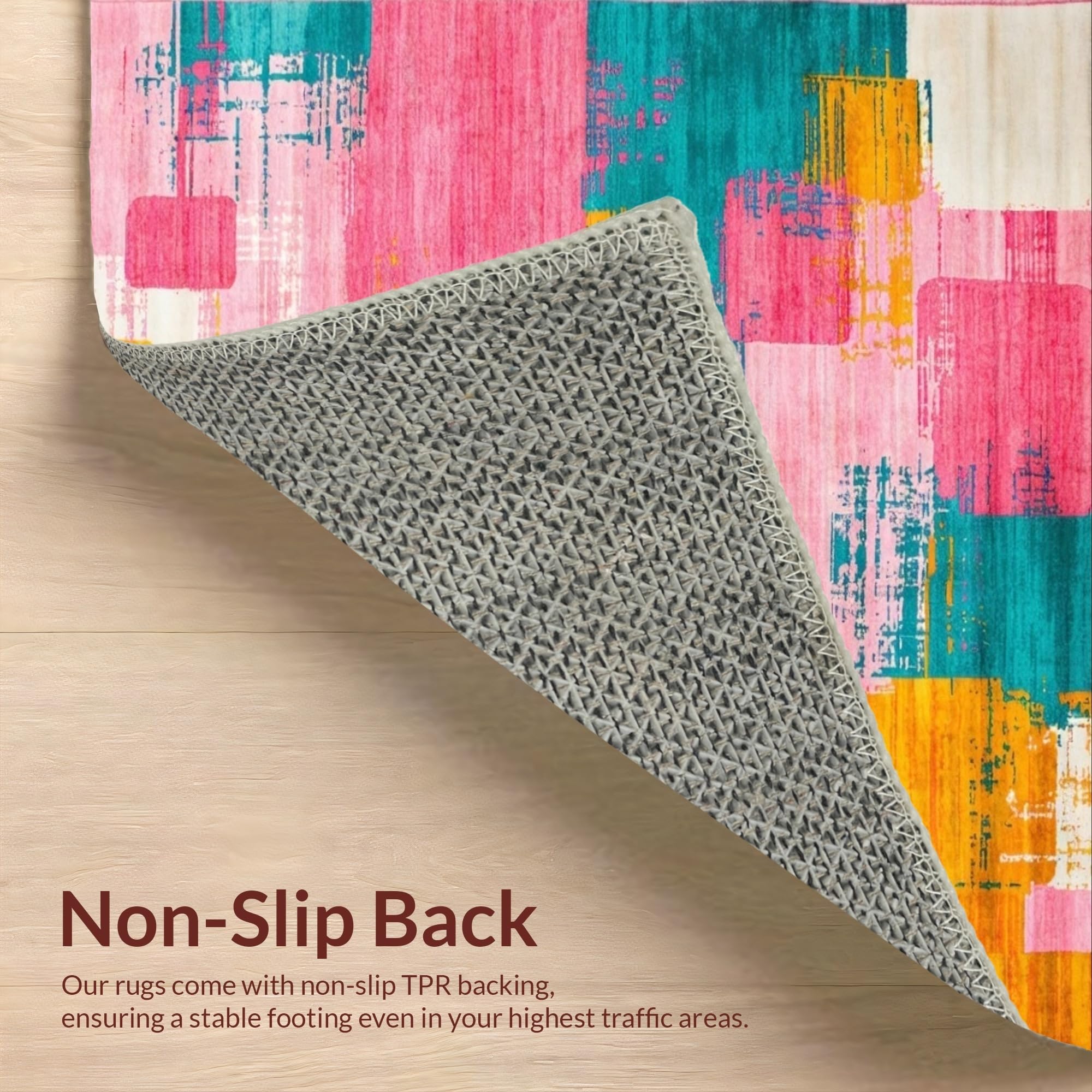 Ultra Soft Area Rug, Non Slip, Stain Resistant, Washable Area Rugs for Living Room, Bedroom, Artful Fluid Color Composition(Pink) Overview: