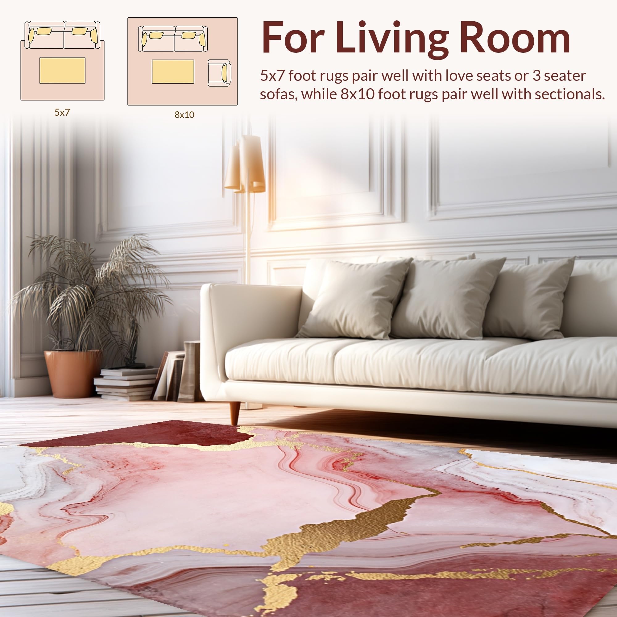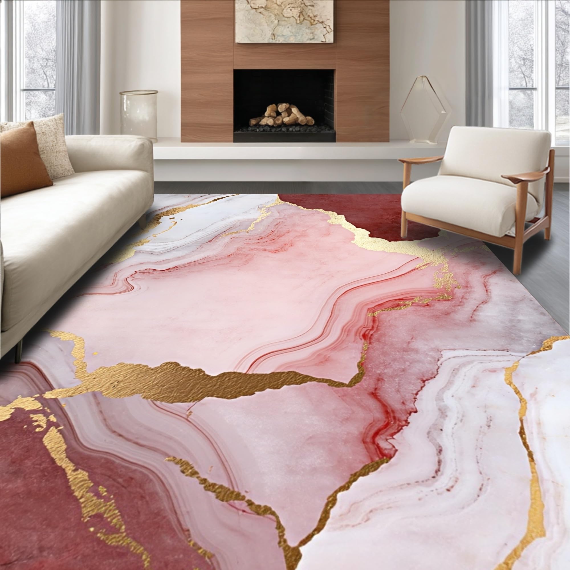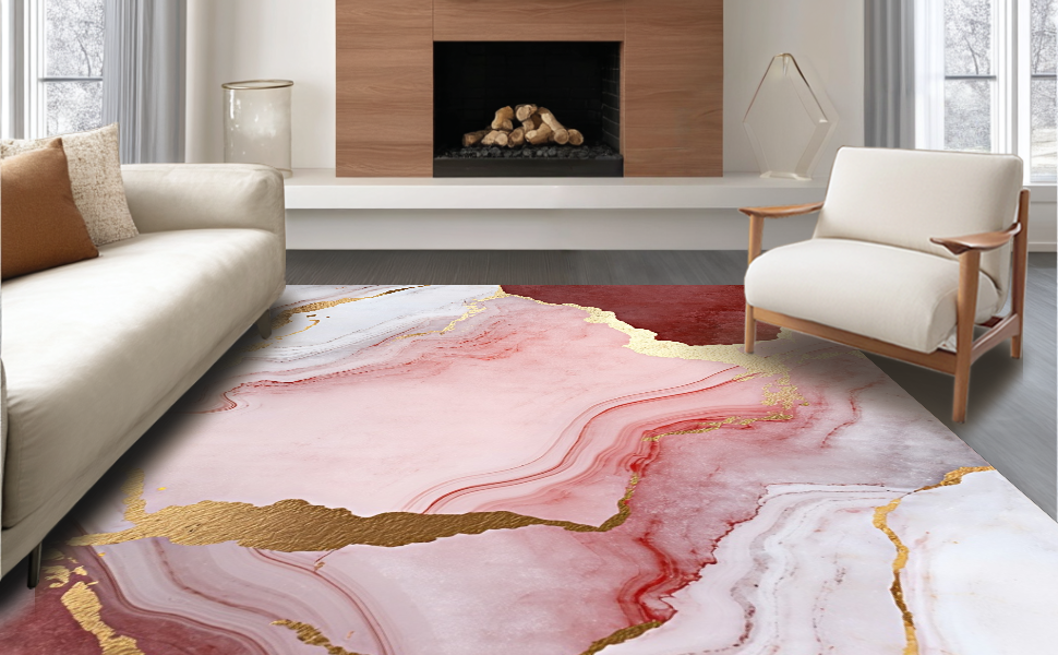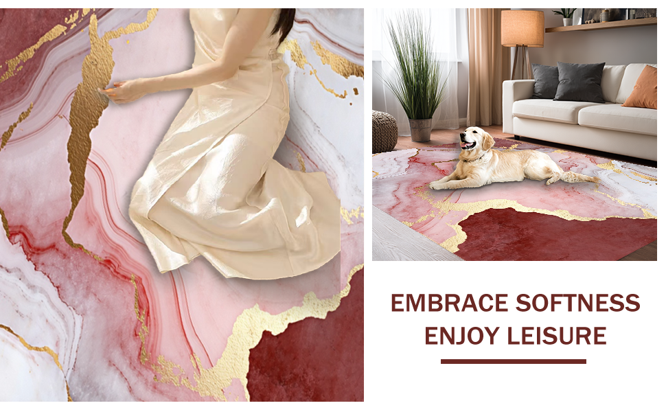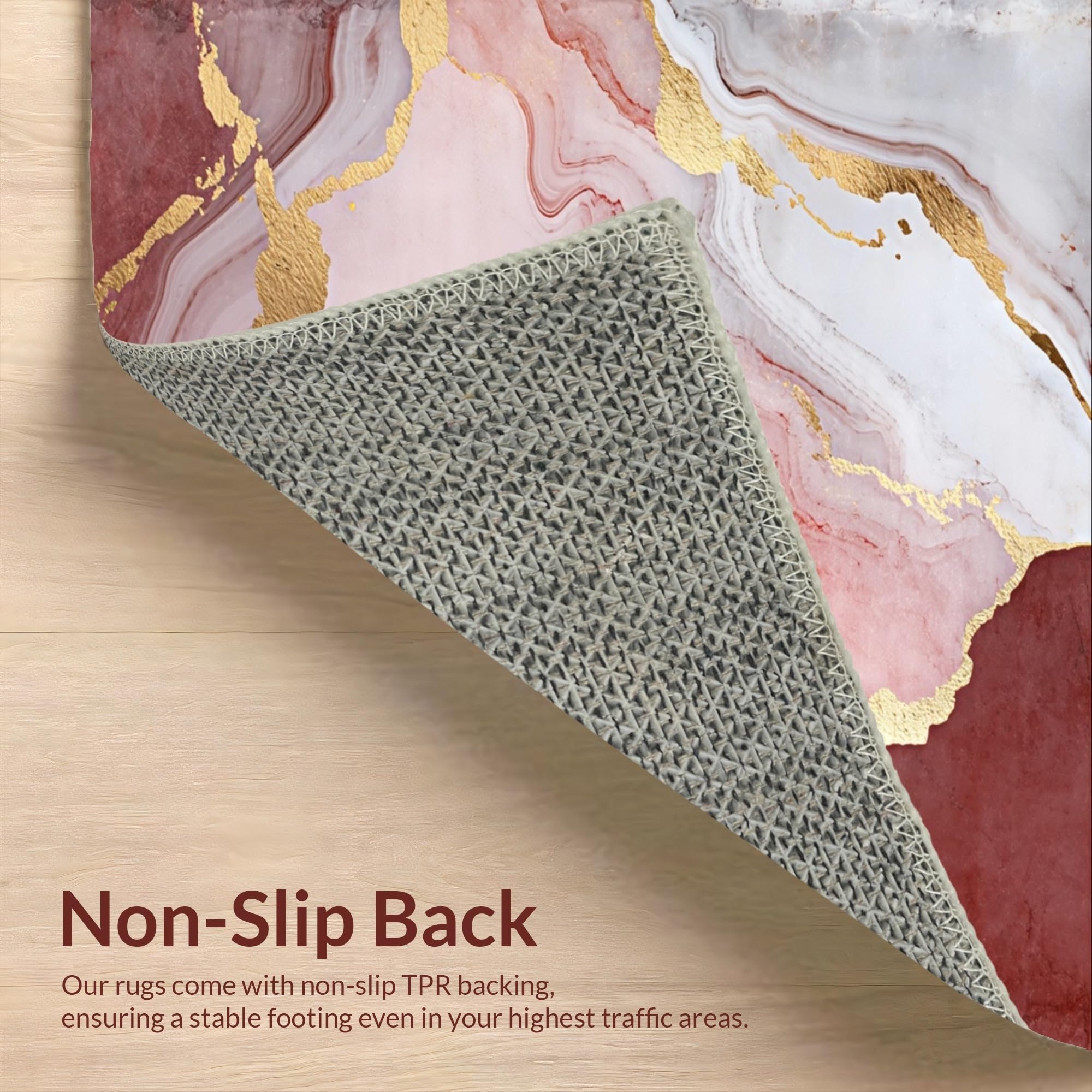 Ultra Soft Area Rug, Non Slip, Stain Resistant, Washable Area Rugs for Living Room, Bedroom, Artful Fluid Patterns with Gold(Red) Overview: