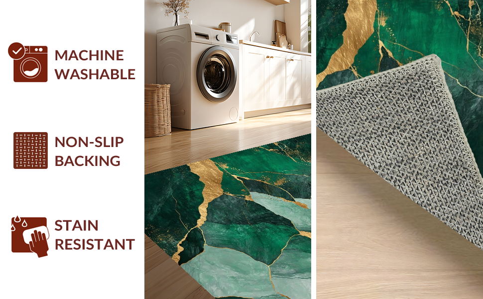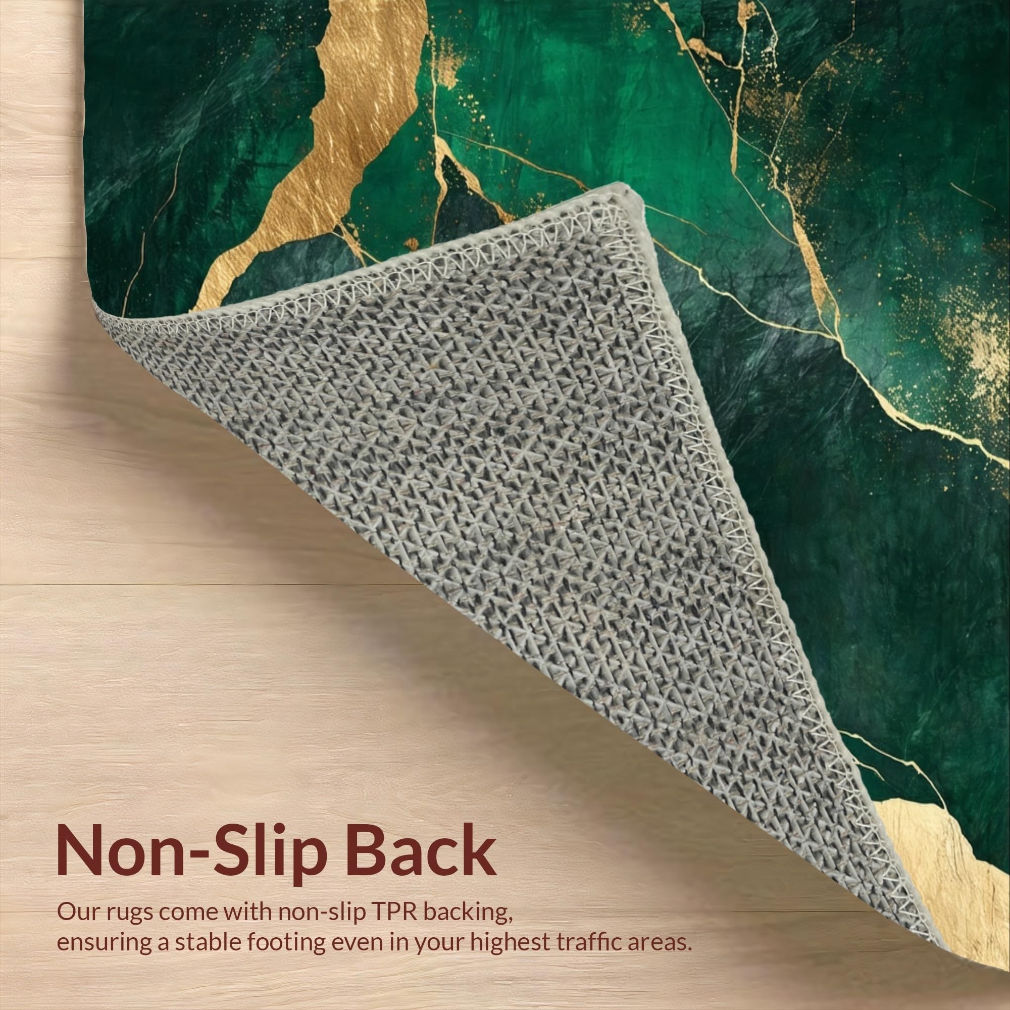 Ultra Soft Area Rug, Non Slip, Stain Resistant, Washable Area Rugs for Living Room, Bedroom, Artful Green and Gold Symmetry(Green) Overview:
