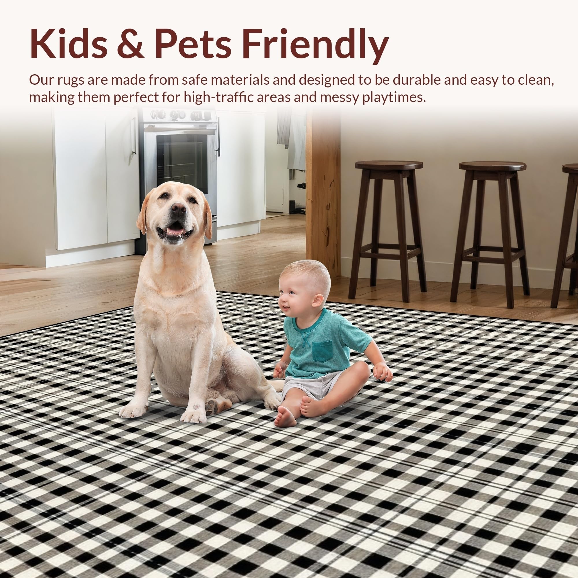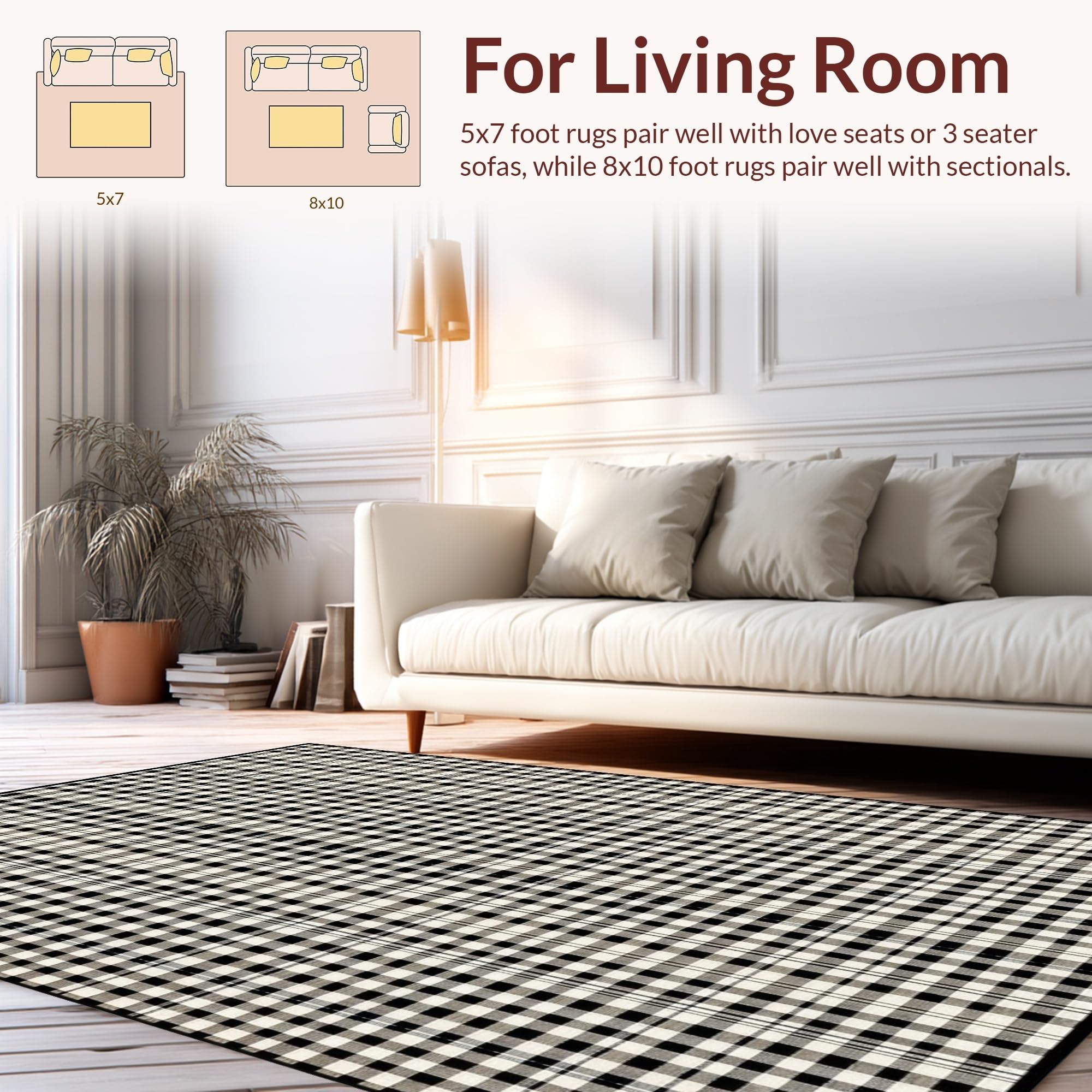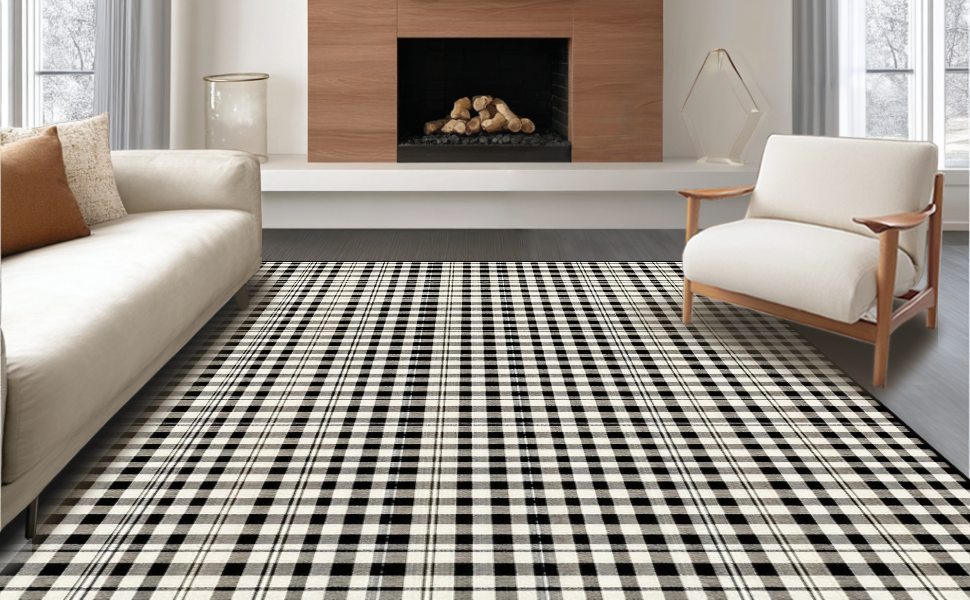 Ultra Soft Area Rug, Non Slip, Stain Resistant, Washable Area Rugs for Living Room, Bedroom, Artful Handwoven Stripe Aesthetic(Black) Overview: