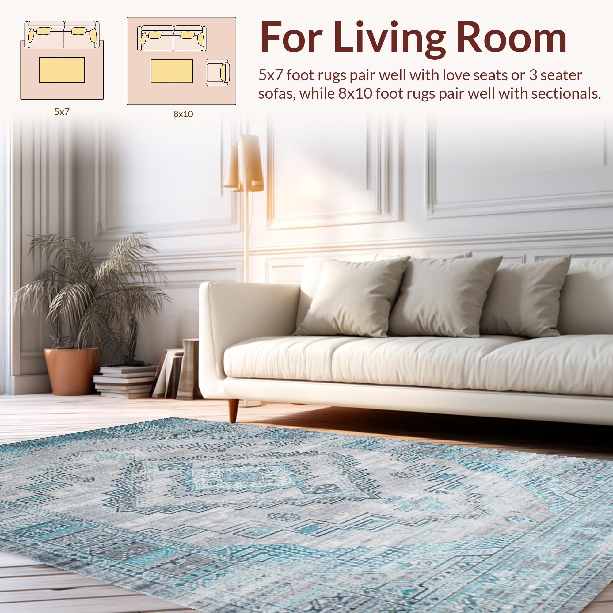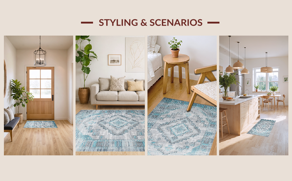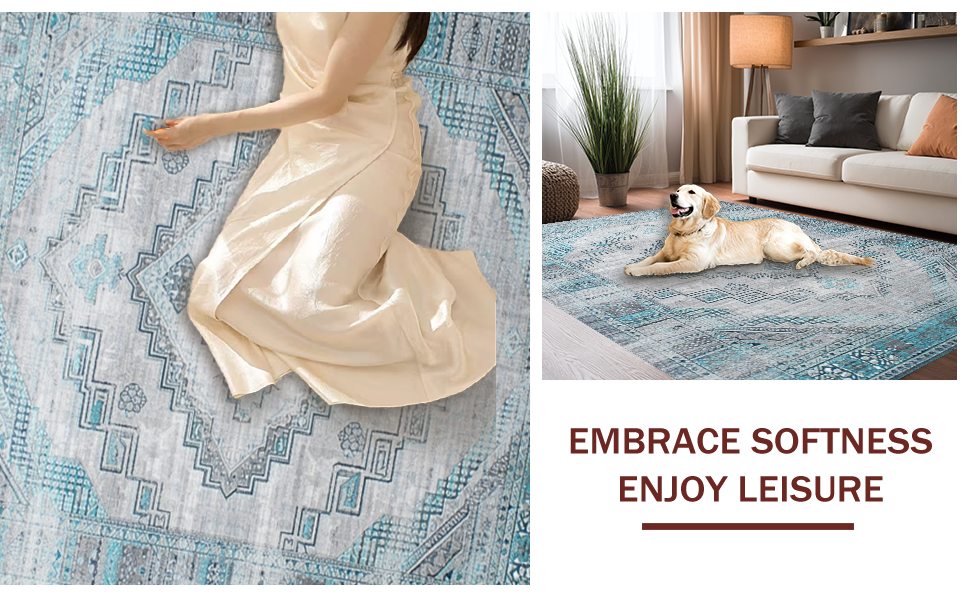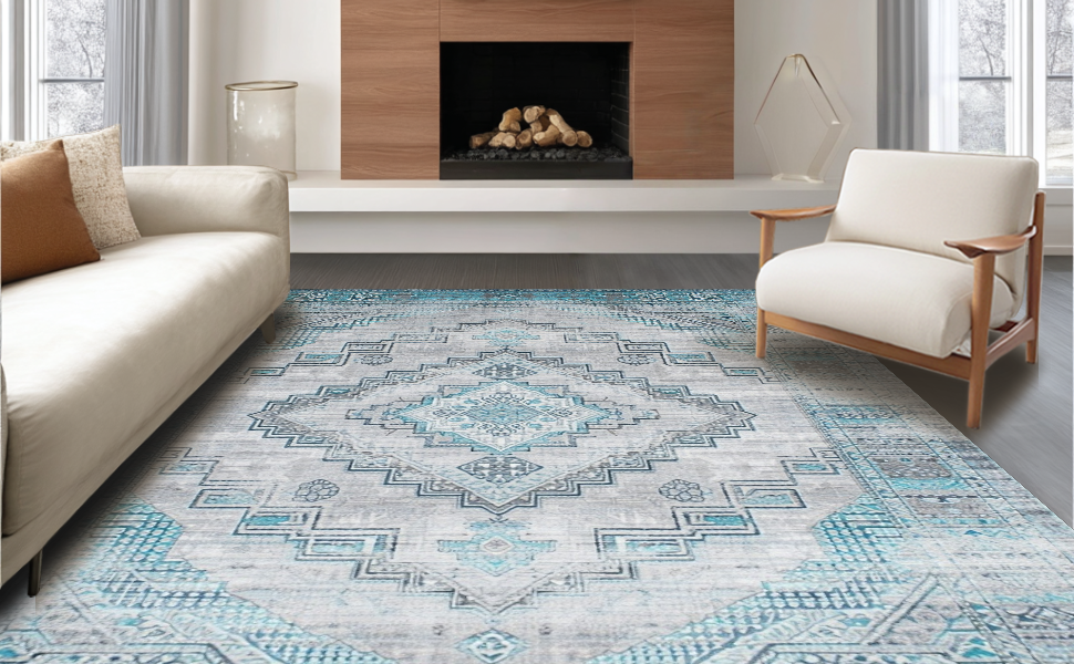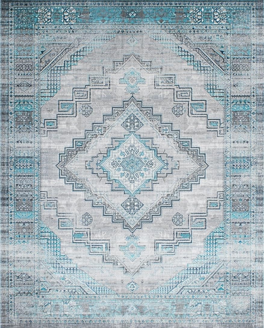 Ultra Soft Area Rug, Non Slip, Stain Resistant, Washable Area Rugs for Living Room, Bedroom, Artful Low-Pile Gray Vintage Charm(Gray) Overview: