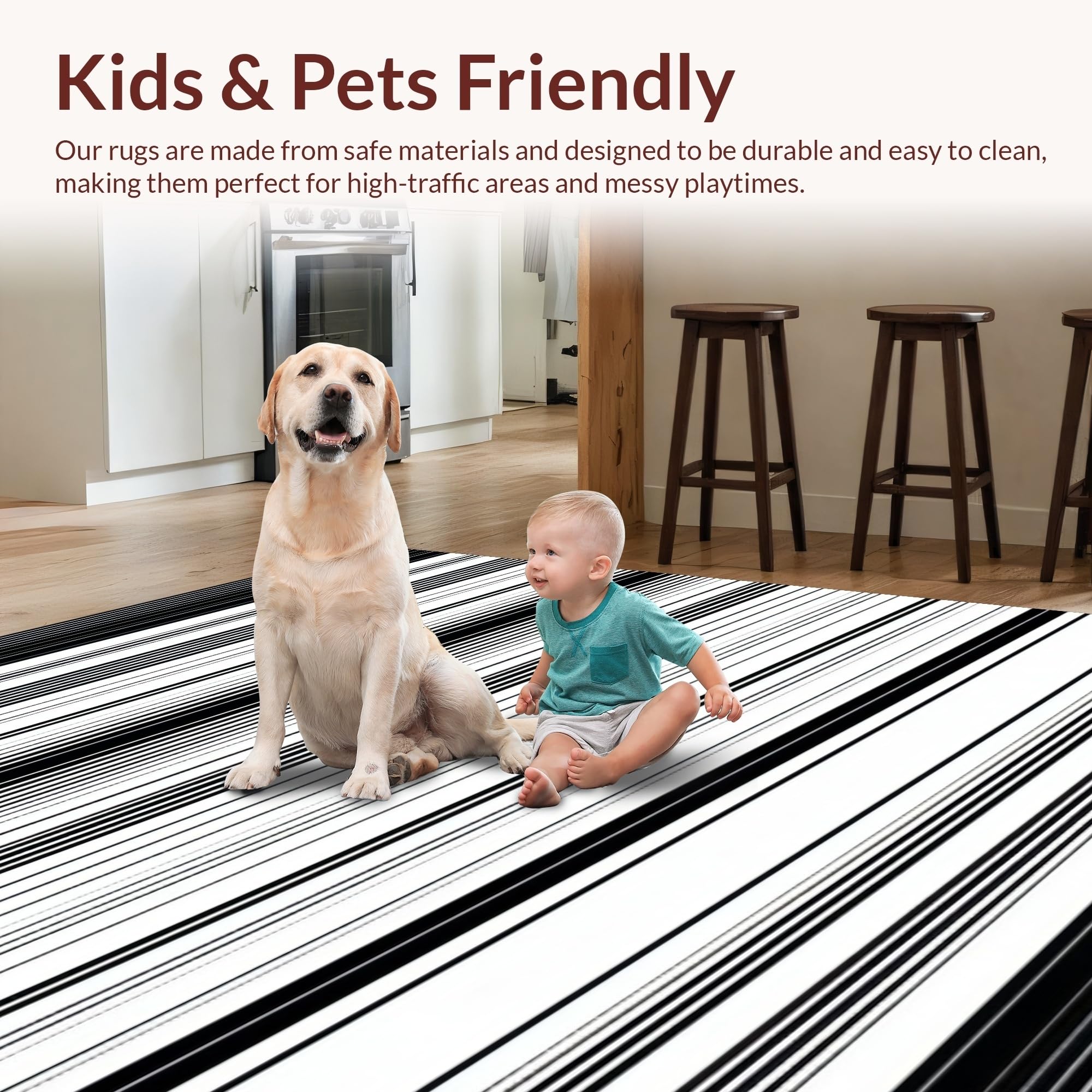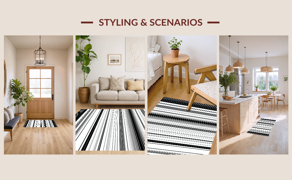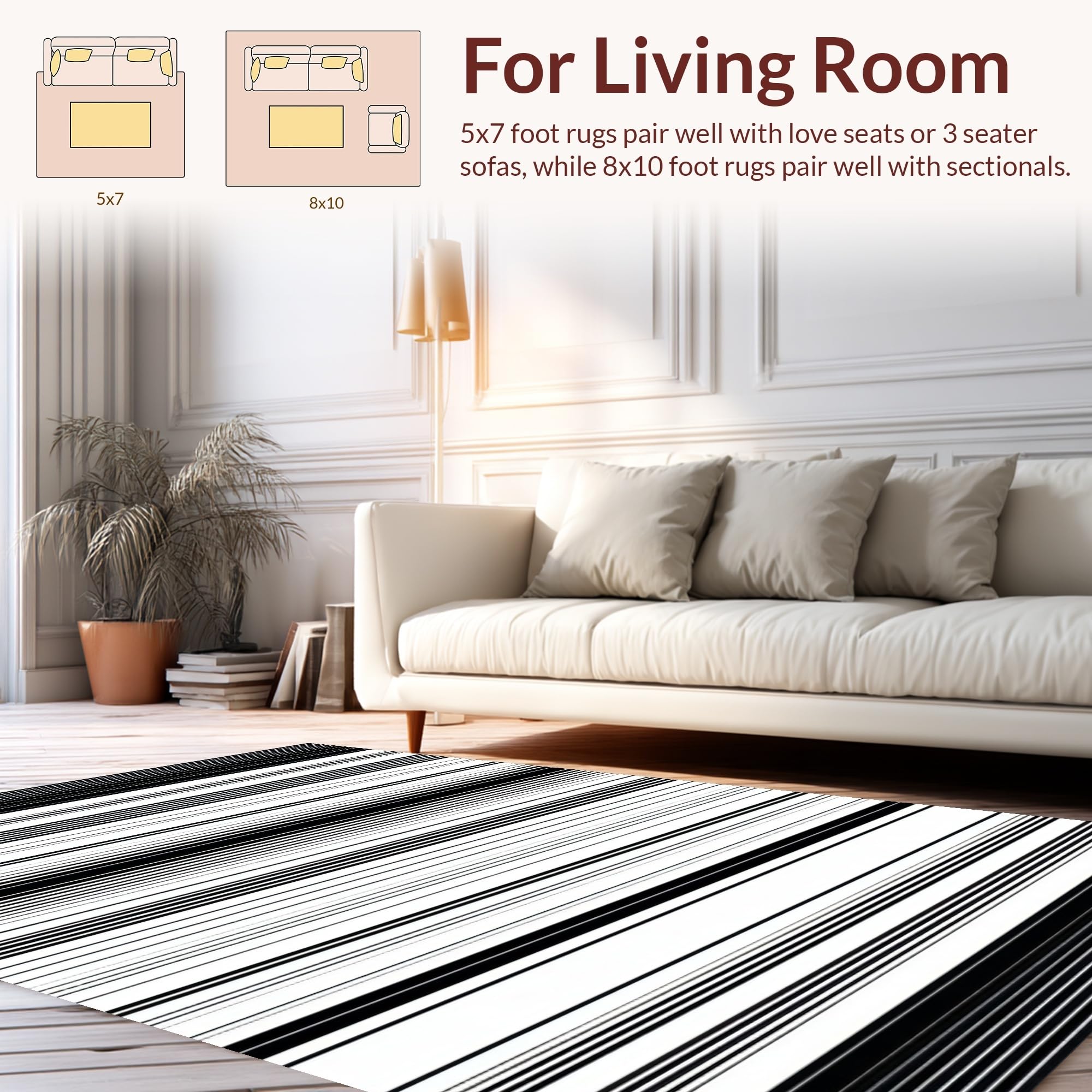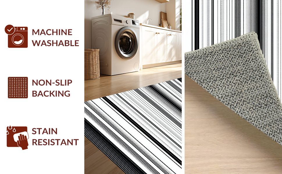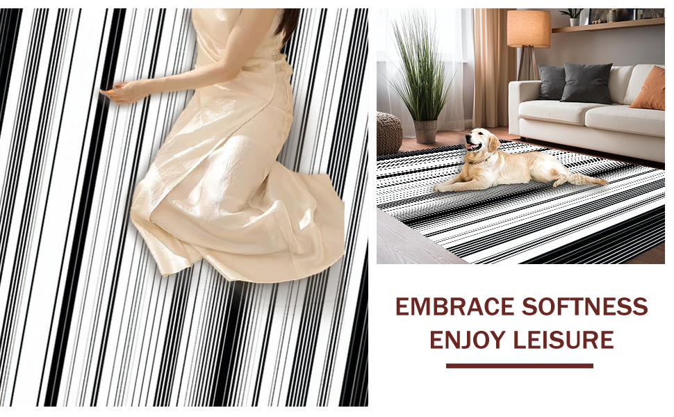 Ultra Soft Area Rug, Non Slip, Stain Resistant, Washable Area Rugs for Living Room, Bedroom, Artful Minimalist Black and White Harmony(Black) Overview: