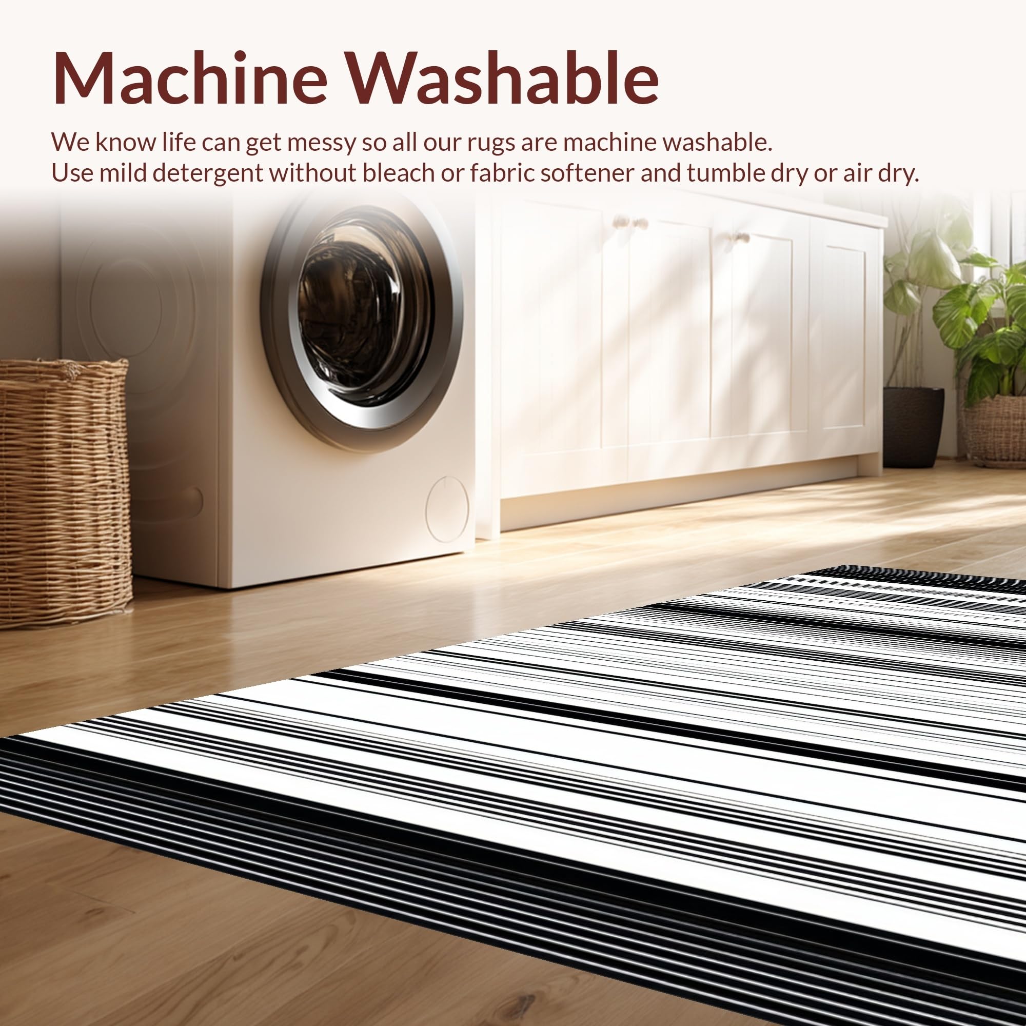 - Machine Washable: Our rugs can be easily thrown in the wash machine.