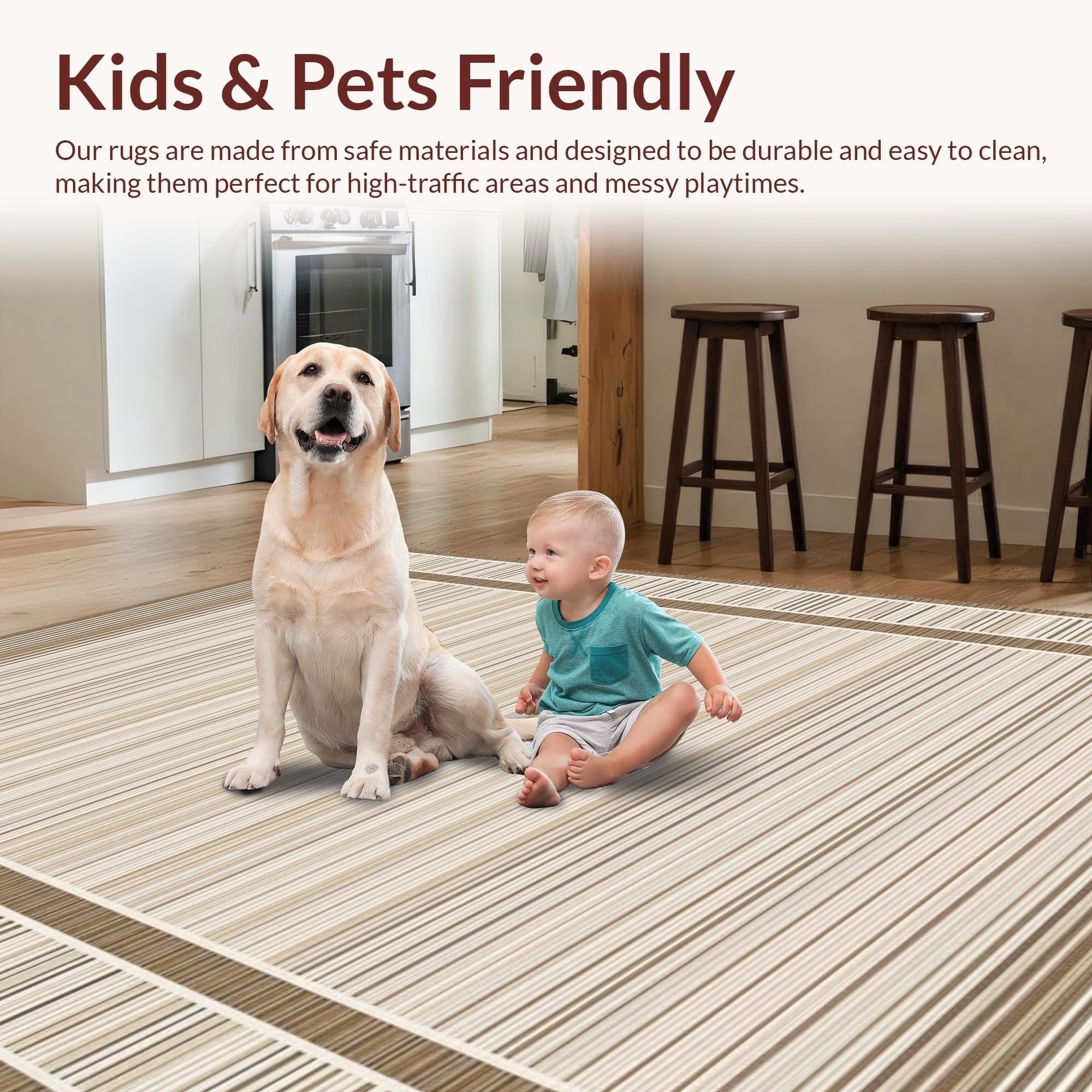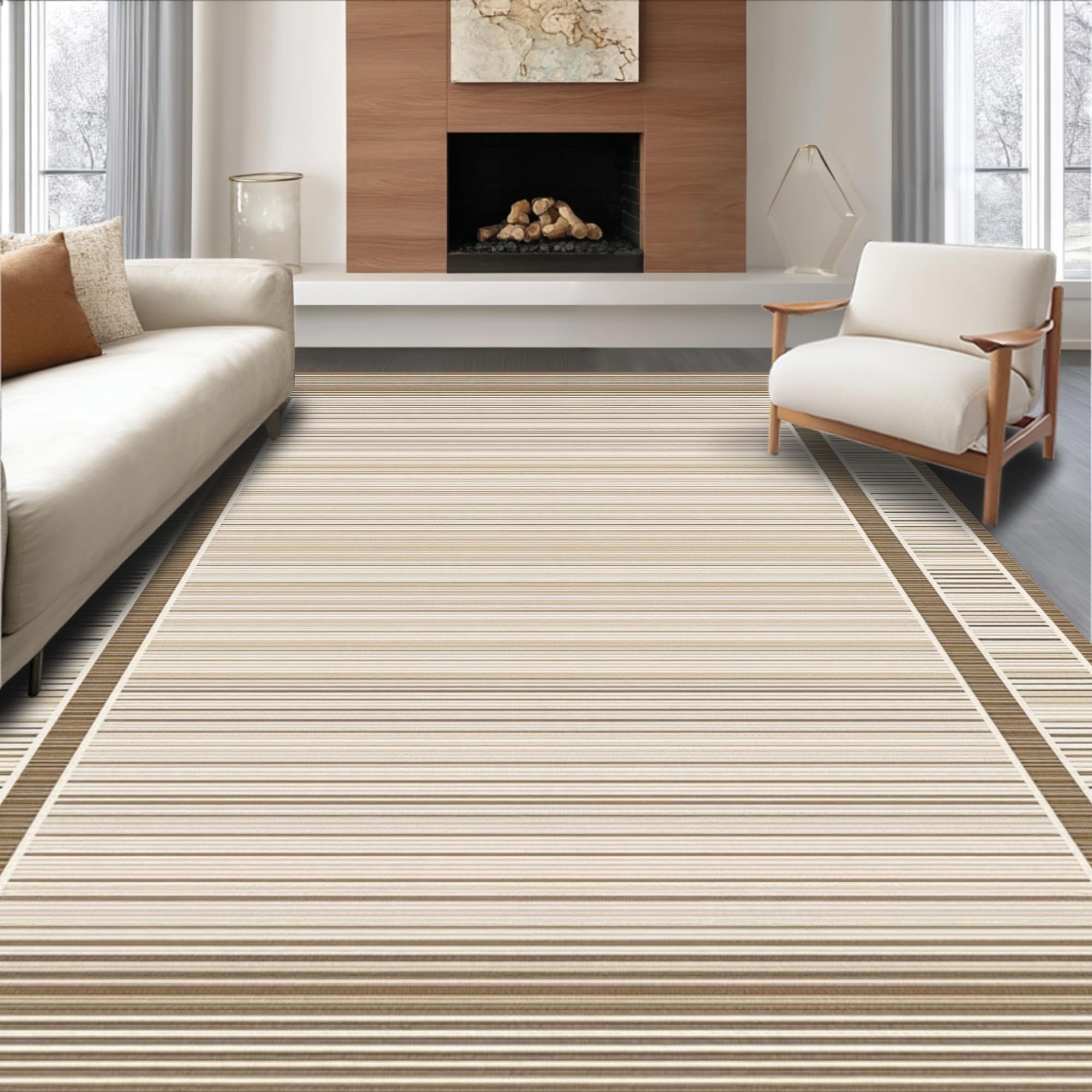 Ultra Soft Area Rug, Non Slip, Stain Resistant, Washable Area Rugs for Living Room, Bedroom, Artful Modern Circular Arrangement(Beige) Overview: