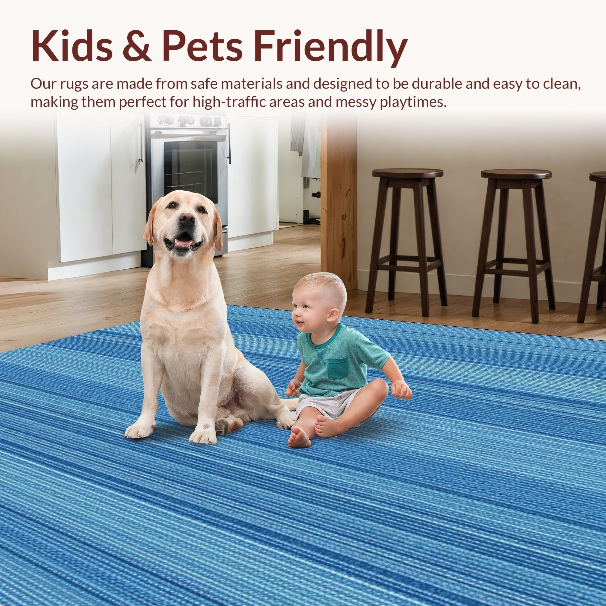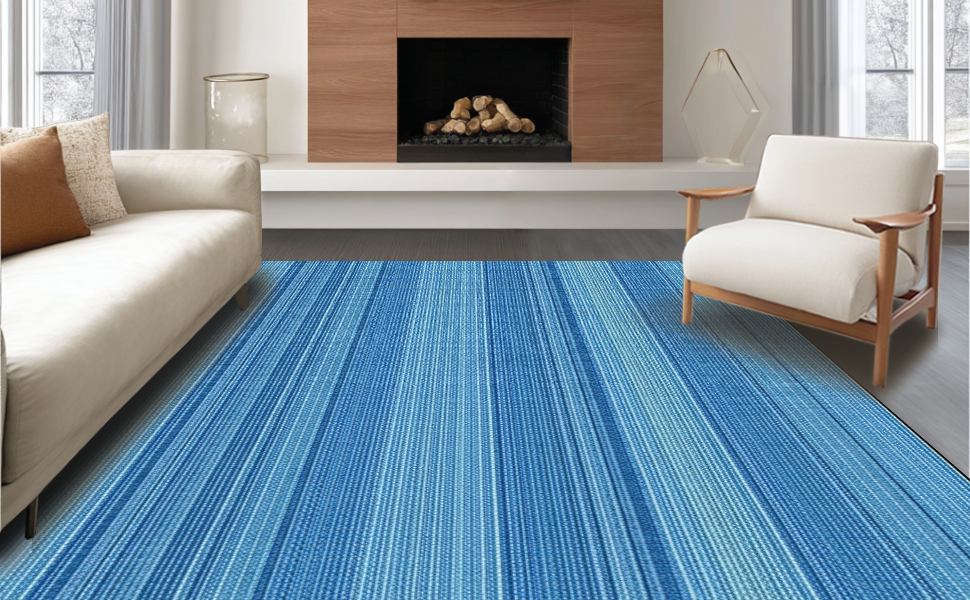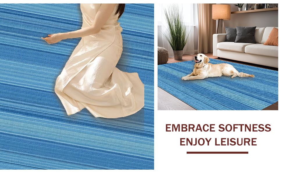 Ultra Soft Area Rug, Non Slip, Stain Resistant, Washable Area Rugs for Living Room, Bedroom, Artful Monochrome Geometric Arrangement(Blue) Overview: