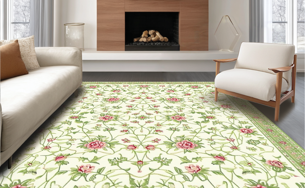 Ultra Soft Area Rug, Non Slip, Stain Resistant, Washable Area Rugs for Living Room, Bedroom, Artful Organic Pattern Fusion(Ivory) Overview: