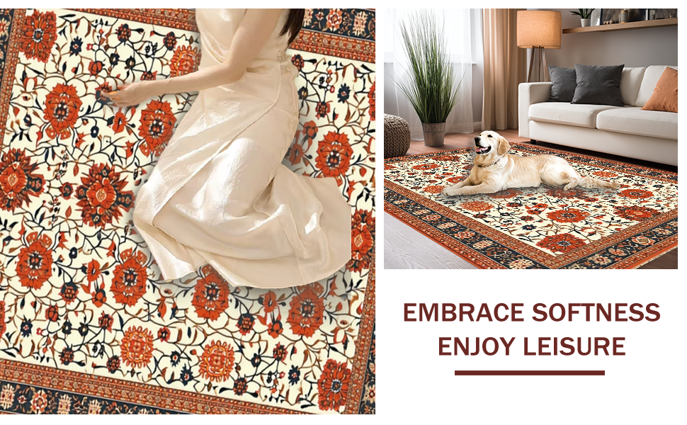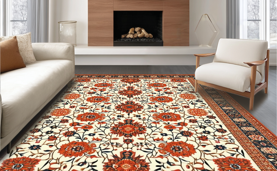Ultra Soft Area Rug, Non Slip, Stain Resistant, Washable Area Rugs for Living Room, Bedroom, Artful Retro Abstract Patterns(White) Overview: