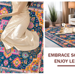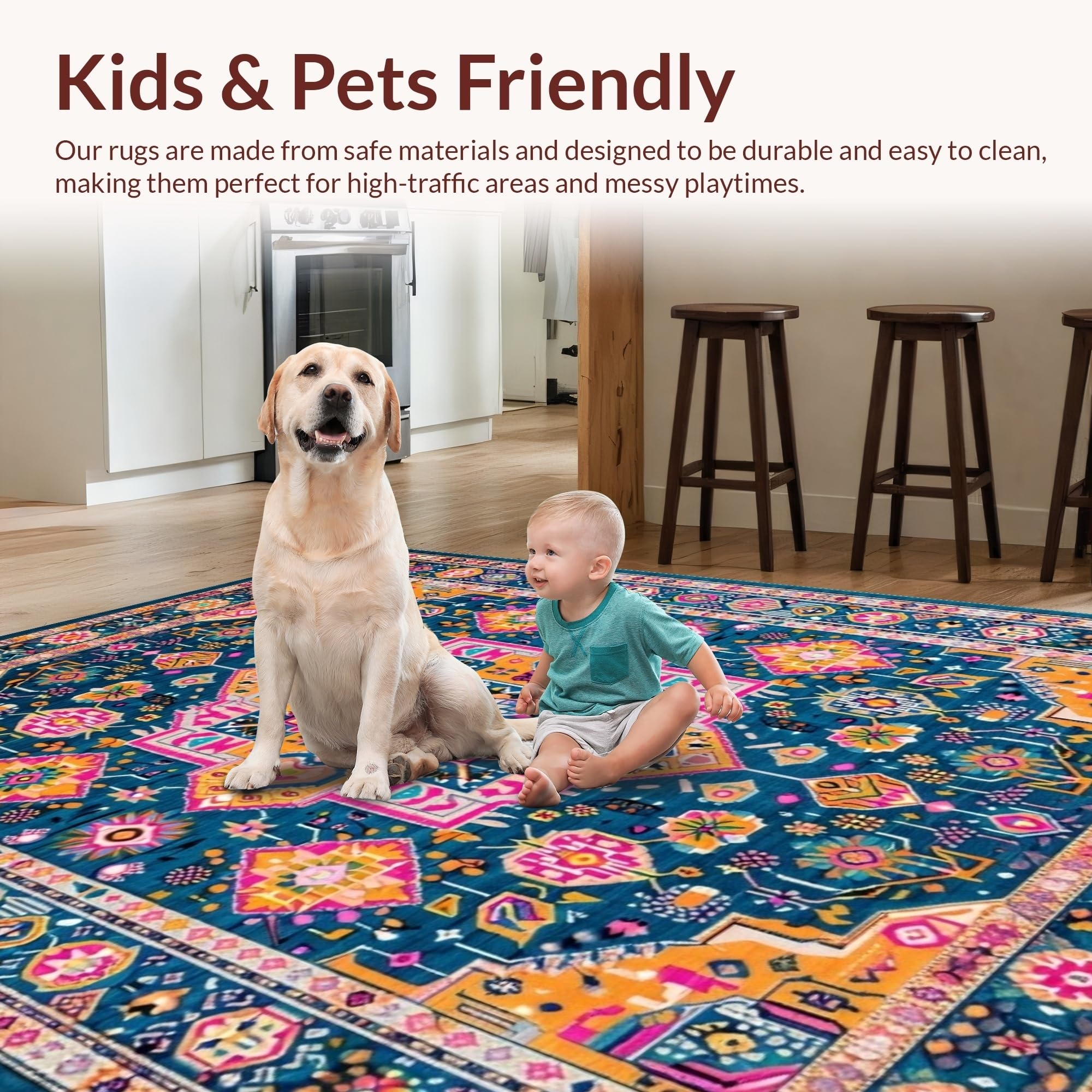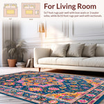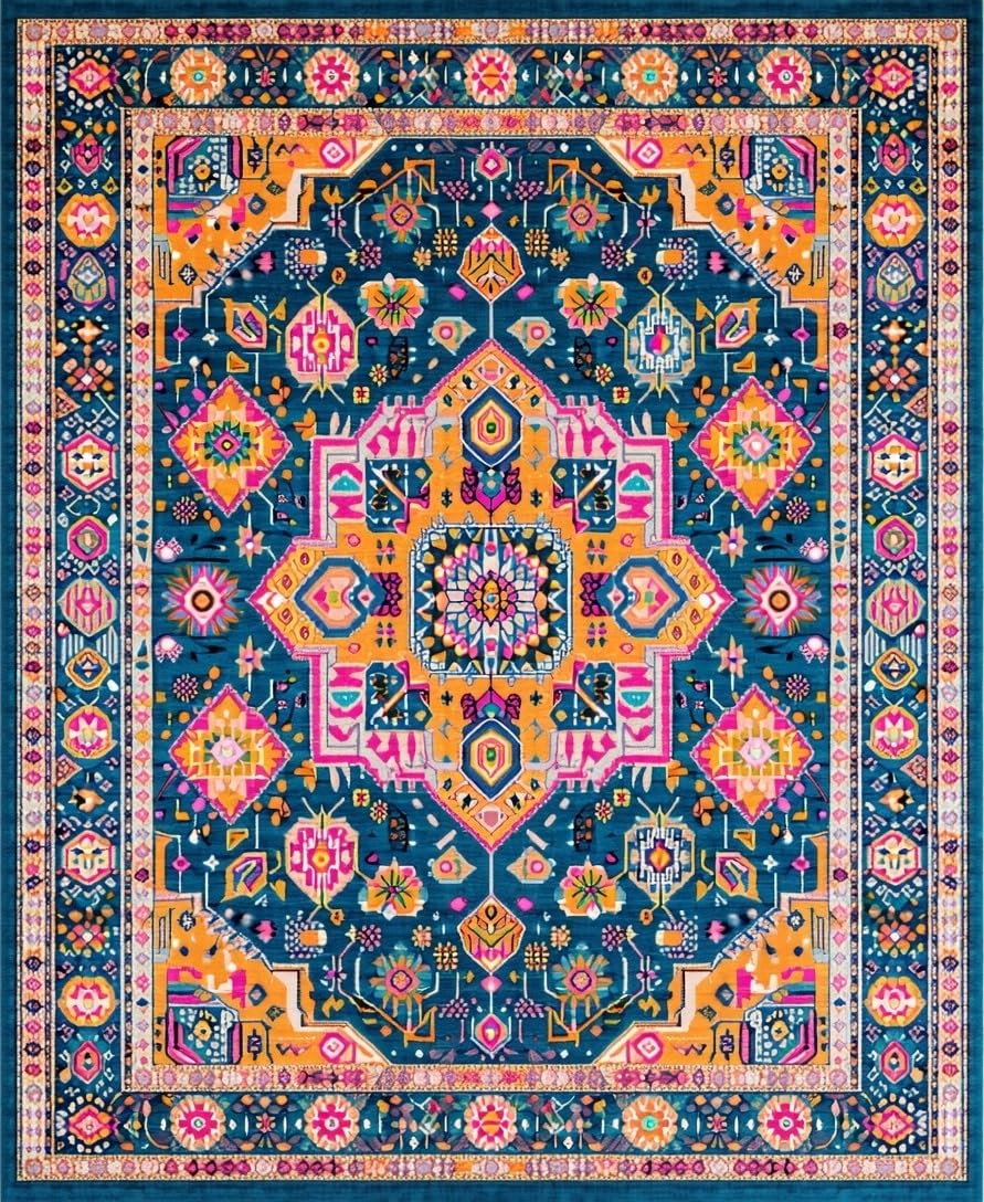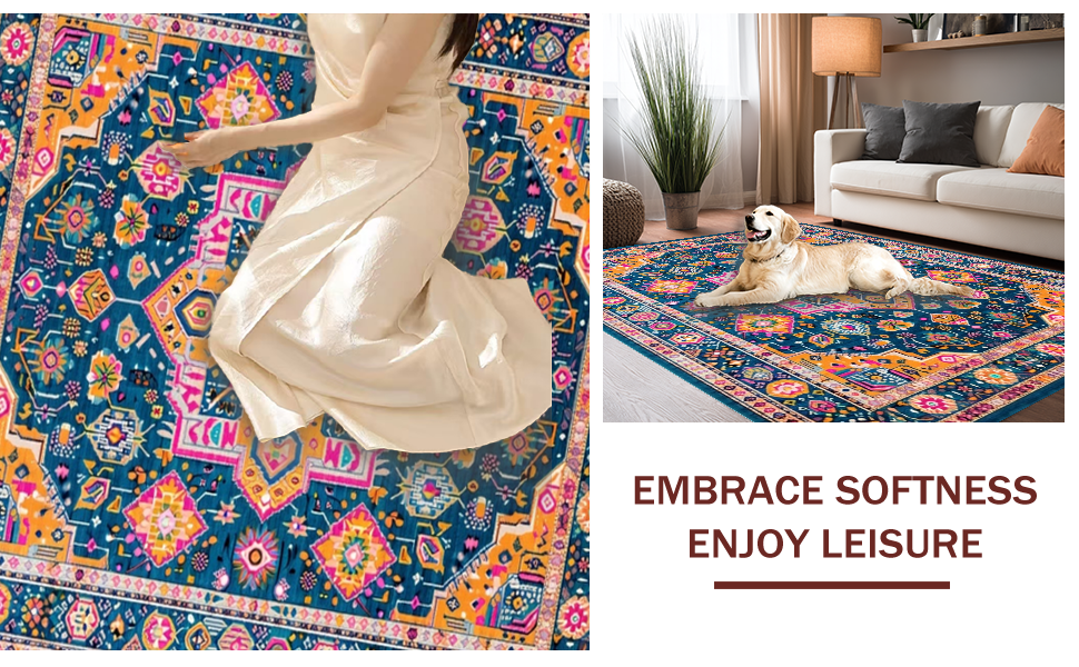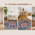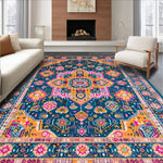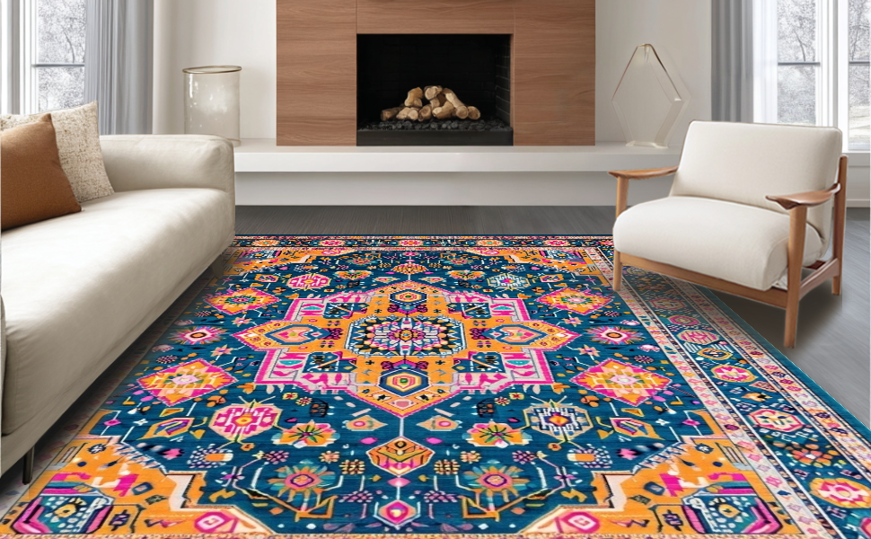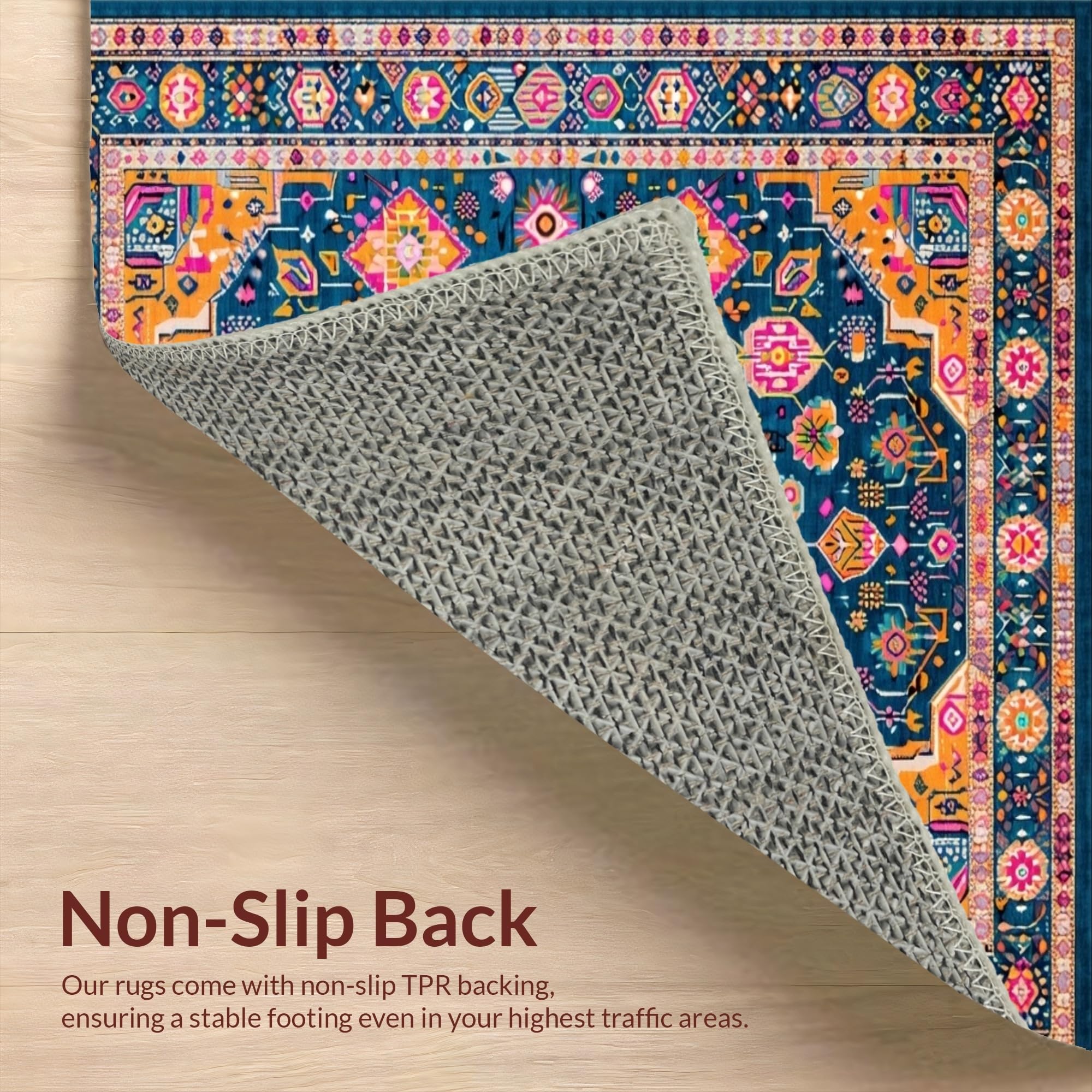 Ultra Soft Area Rug, Non Slip, Stain Resistant, Washable Area Rugs for Living Room, Bedroom, Artful Retro Circular Motif Display(Blue) Overview: