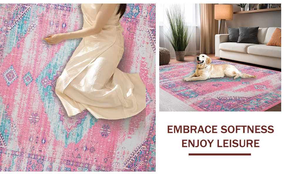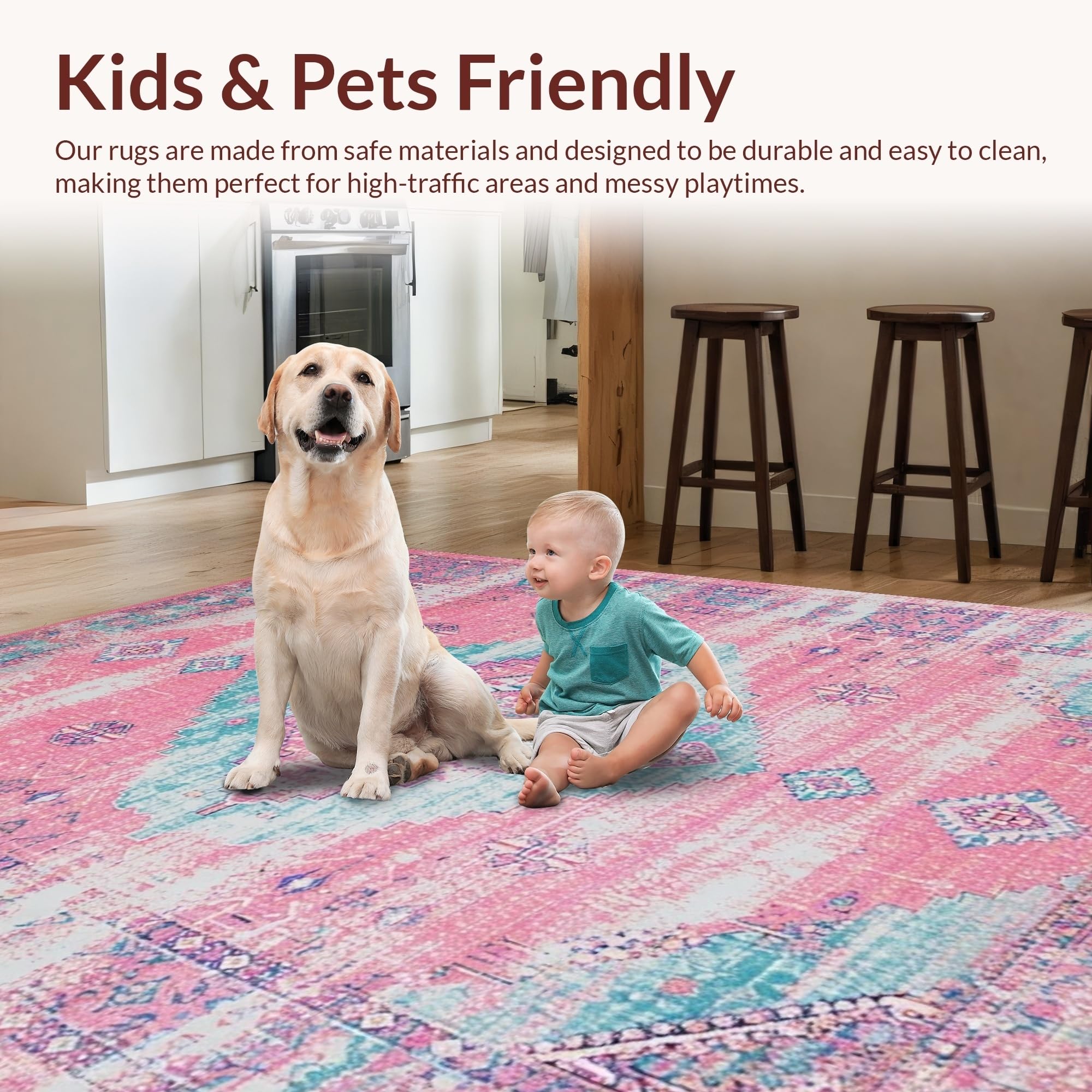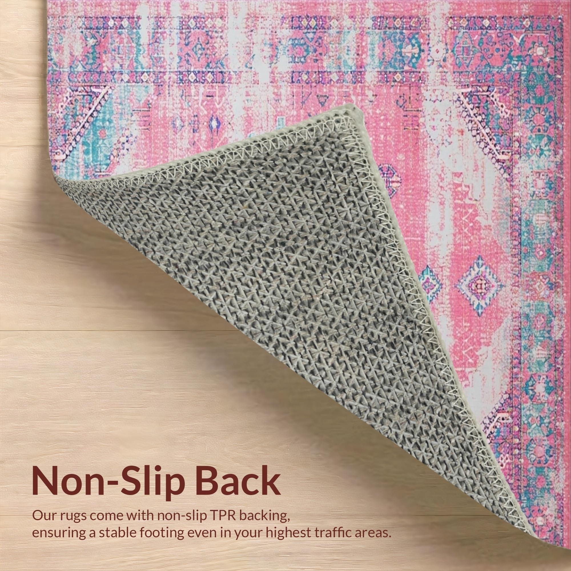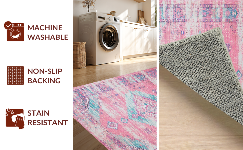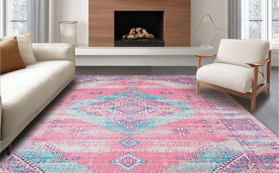 Ultra Soft Area Rug, Non Slip, Stain Resistant, Washable Area Rugs for Living Room, Bedroom, Artful Retro Hexagonal Layout(Pink) Overview:
