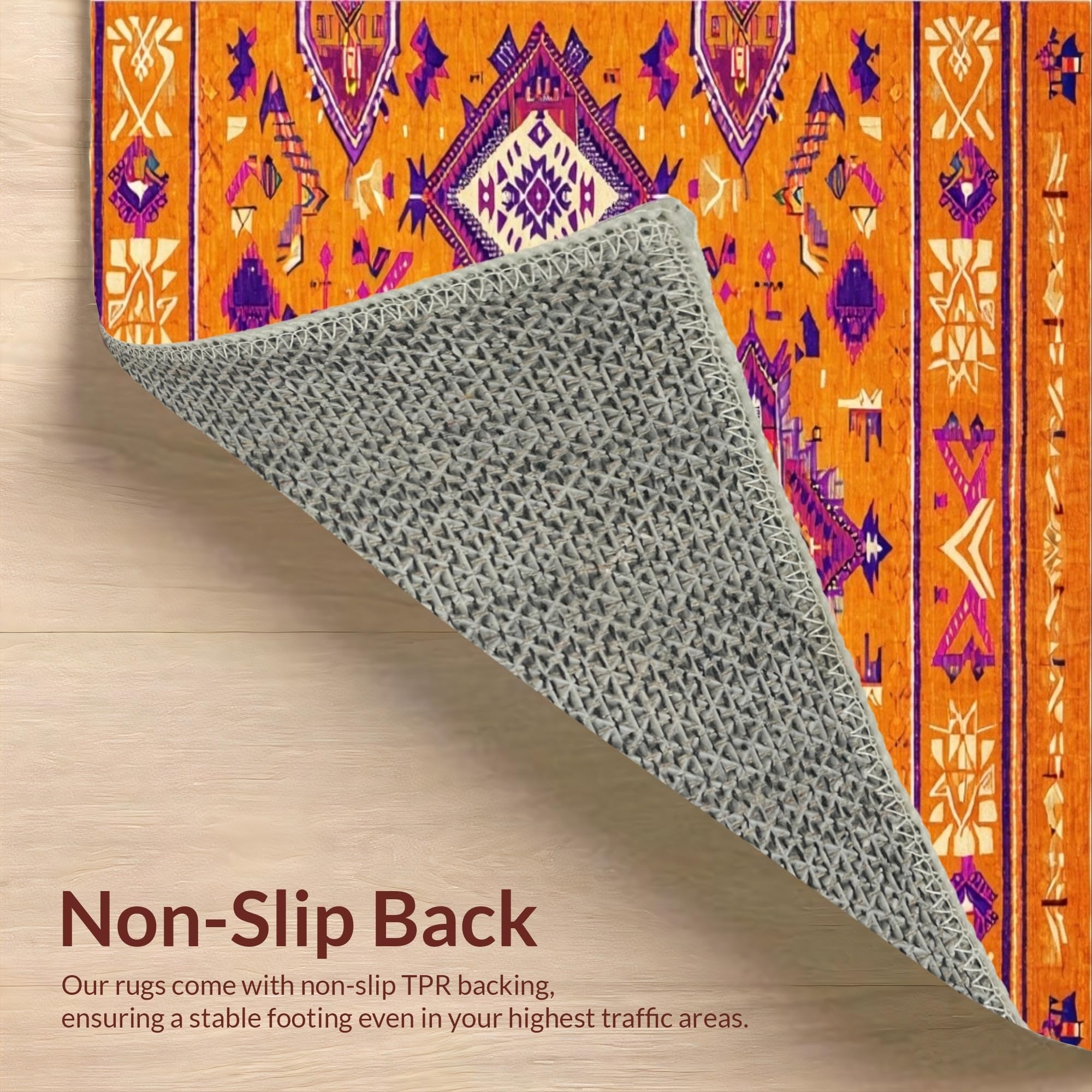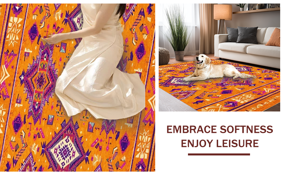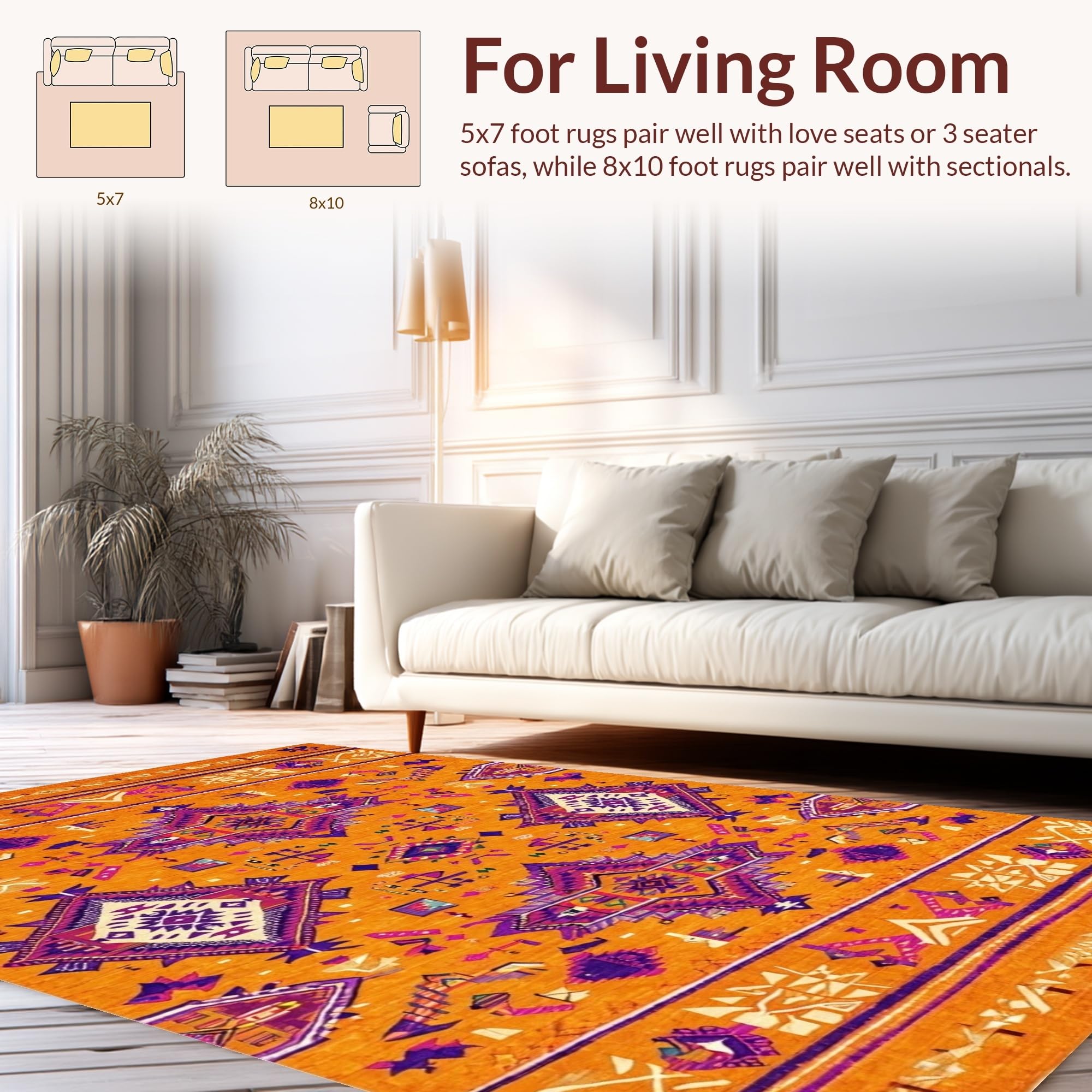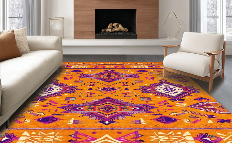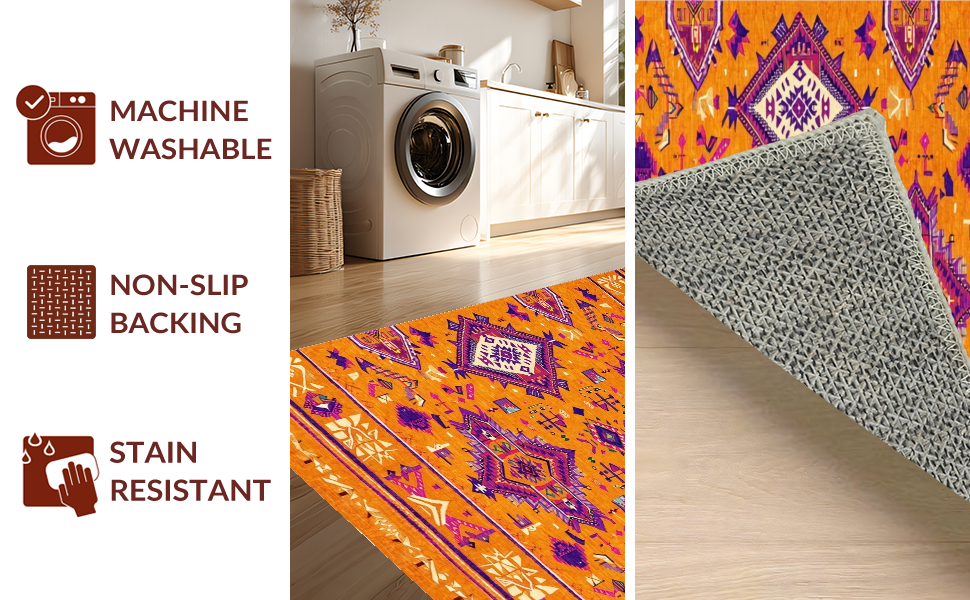 Ultra Soft Area Rug, Non Slip, Stain Resistant, Washable Area Rugs for Living Room, Bedroom, Artful Reversible Rustic Charm(Orange) Overview: