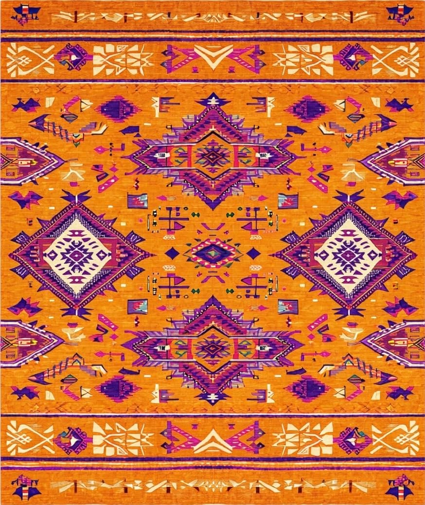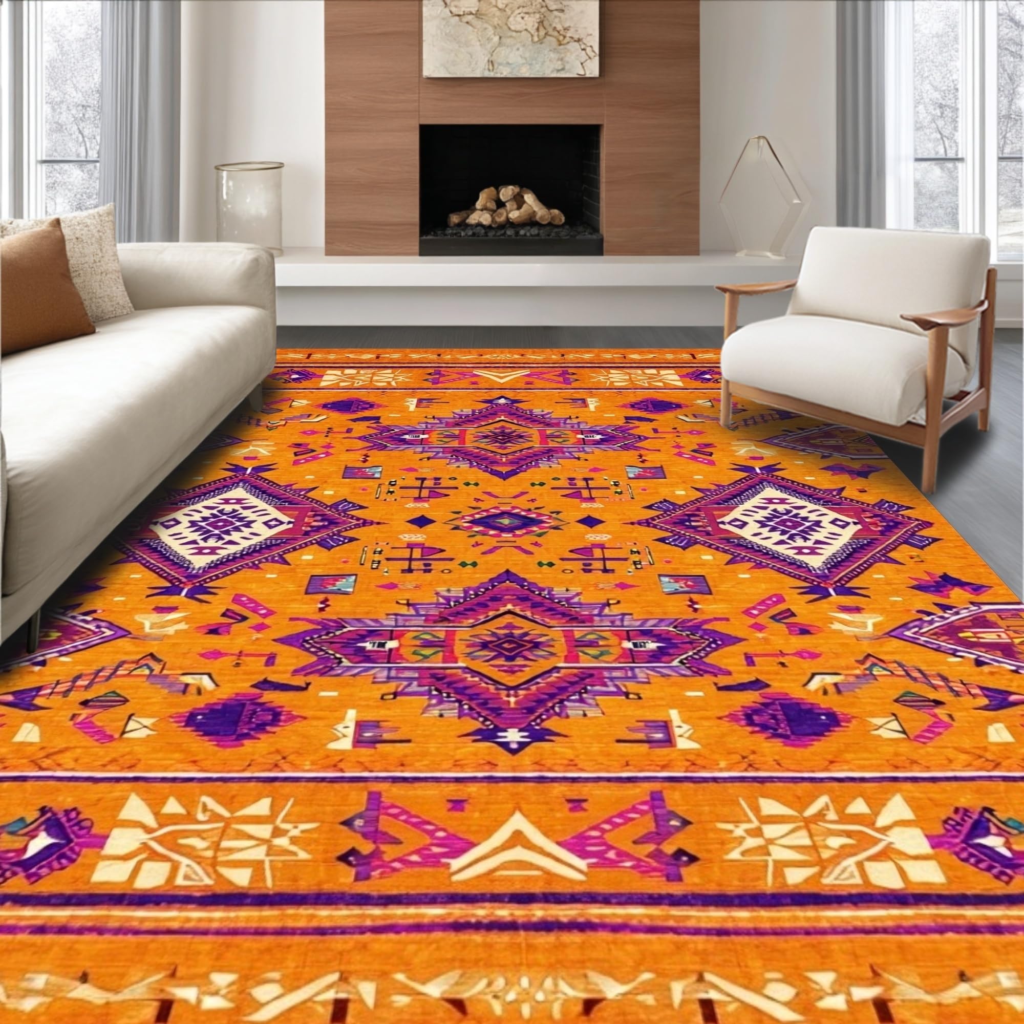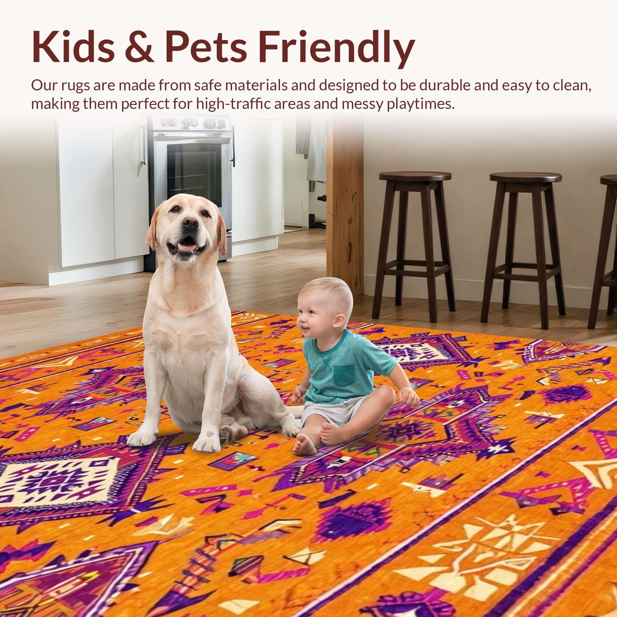 Ultra Soft Area Rug, Non Slip, Stain Resistant, Washable Area Rugs for Living Room, Bedroom, Artful Reversible Rustic Charm(Orange) Overview: