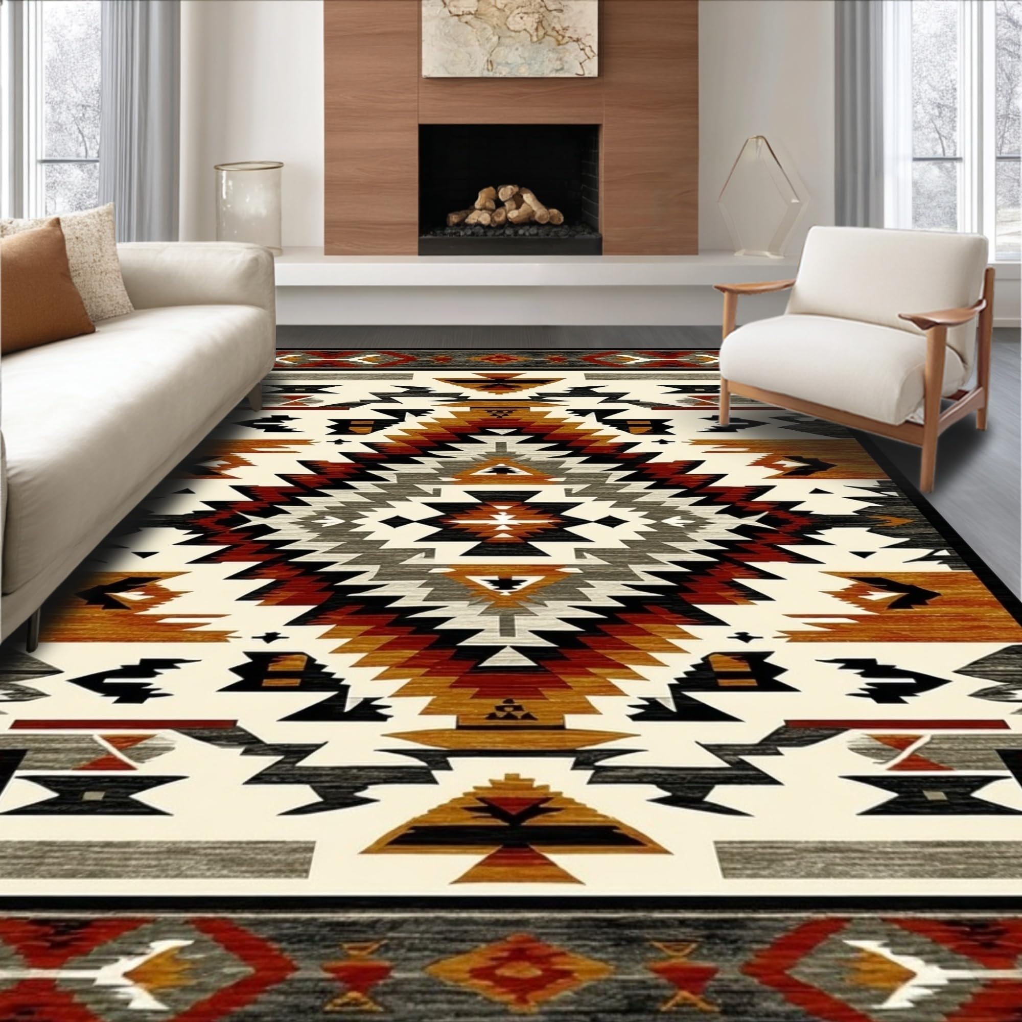 Ultra Soft Area Rug, Non Slip, Stain Resistant, Washable Area Rugs for Living Room, Bedroom, Artful Rustic Medallion Style(Brown) Overview: