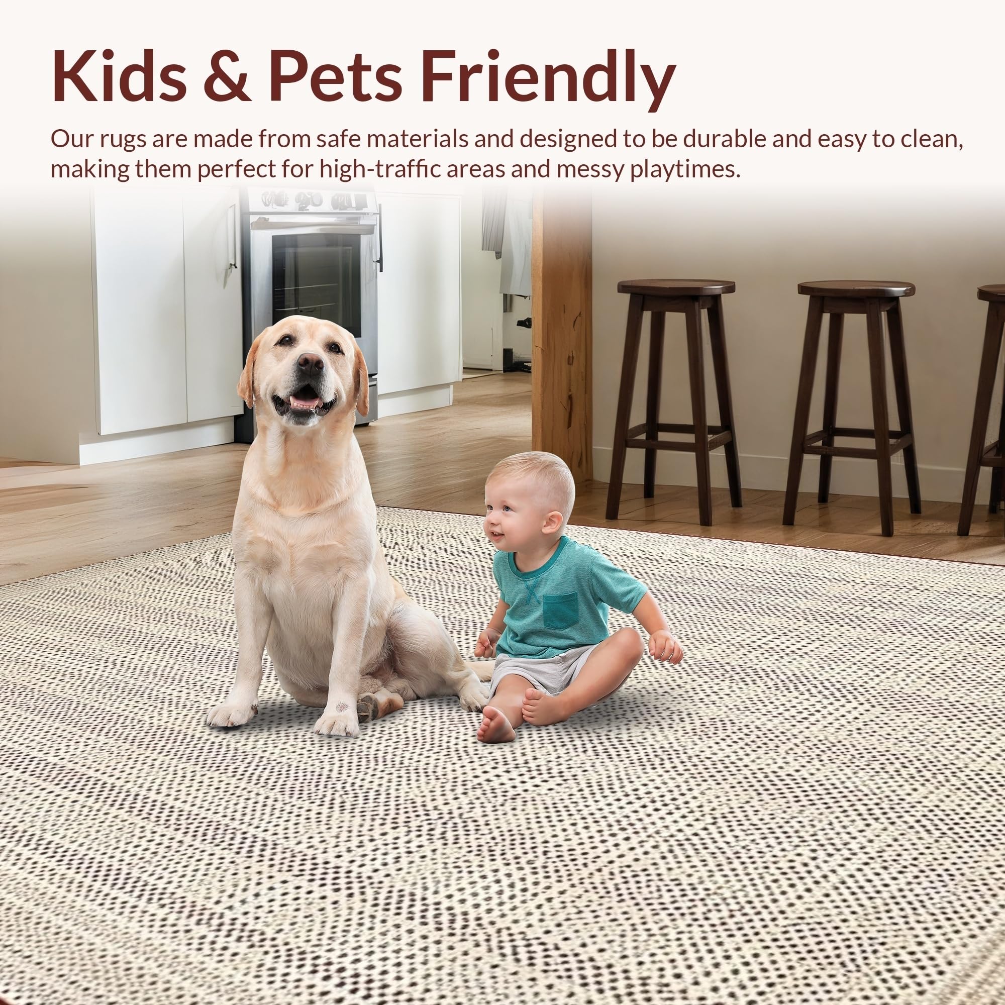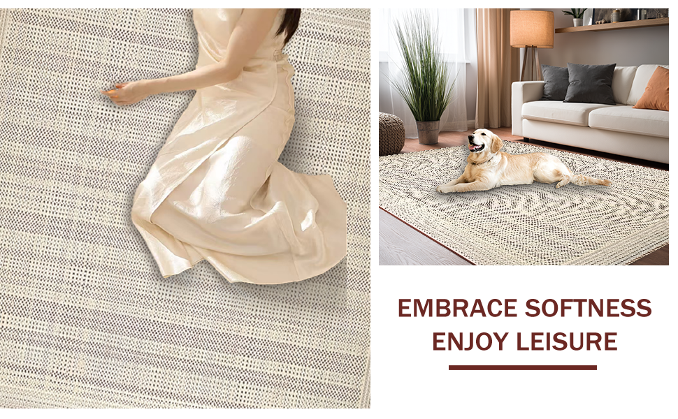 Ultra Soft Area Rug, Non Slip, Stain Resistant, Washable Area Rugs for Living Room, Bedroom, Artful Rustic Organic Texture(Beige) Overview: