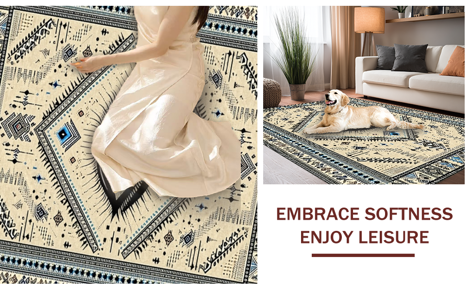 Ultra Soft Area Rug, Non Slip, Stain Resistant, Washable Area Rugs for Living Room, Bedroom, Artful Rustic Textured Beauty(Beige) Overview: