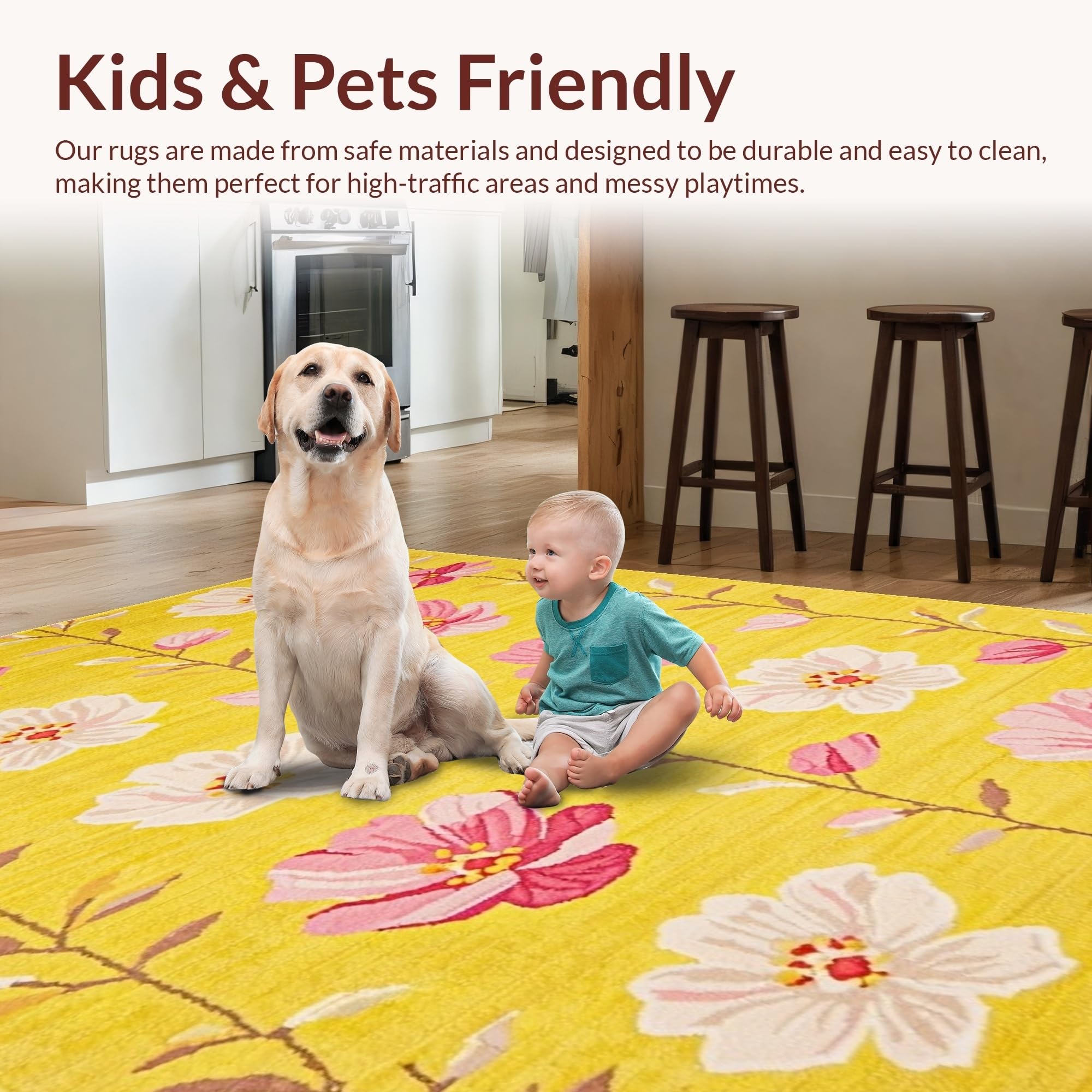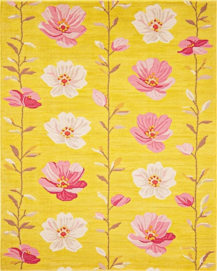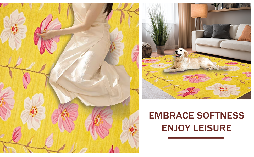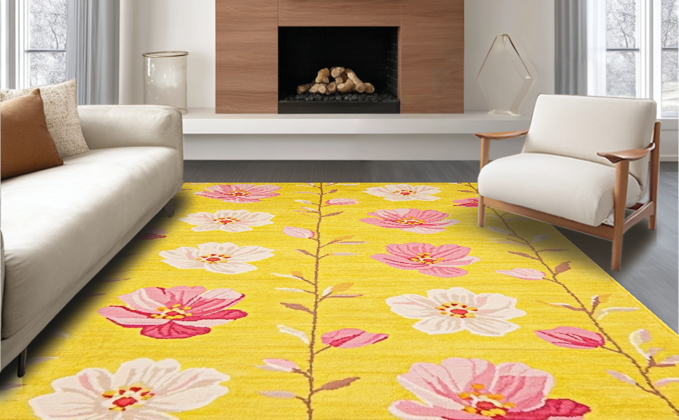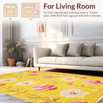 Ultra Soft Area Rug, Non Slip, Stain Resistant, Washable Area Rugs for Living Room, Bedroom, Artful Soft Floral Composition(Yellow) Overview: