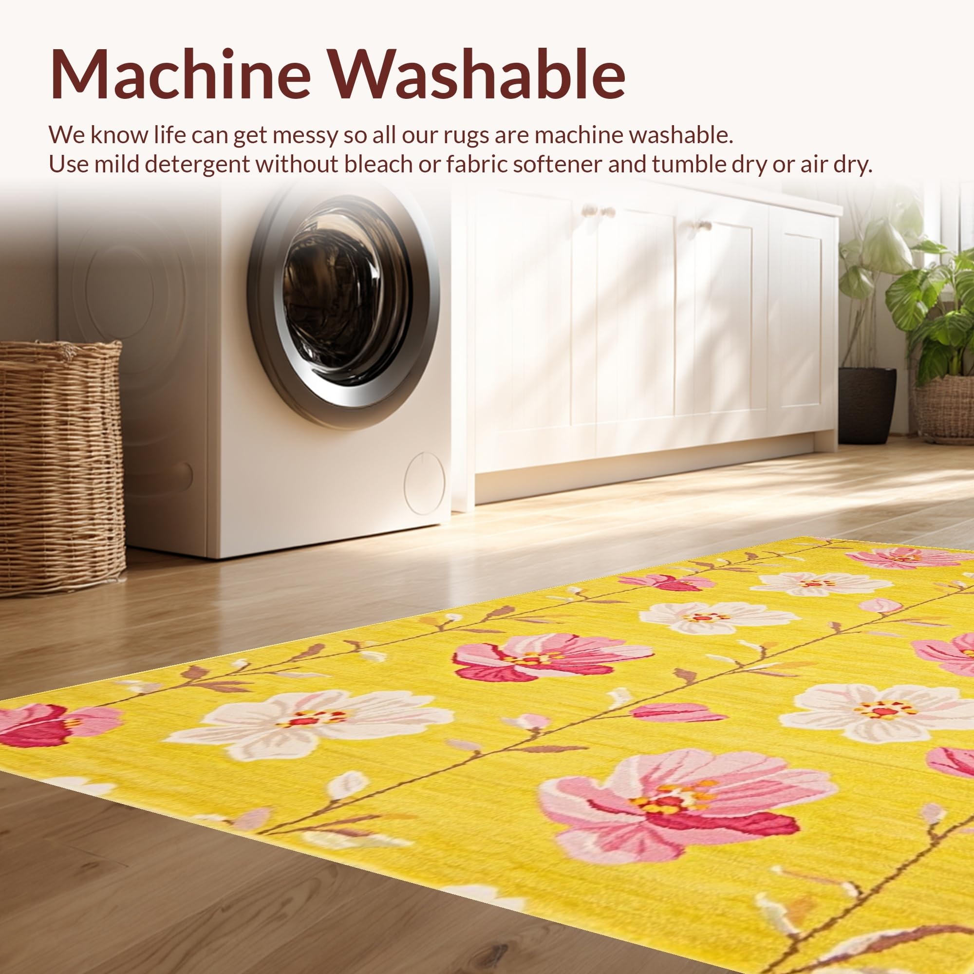 - Machine Washable: Our rugs can be easily thrown in the wash machine.